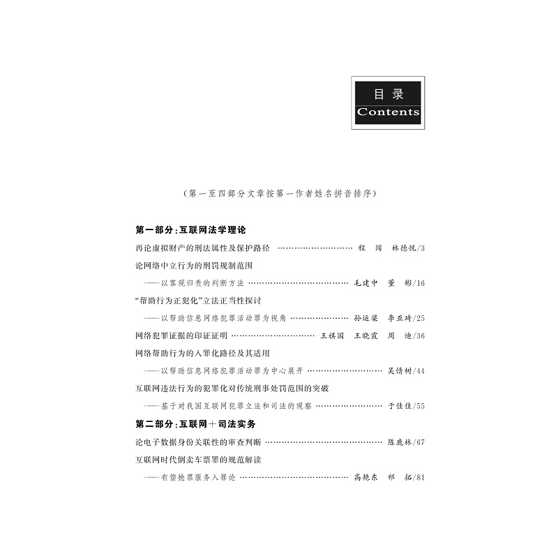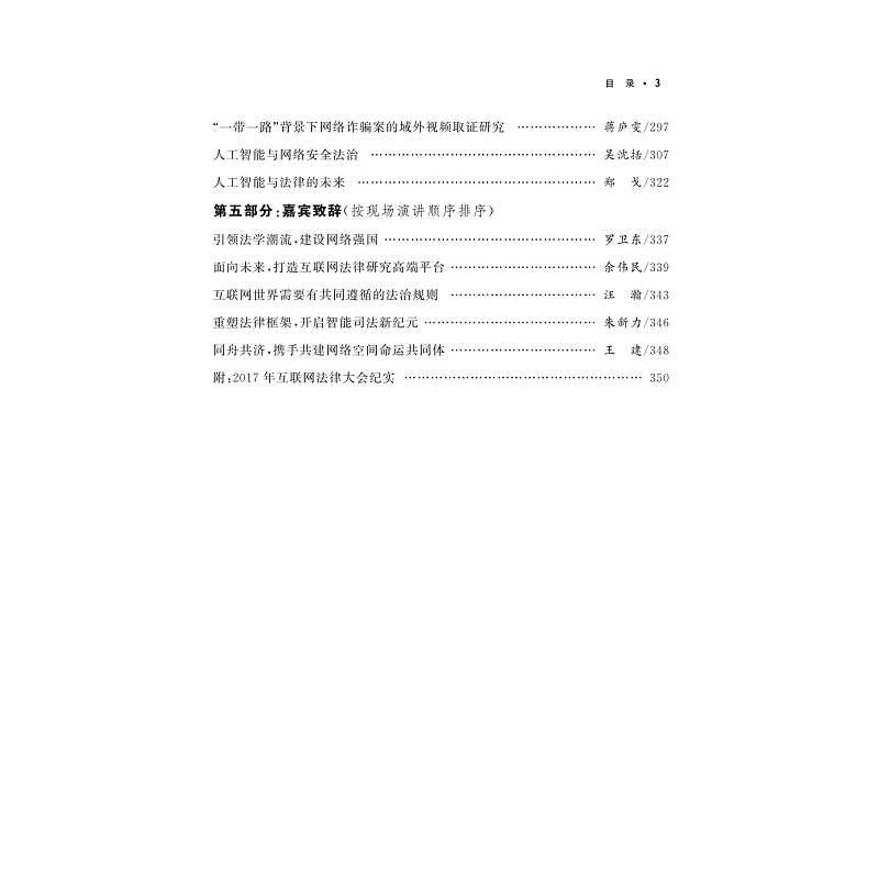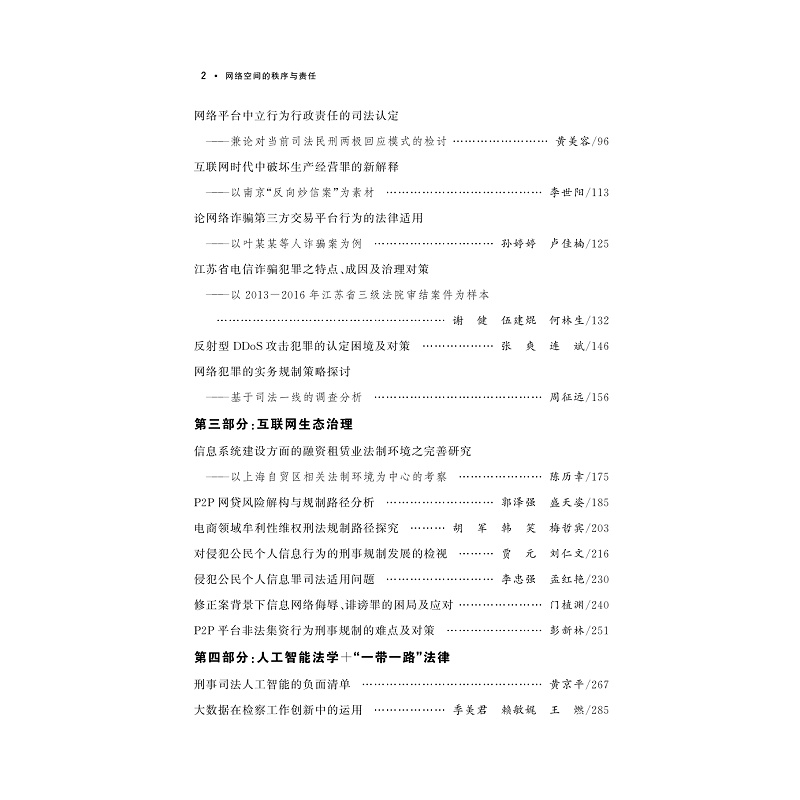 书名:网络空间的秩序与责任——第二届互联网法律大会论文集 ISBN:9787308196079 作者:高艳东 目录: