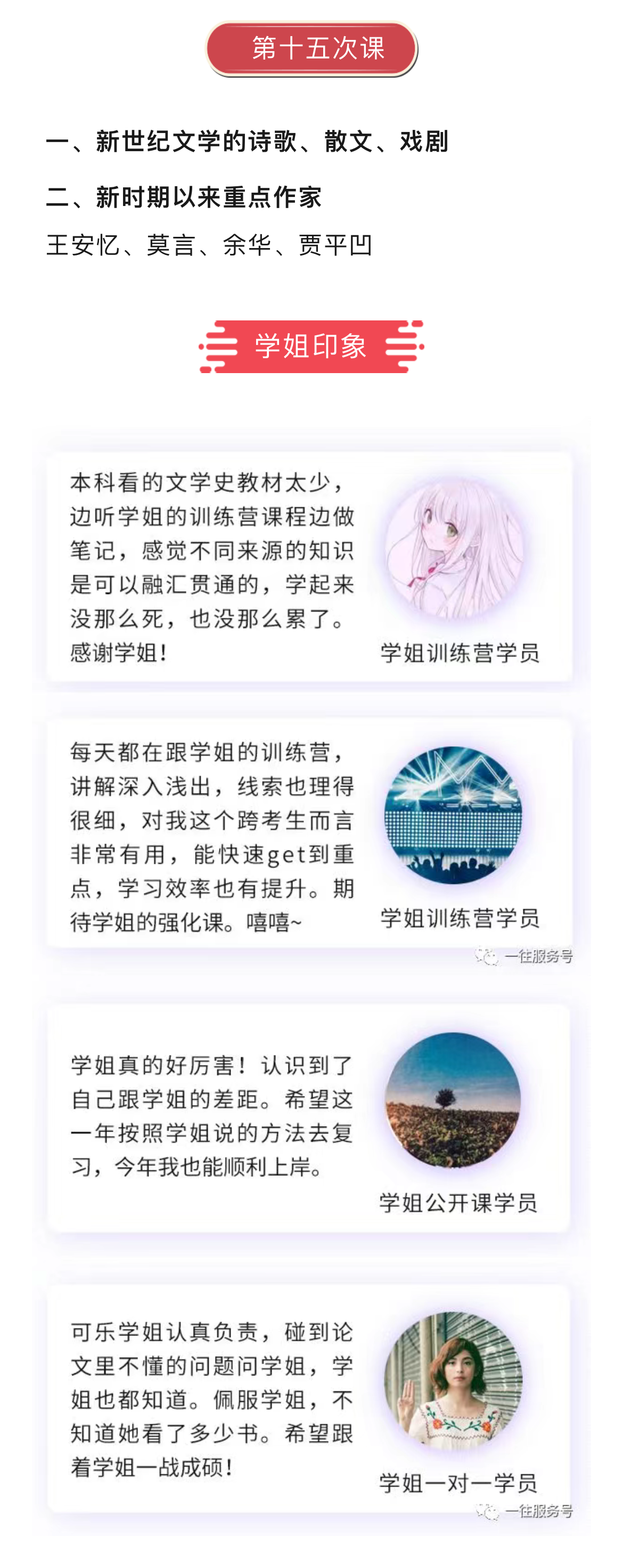 - 一往文学,8年专注文学考研咨询,带出数千名文学专业研究生。