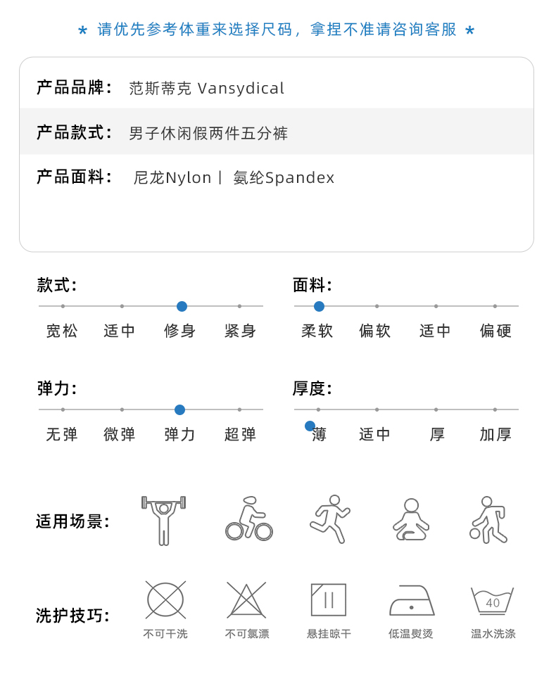 VANSYDICAL男女同款五分假两件短裤健身短裤运动跑步服健身健美
