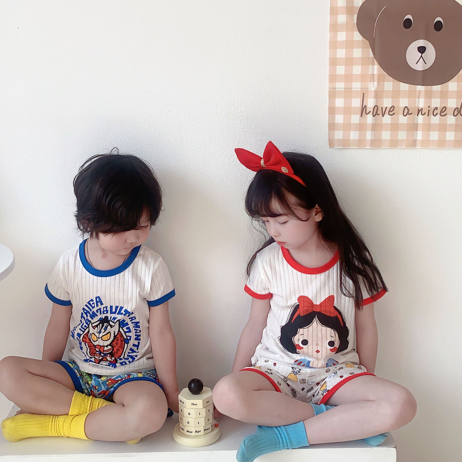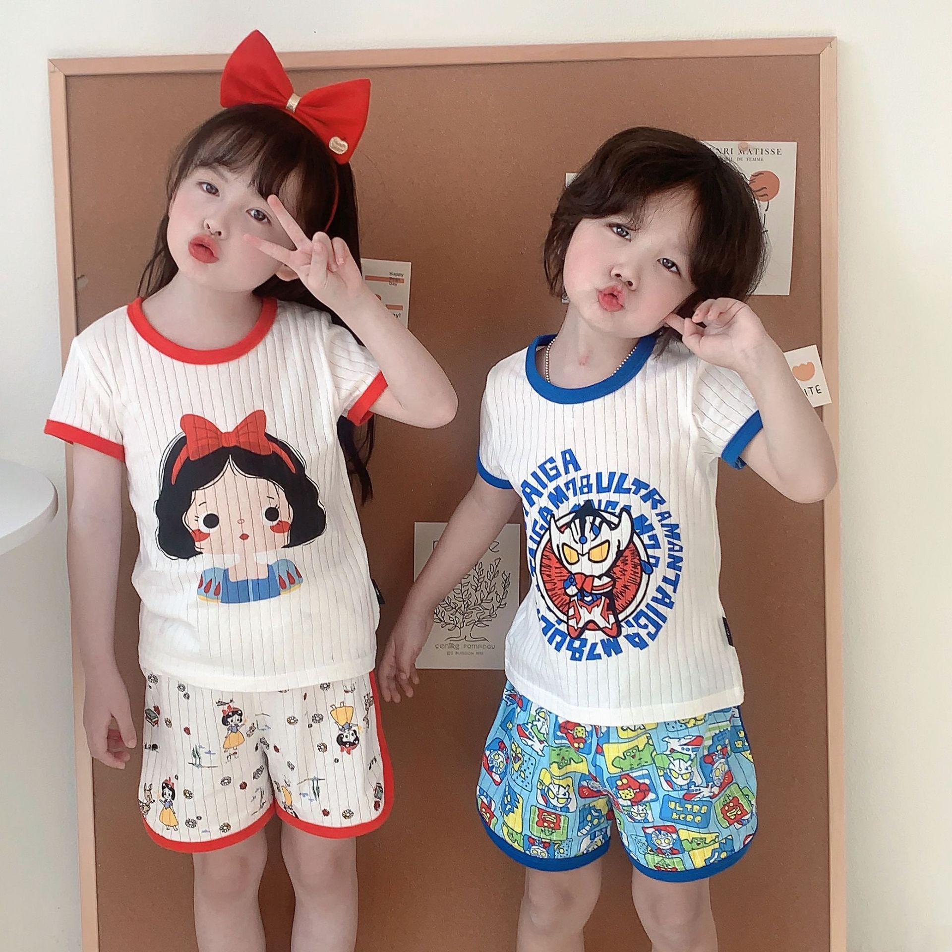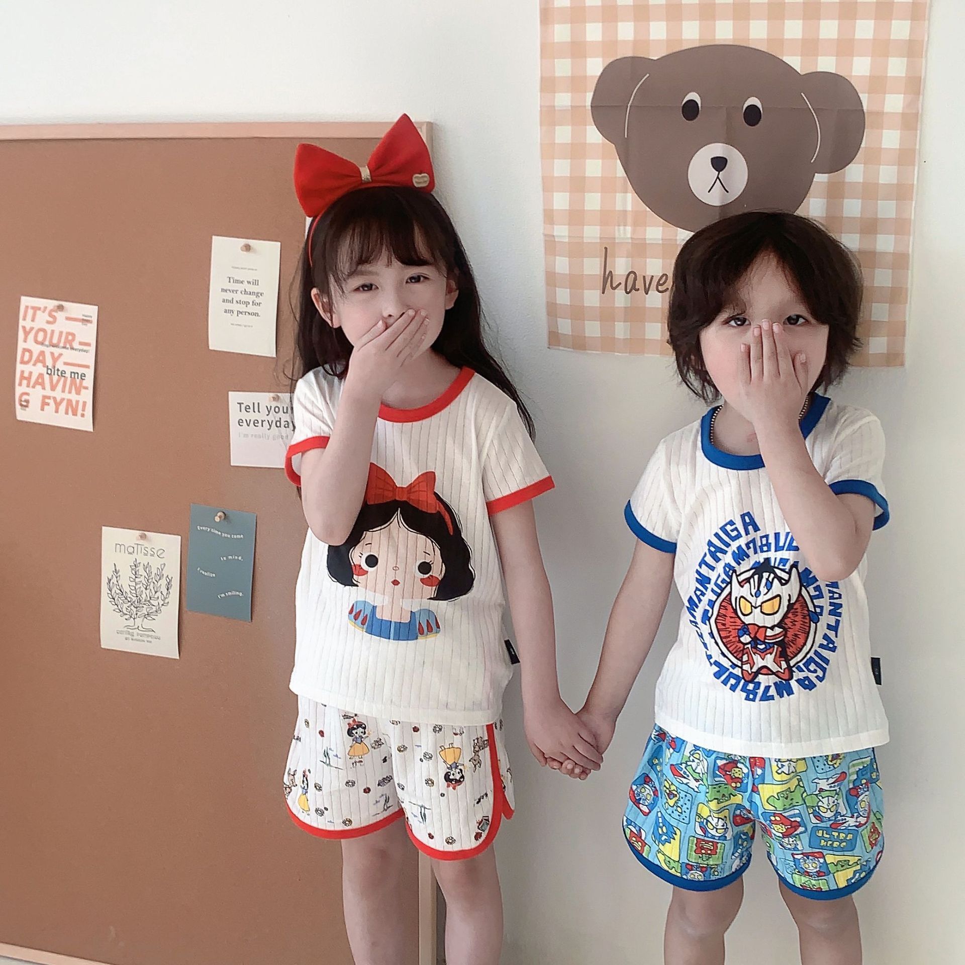 【ins!儿童家居服】2023夏新款男女童短袖短裤两件套儿童韩系套装宝宝纯棉圆领上衣