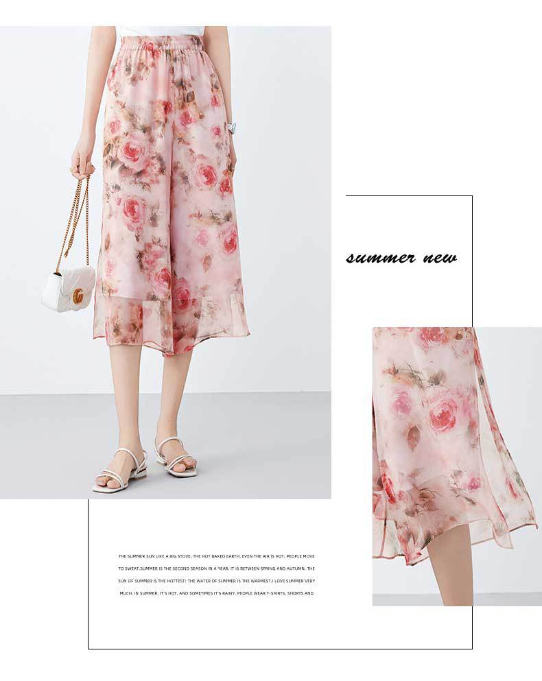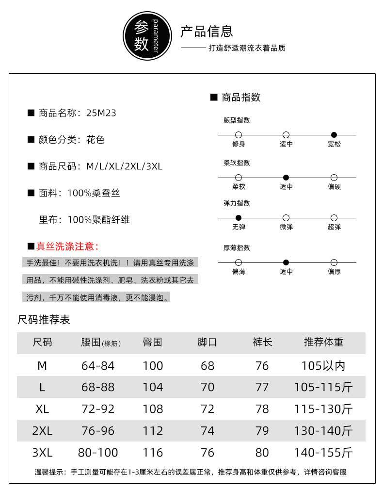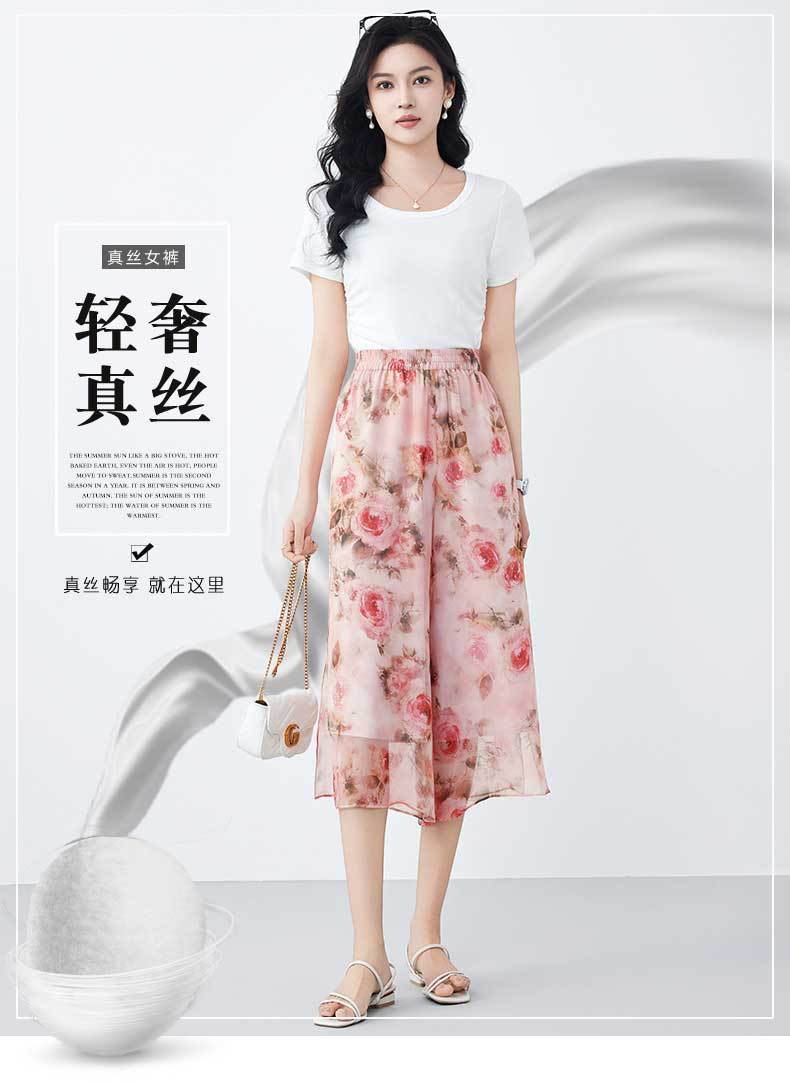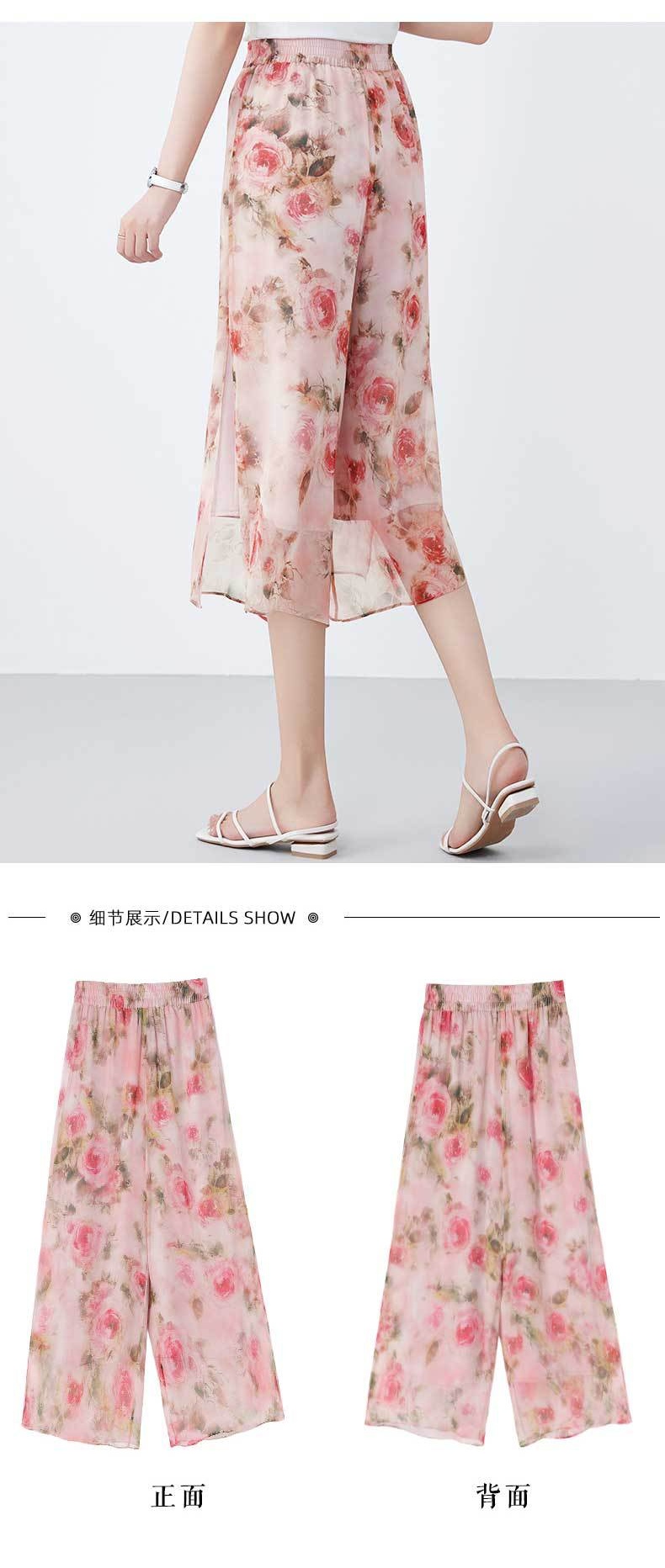 「高货oyg」全新升级【铂金会员330/天猫449/差价119】(50130)洛诗琳缎面真丝印花裤2025夏季高腰宽松阔腿休闲七分裤
