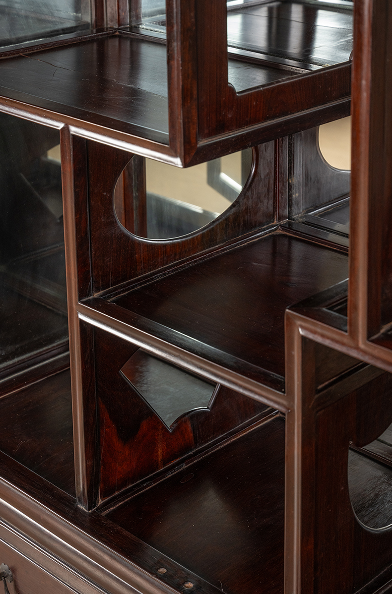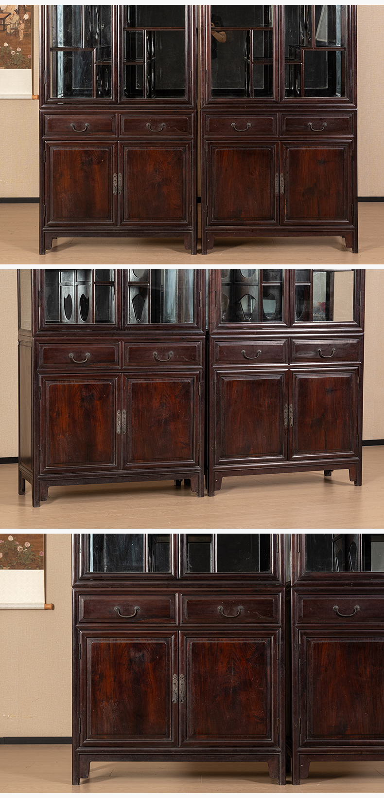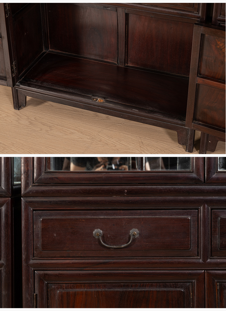 清 红木券口靠背玫瑰椅成套(两椅一几)