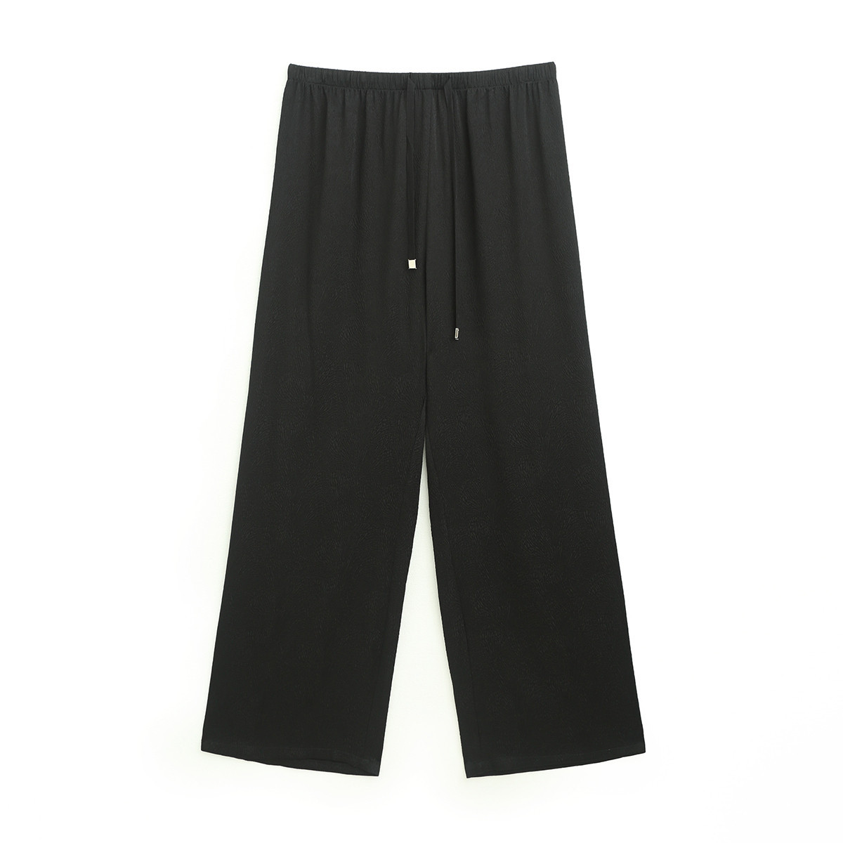 PALUOPO/PL重磅冠乐绉桑蚕丝系带直筒裤百搭透气显瘦休闲裤ES251201Z
