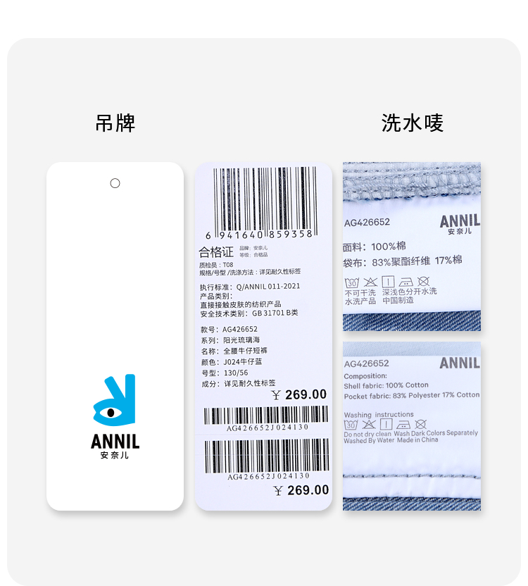 女童全棉牛仔短裤新款安奈儿童装实体店同款AG426652
