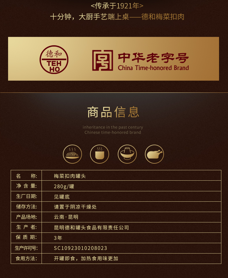昆明德和罐头厂是中国最早开始生产制造罐头的企业之一,至今已有九十八年的悠久历史,现已形成以罐头食品为主,腌腊制品、糕点月饼等为辅的云南省规模最大和最具影响力综合食品制造企业,奠定了云南罐头行业的基石。