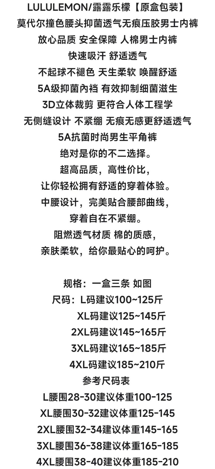 露露三条装莫代尔撞色腰头抑菌透气无痕压胶男士内裤