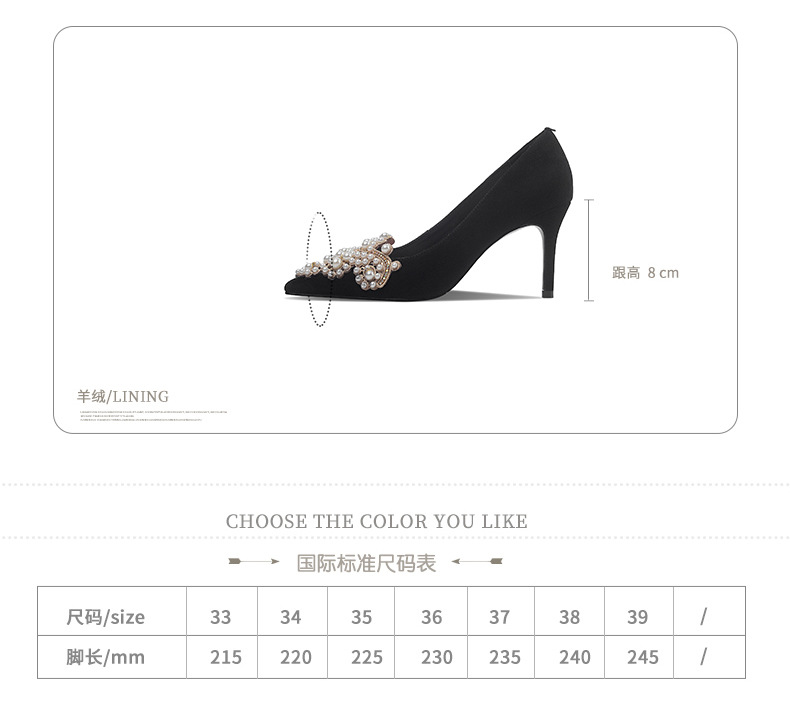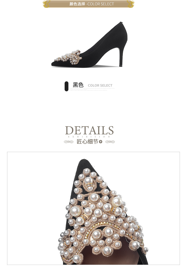 OLD-0D20新款时尚性感尖头珍珠浅口百搭细高跟鞋