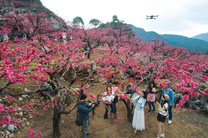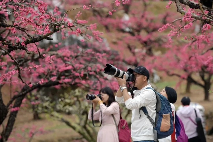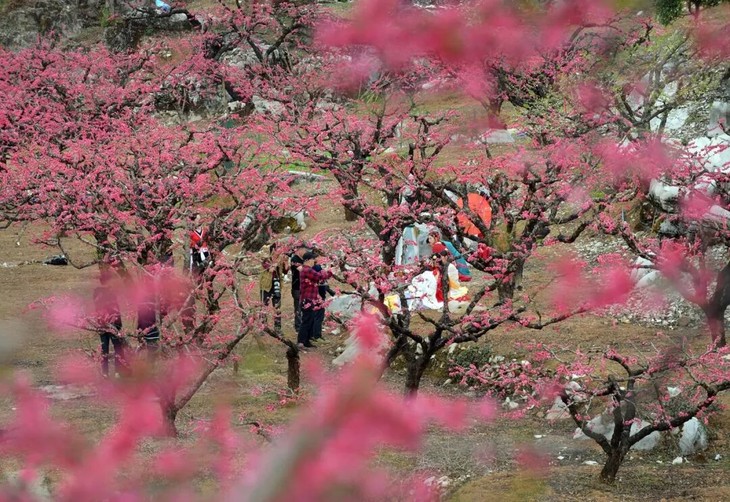 这里桃花与众不同,漫山遍野的桃花,矮枝横错,明媚鲜艳,每当你拿起相机随手一拍,就是一幅大气磅礴的水墨画。