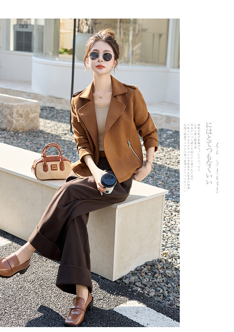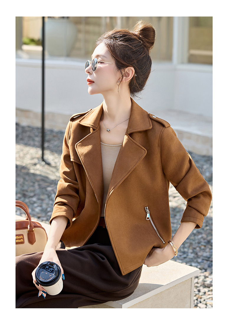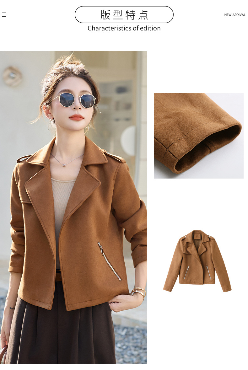 复古休闲百搭减龄,翻领夹克上衣麂皮绒外套HR-7705