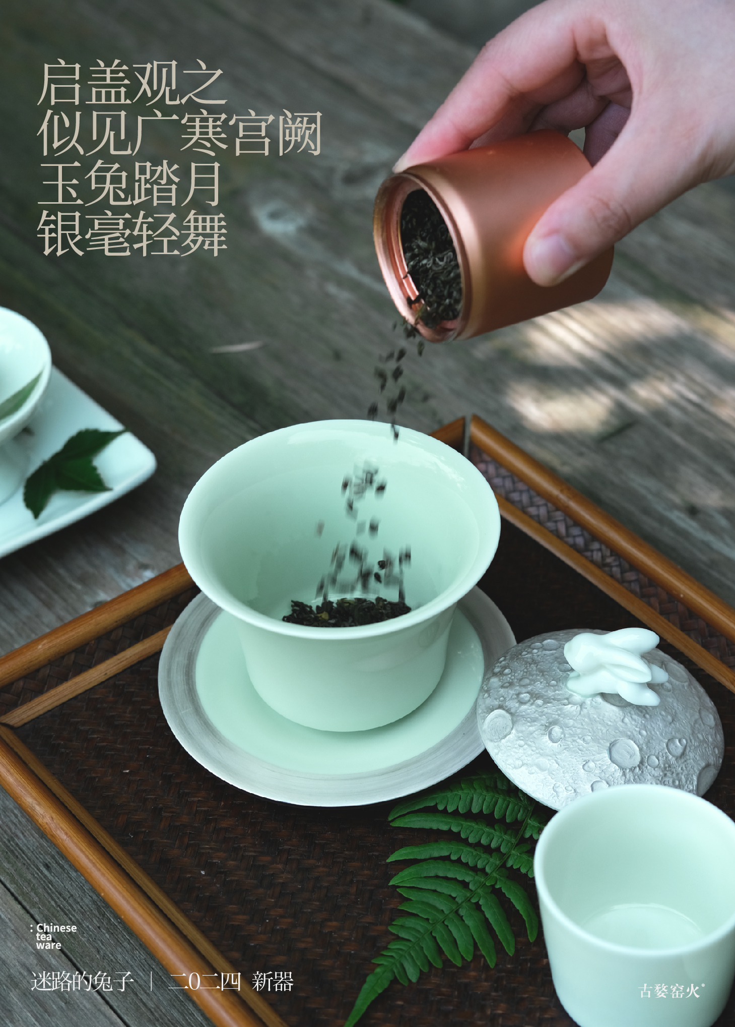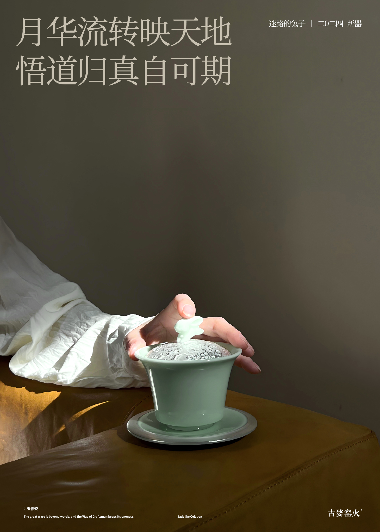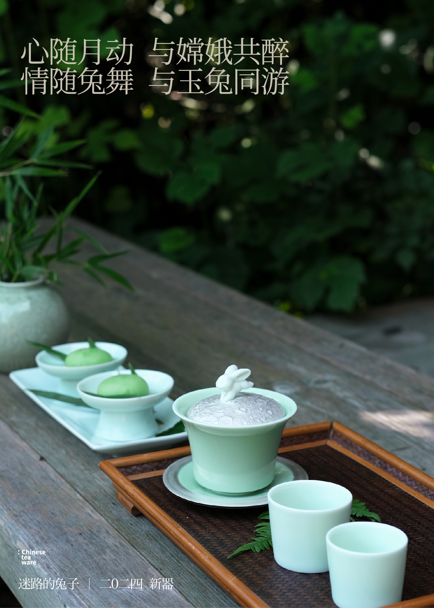 2024新品 迷路的兔子 盖碗 玉青瓷