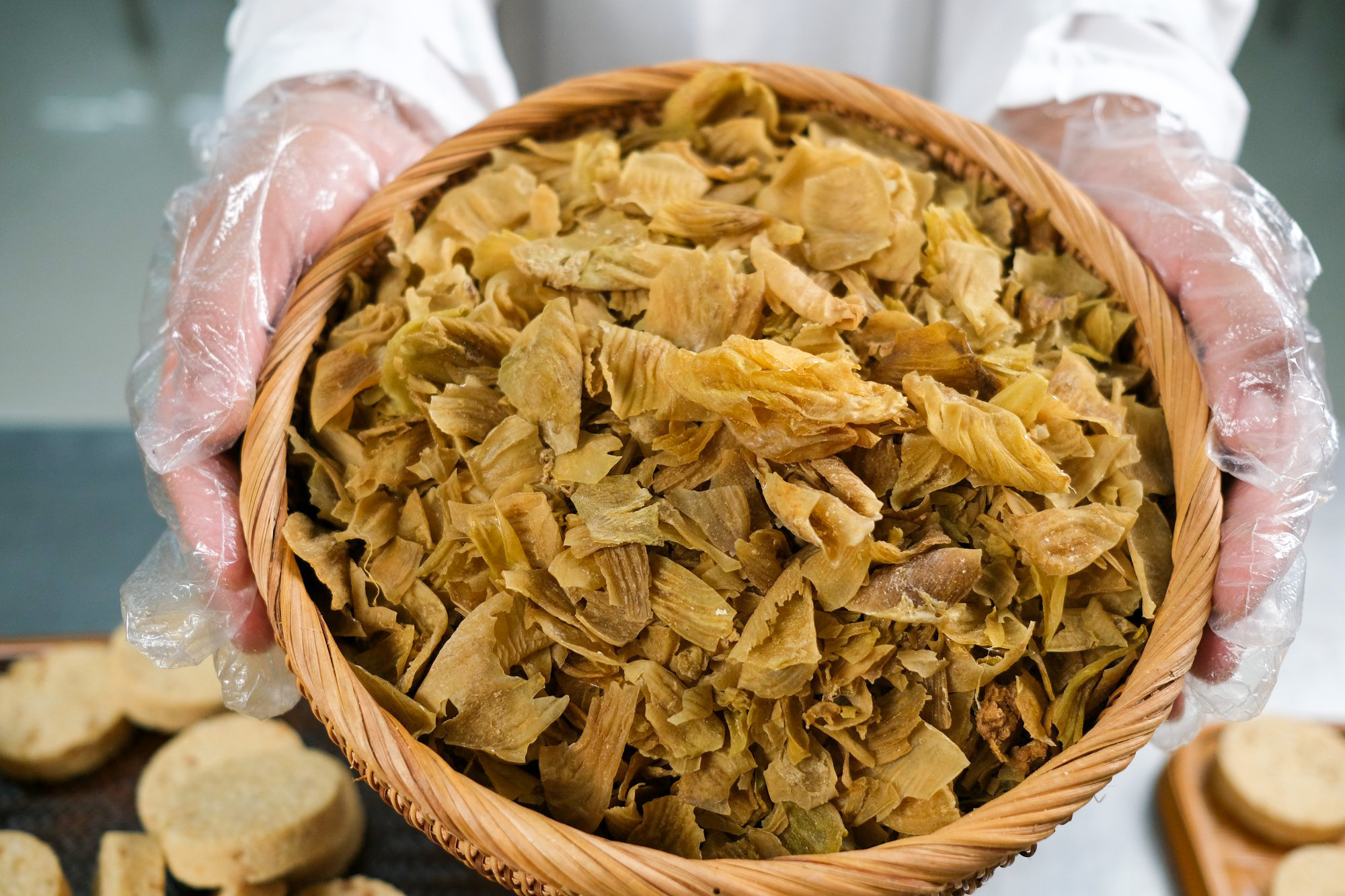 十年老师傅手工炒制——18小时冰糖熬制——加入相关配料搅拌——成型切片