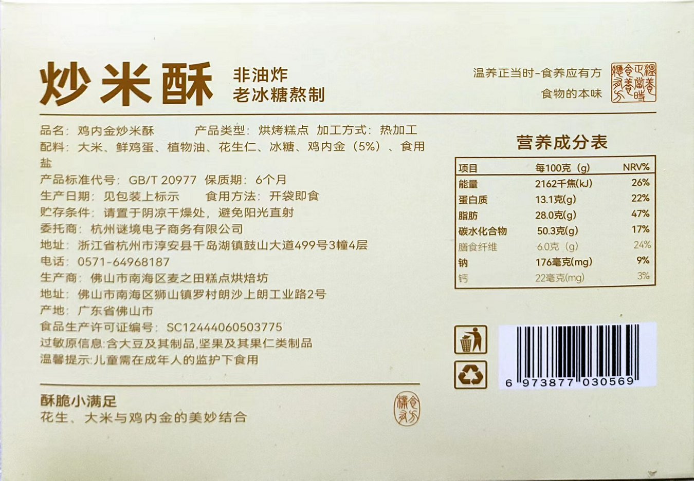 鸡内金炒米酥(大米、鲜鸡蛋、植物油、花生仁、冰糖、鸡内金、食用盐)