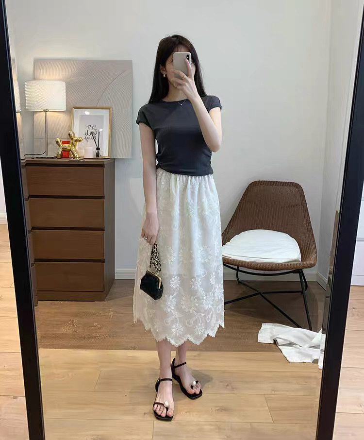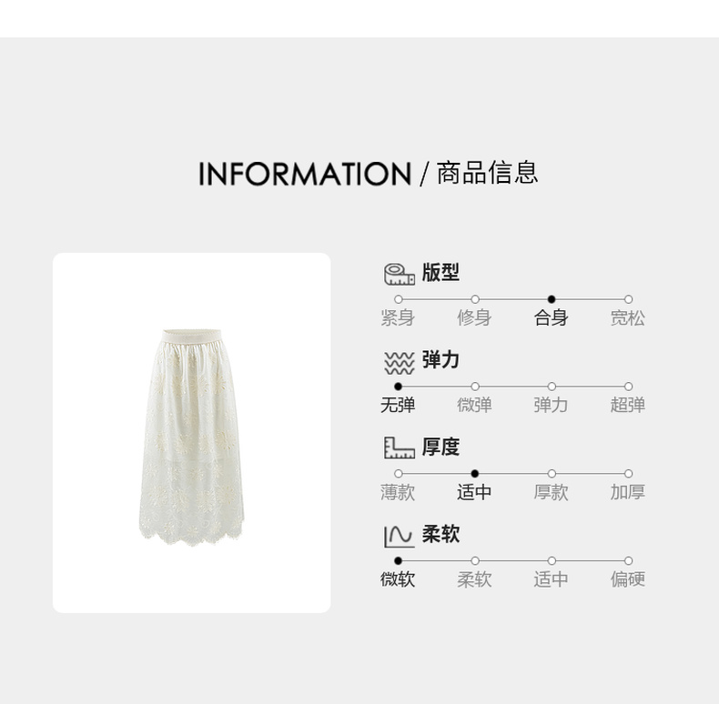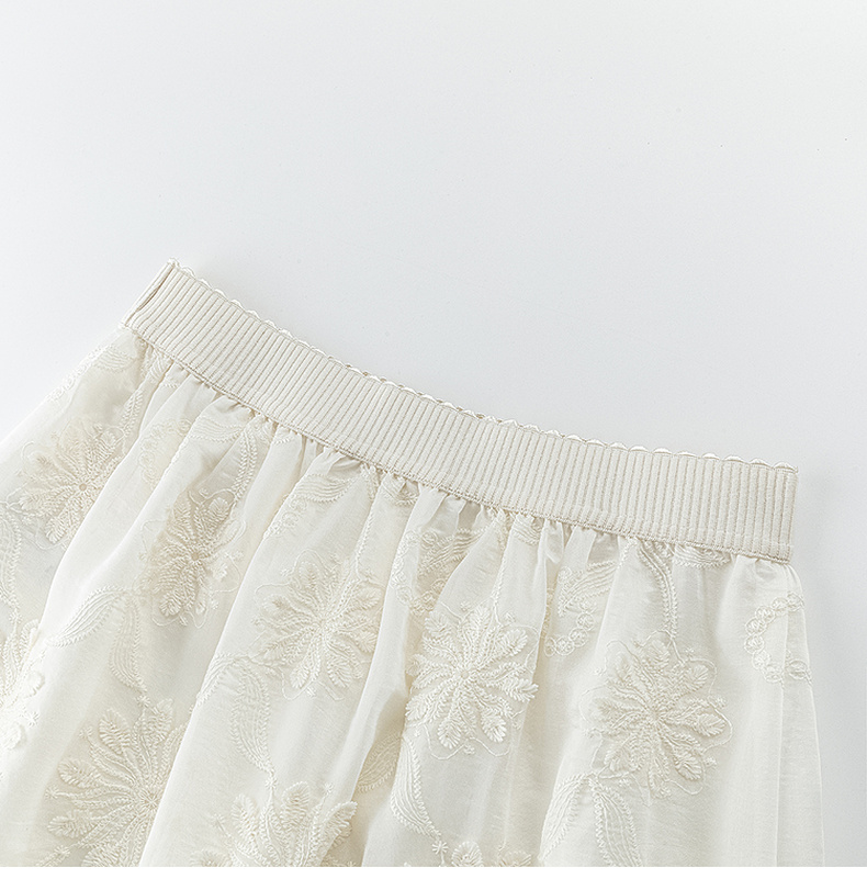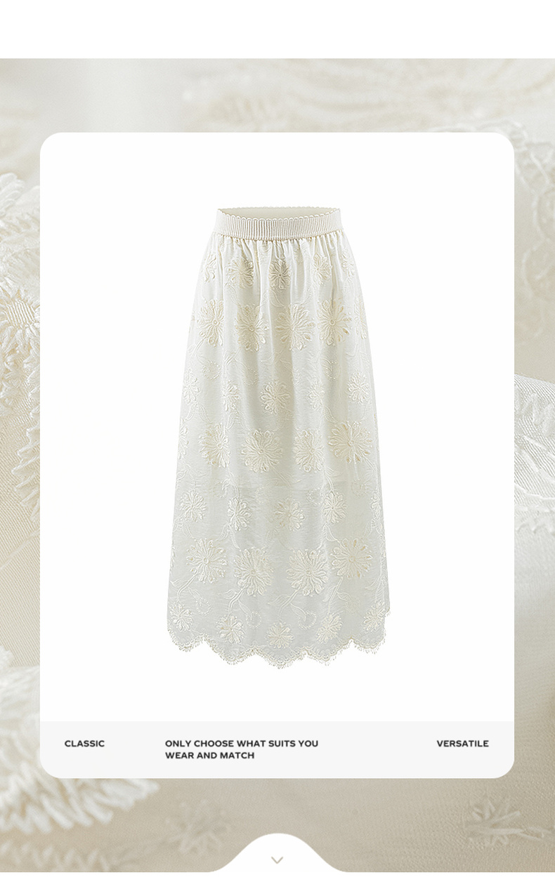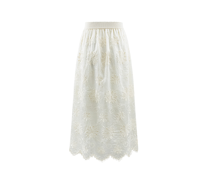 会员福利【重工刺绣+80%莱赛尔】拉夏贝尔/La Chapelle松紧腰刺绣花朵花边半身裙女法式温柔风气质长款裙