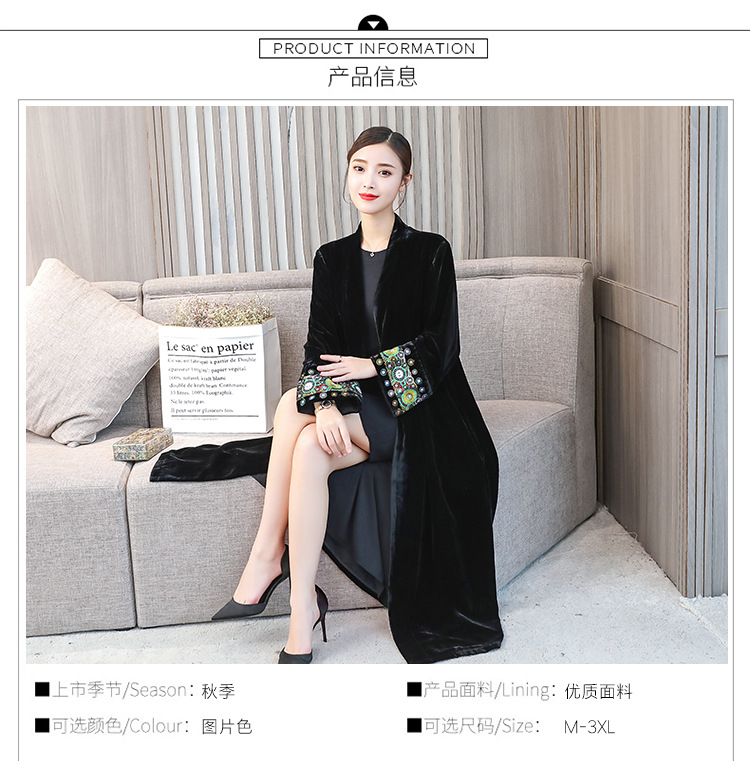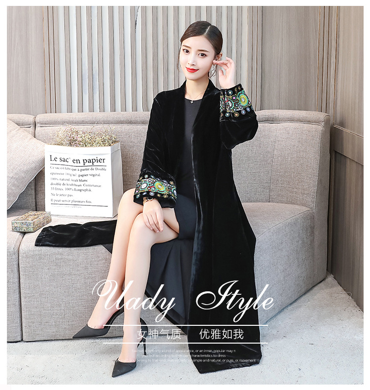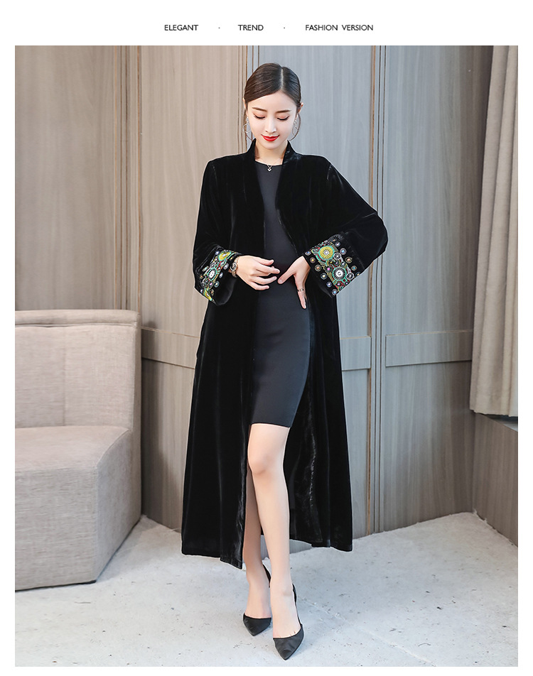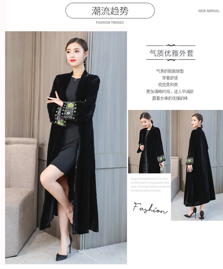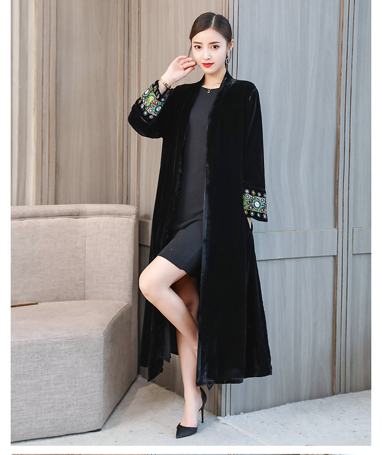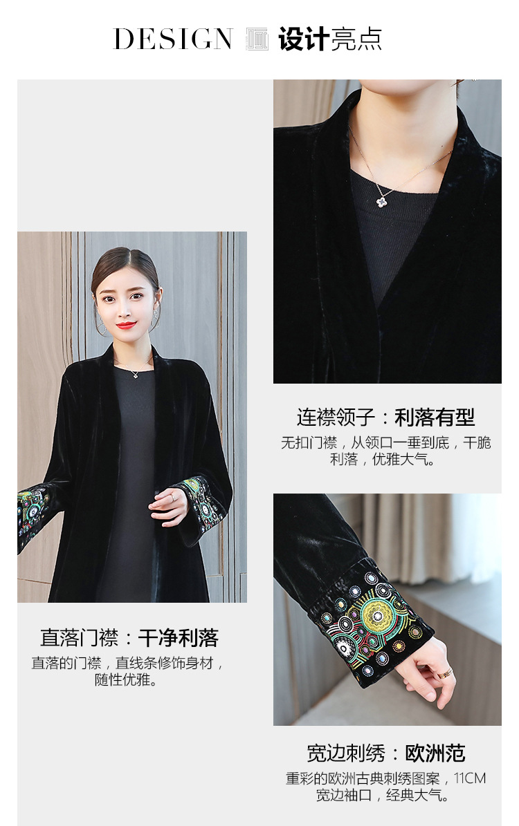 AHM-olz1699新款复古钉珠刺绣中长款气质开衫外套