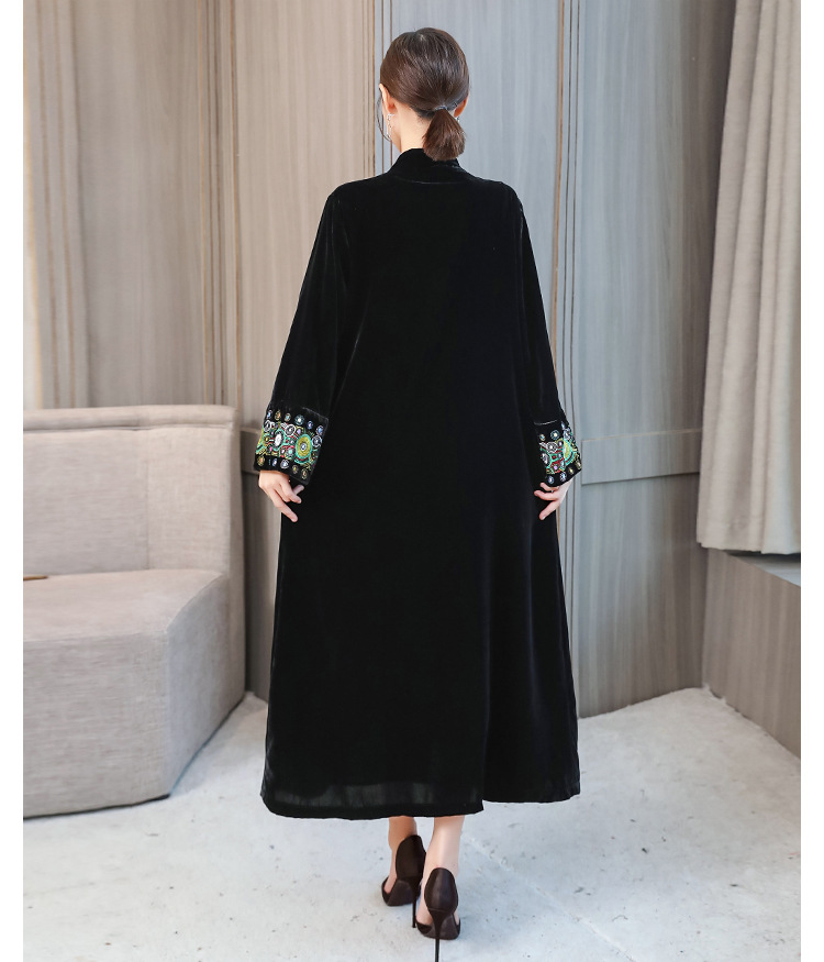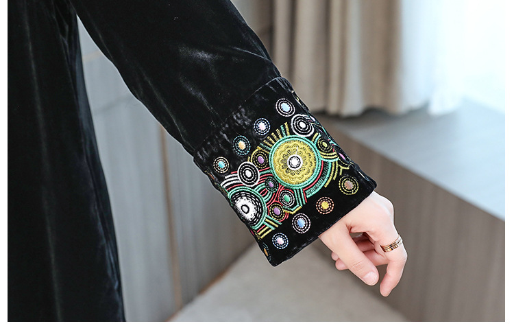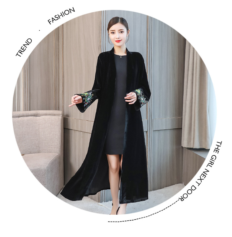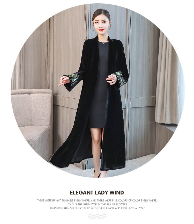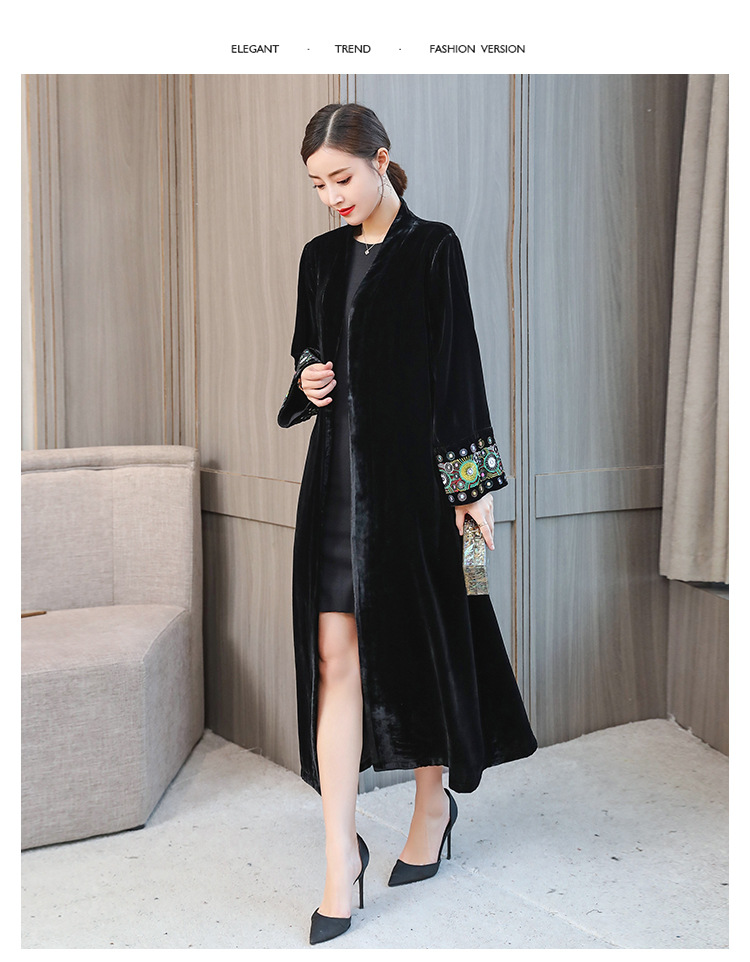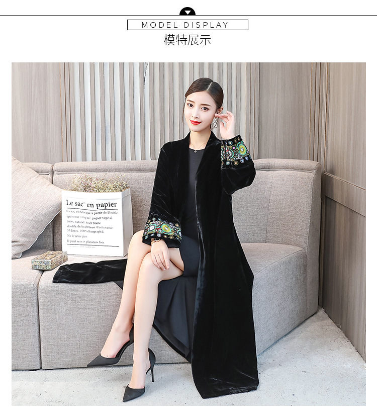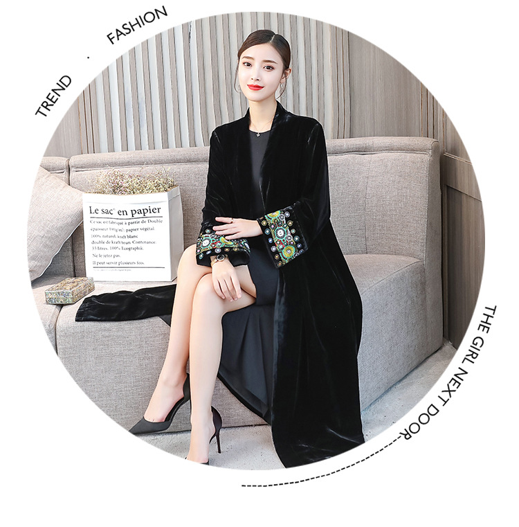 AHM-olz1699新款复古钉珠刺绣中长款气质开衫外套