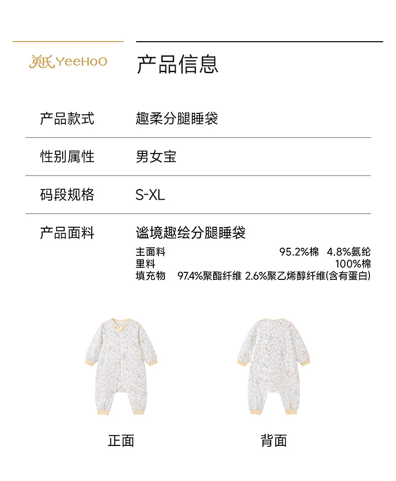 【商场同款】英氏婴儿宝宝分腿睡袋抗菌防踢被四季通用防着凉睡袋
