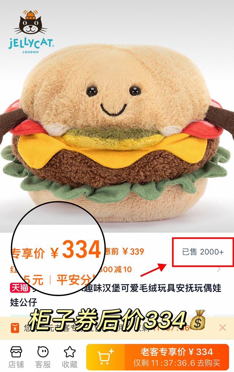 英国Jell*ycat,蕞蕞新,柜子券后334元,刚刚上线热销2000只小可爱!