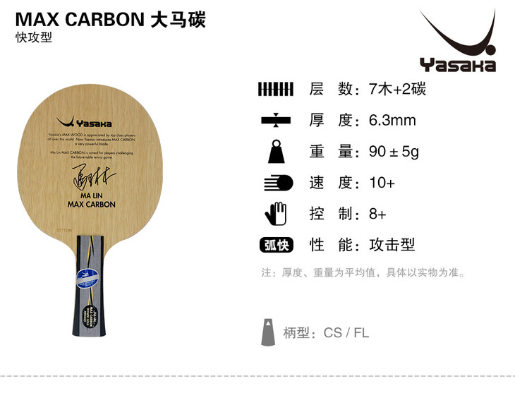 无机时代的最新武器,碳层在大芯的上下两边,很特别的结构,碳层应该是芳基碳面材柔软,吃球深,力材坚挺,支撑有力,前冲弧圈很爆,破坏力强劲!