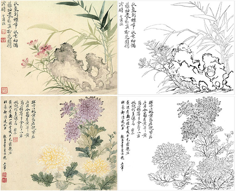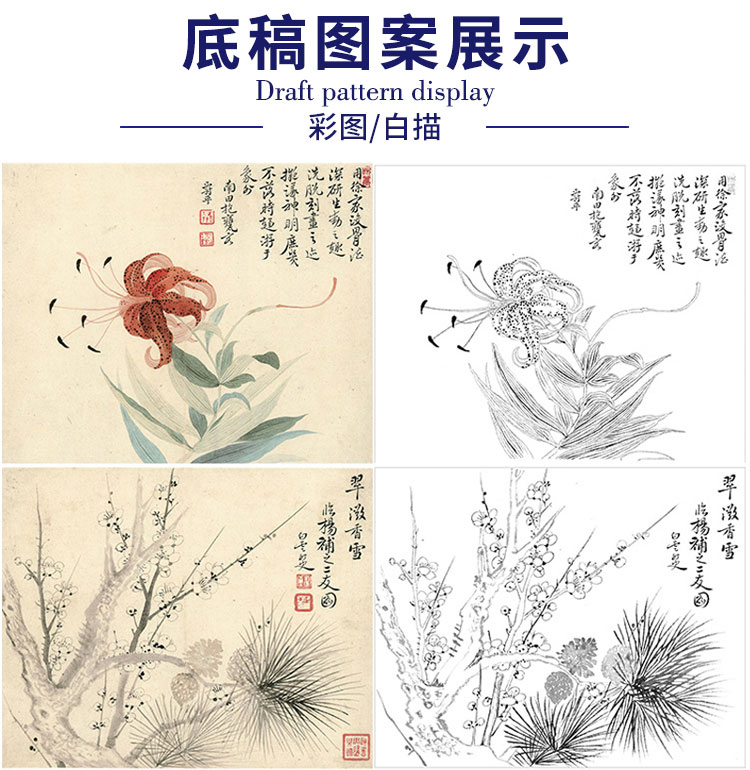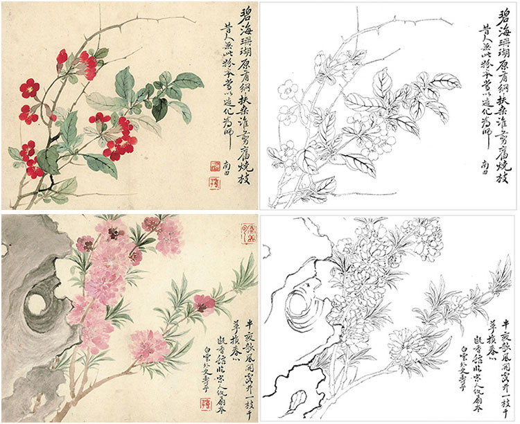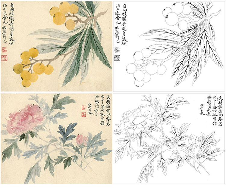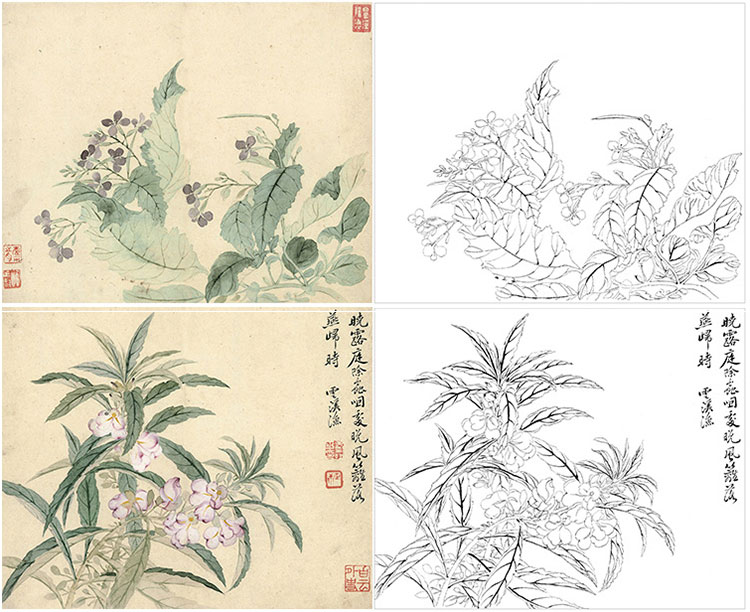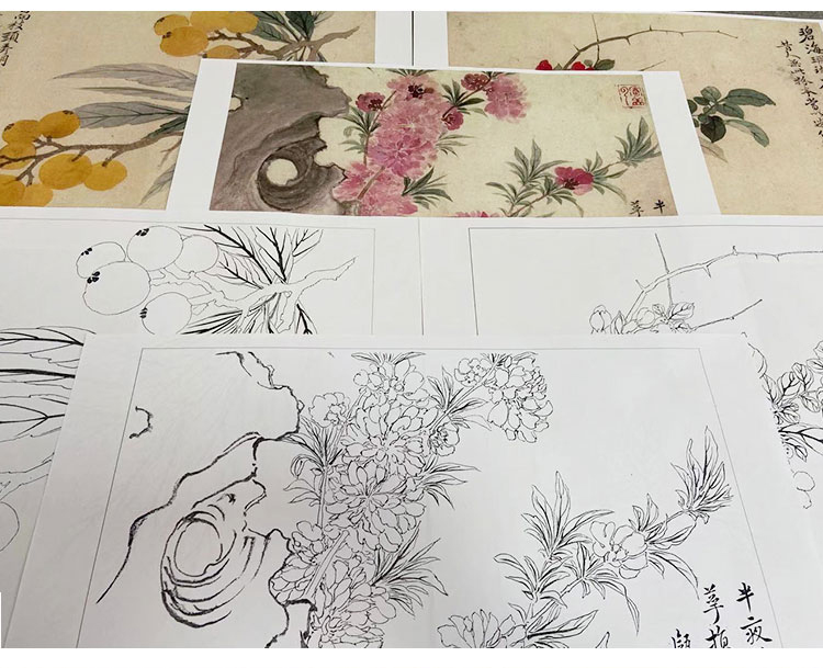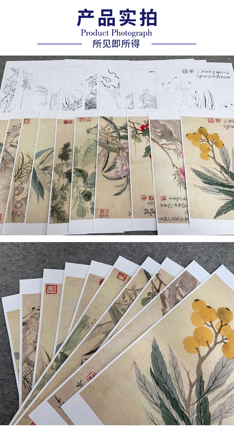 恽寿平没骨工笔花鸟画白描底稿瓯香馆写生小品一套十幅册页尺寸30×37厘米SP90
