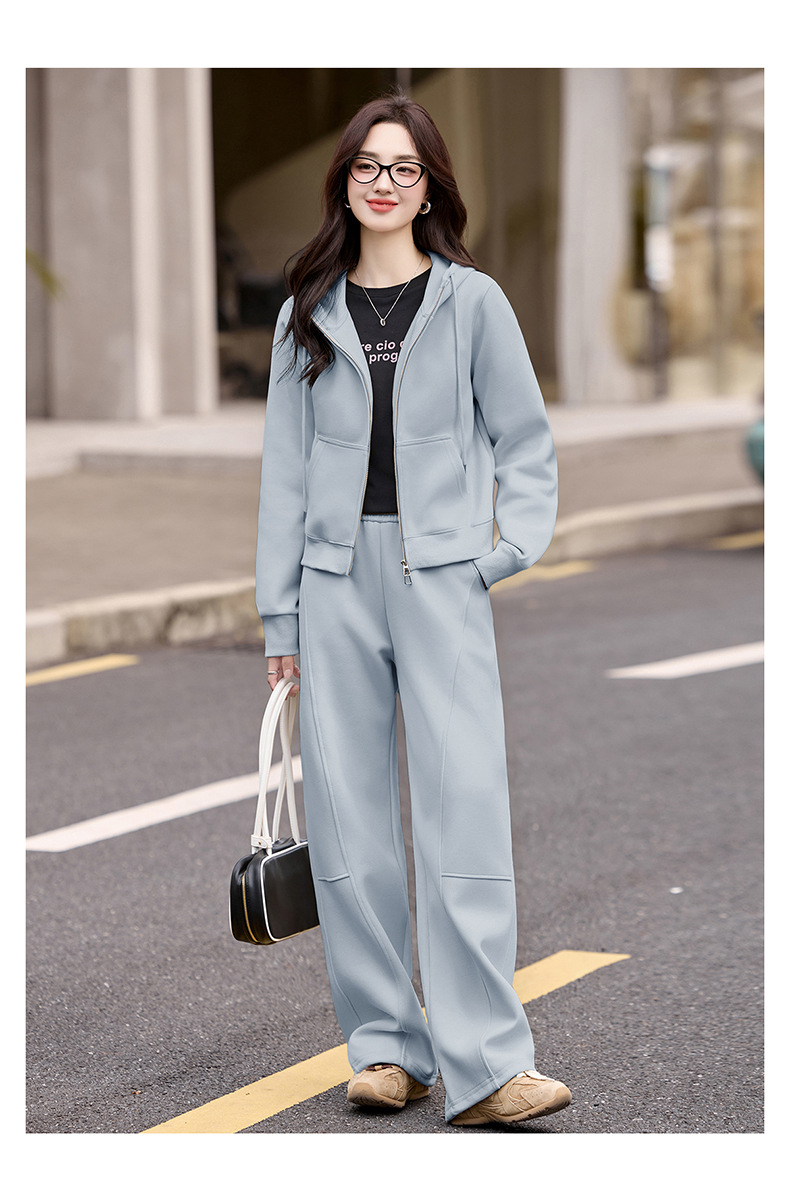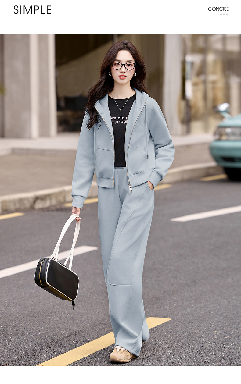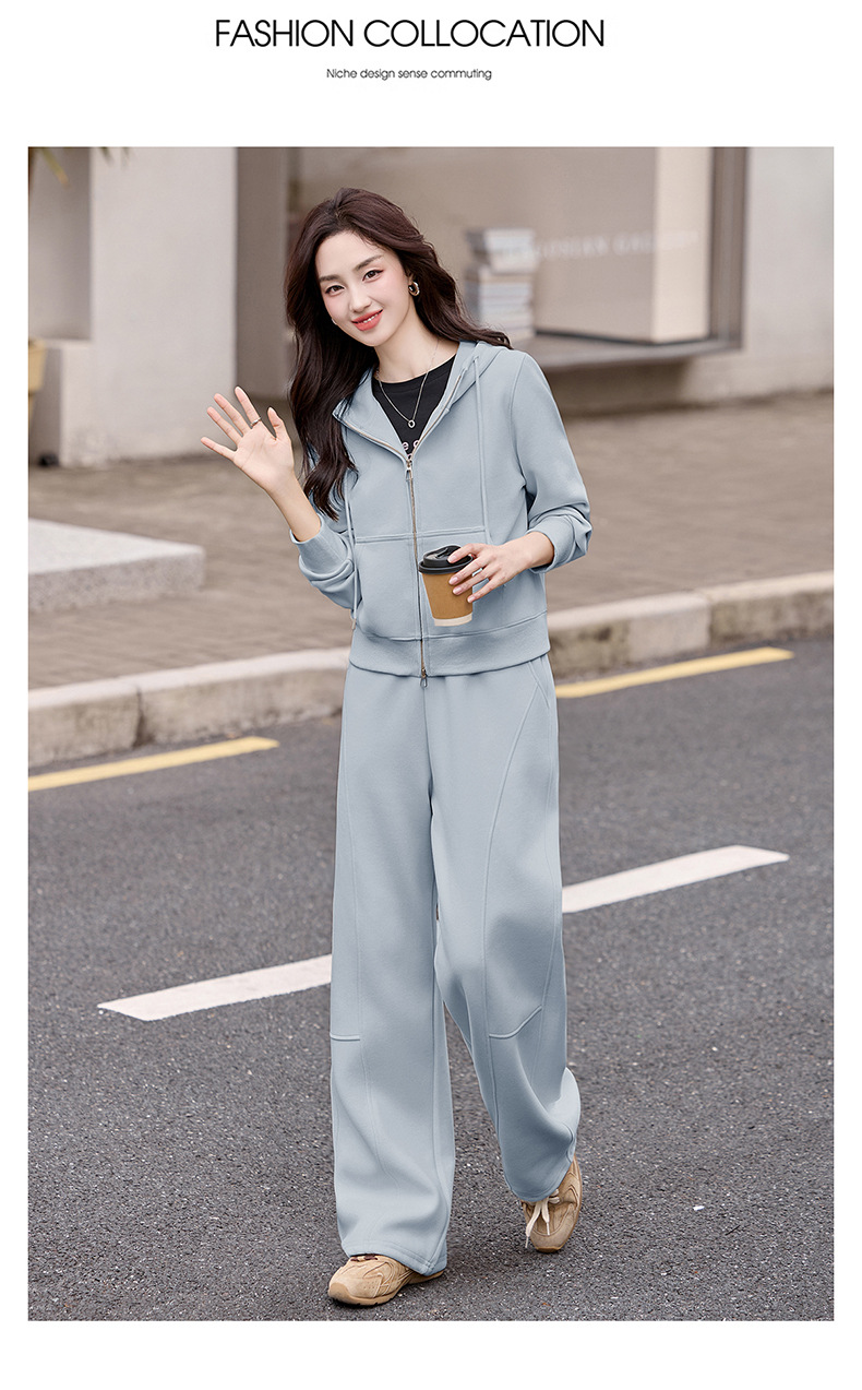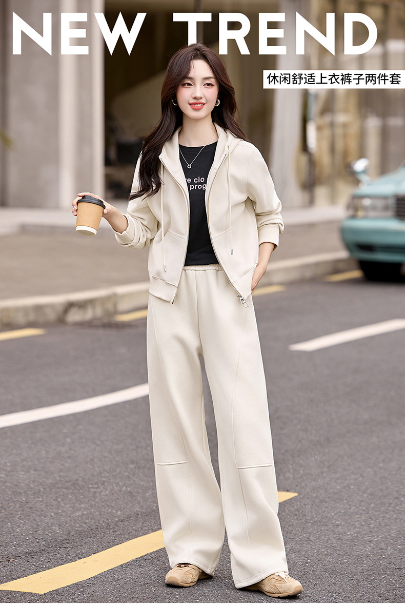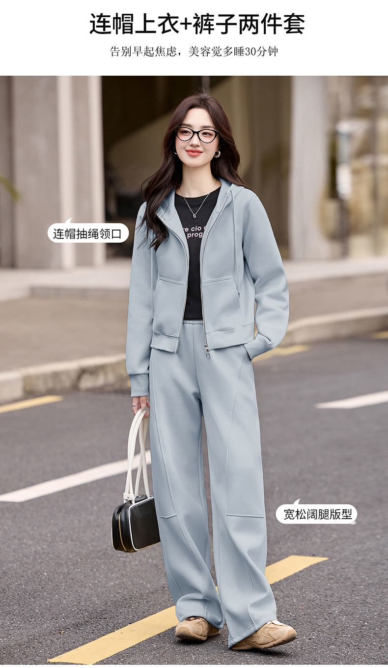 ZYRH2095休闲运动连帽卫衣套装女早秋显瘦开衫2025春季新款阔腿裤子两件套