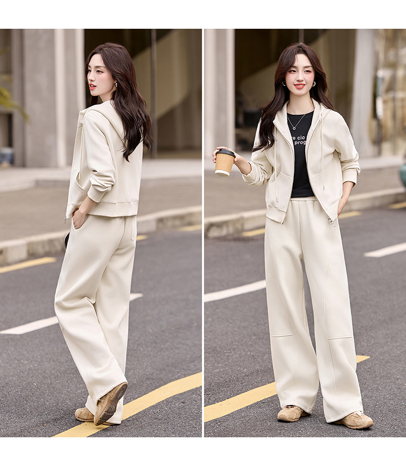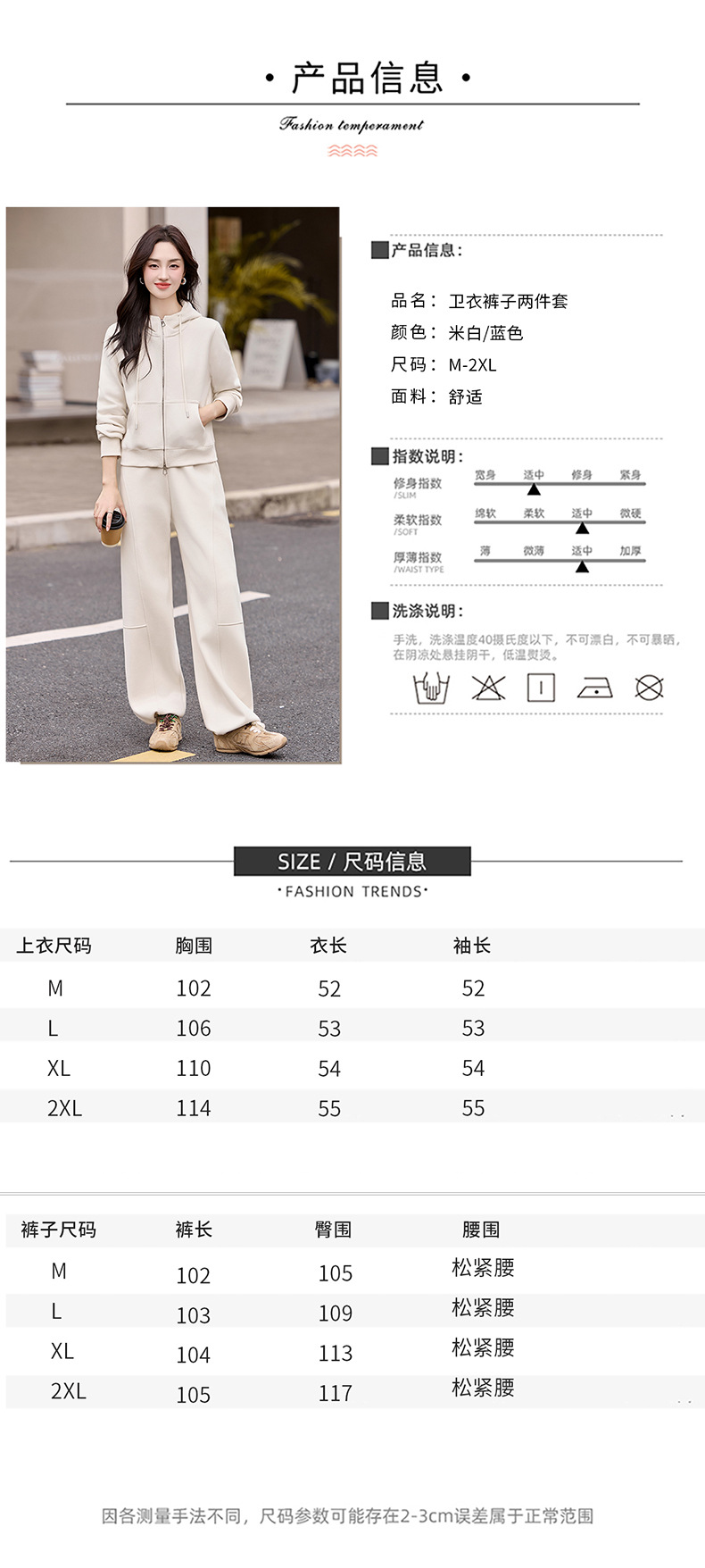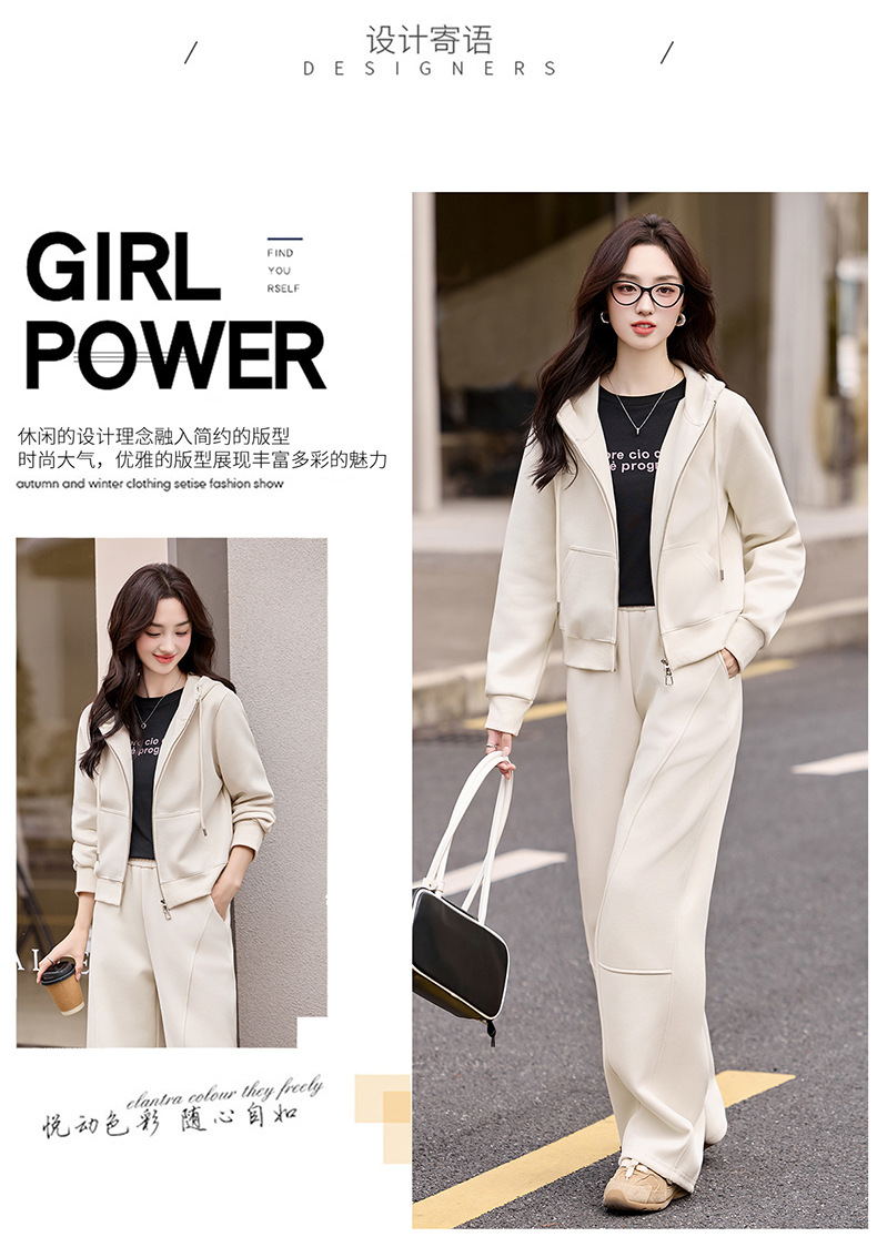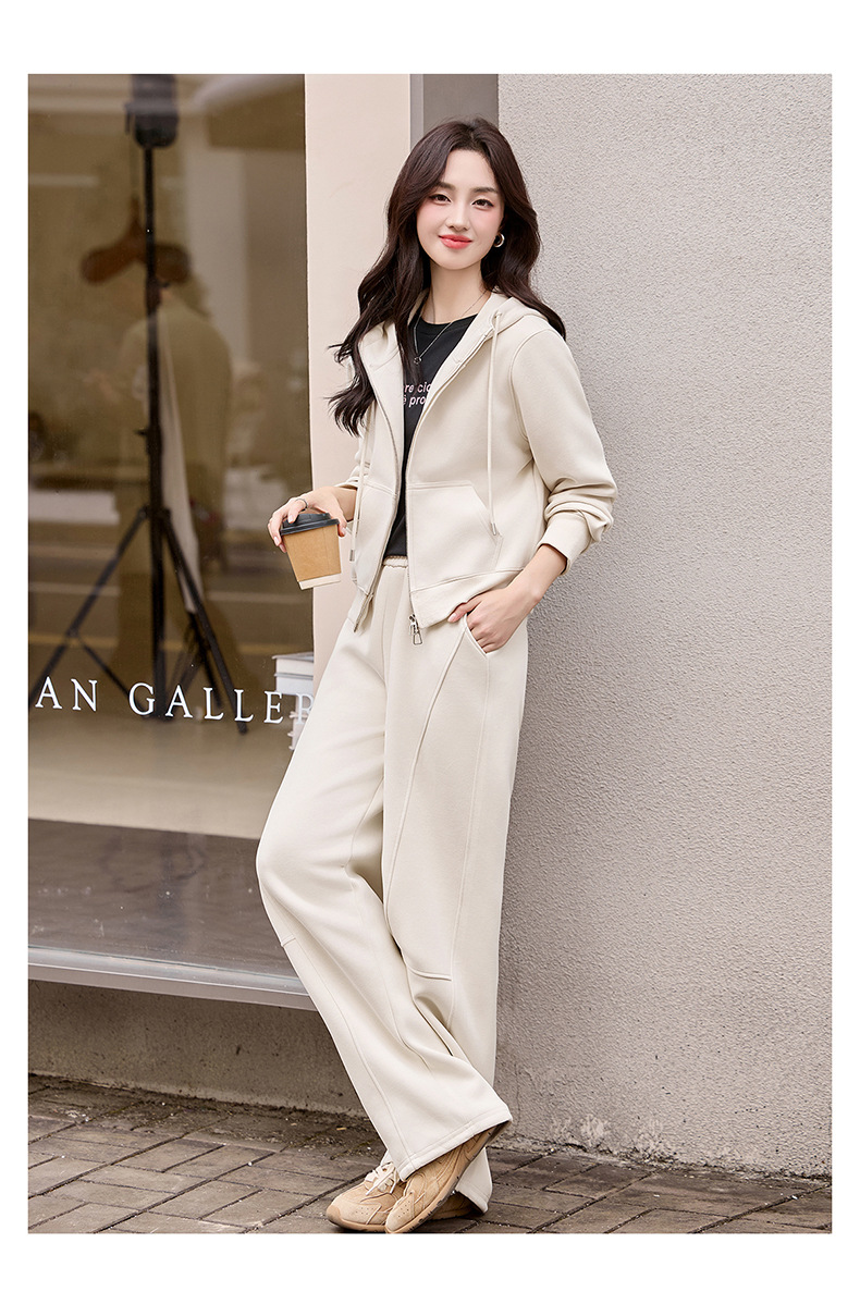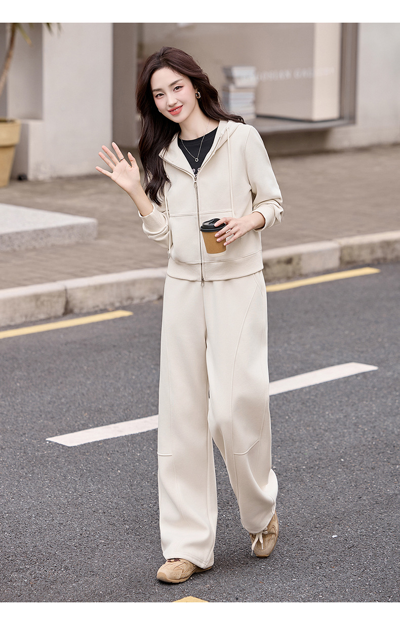 ZYRH2095休闲运动连帽卫衣套装女早秋显瘦开衫2025春季新款阔腿裤子两件套