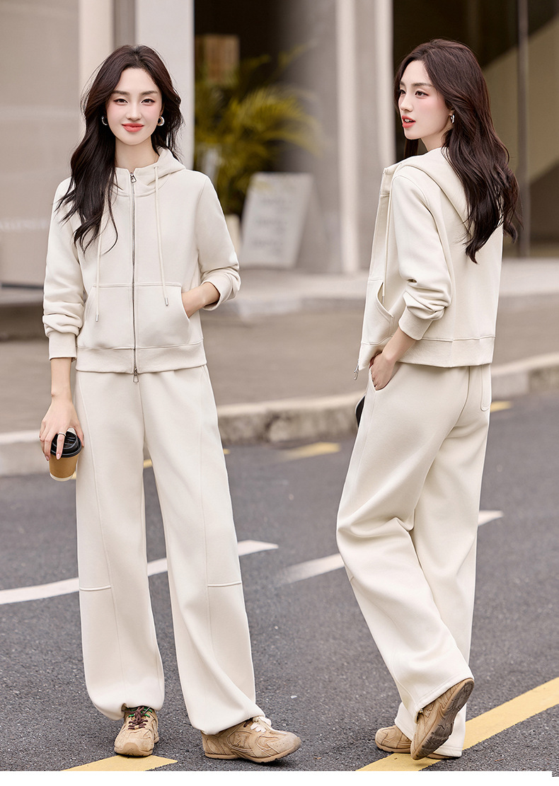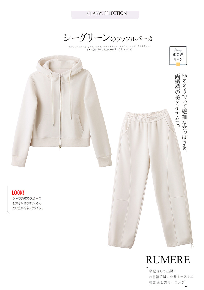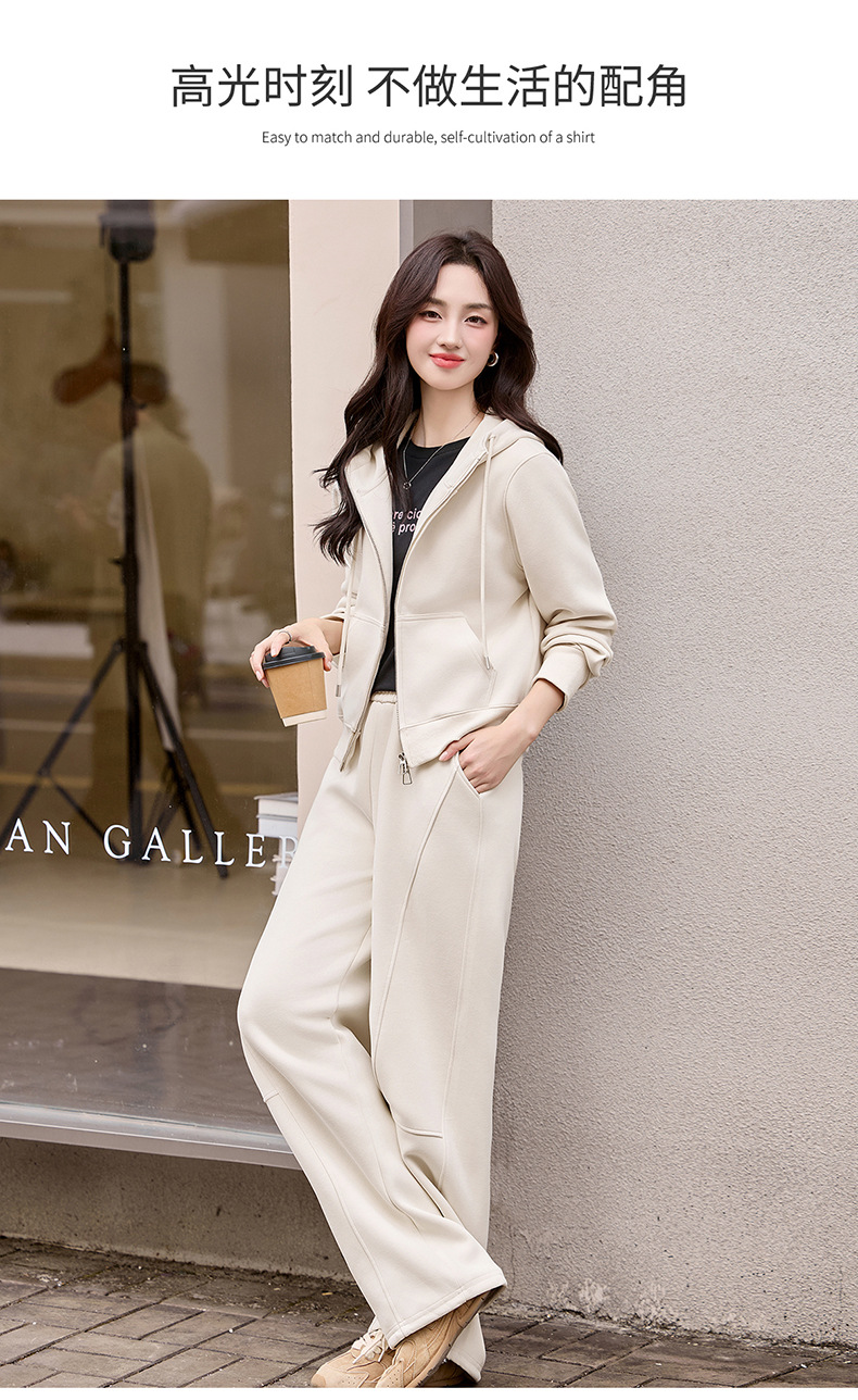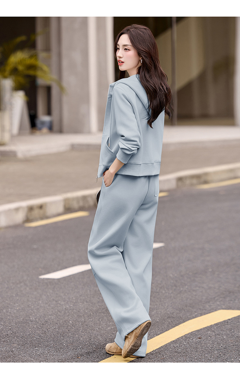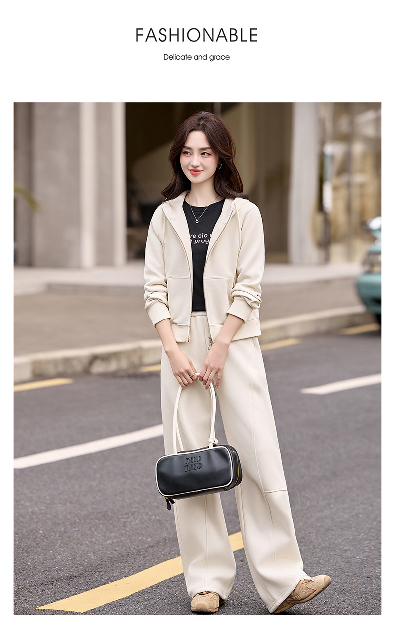 ZYRH2095休闲运动连帽卫衣套装女早秋显瘦开衫2025春季新款阔腿裤子两件套