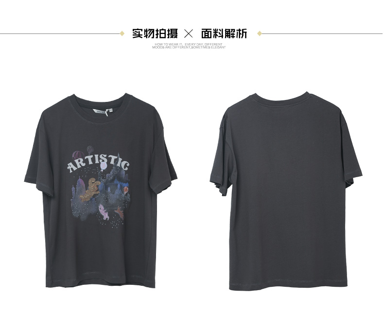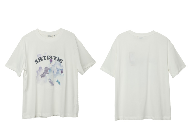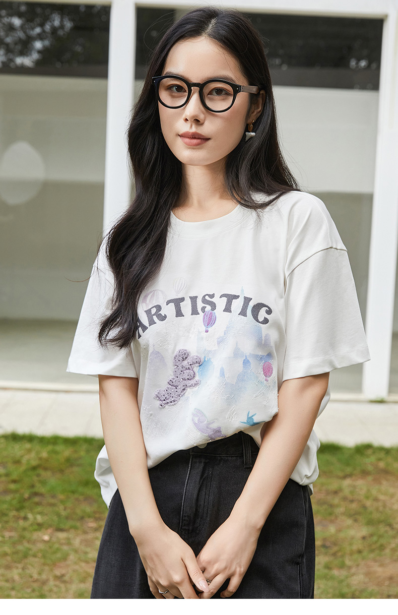 白色卡通兔子城堡印花短袖 T 恤女 2026 夏季新款宽松显瘦圆领百搭上衣
