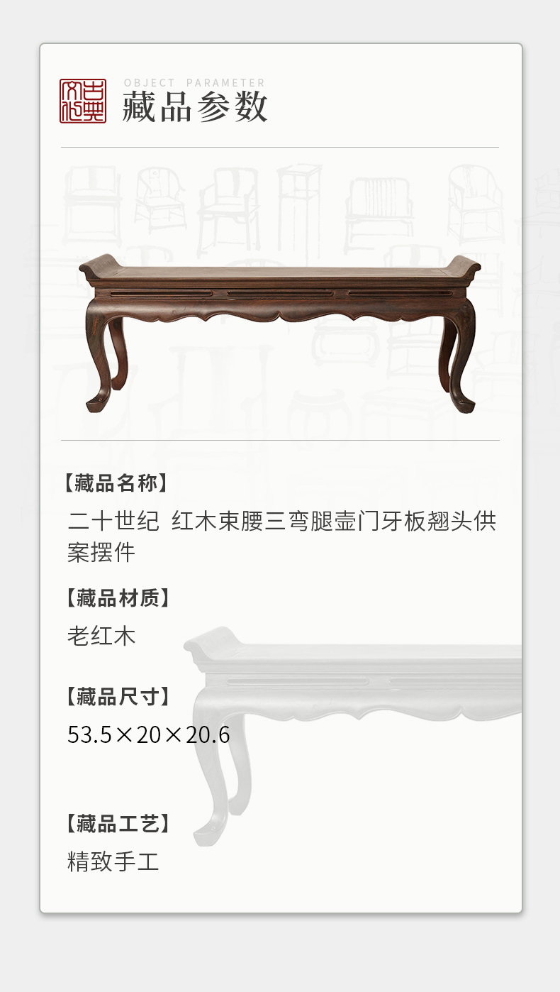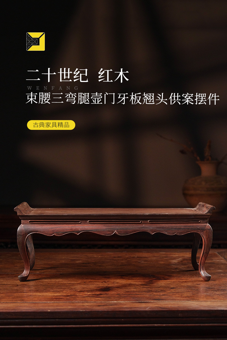 二十世纪 红木束腰三弯腿壸门牙板翘头供案摆件