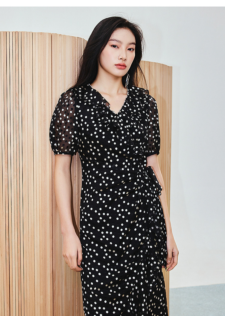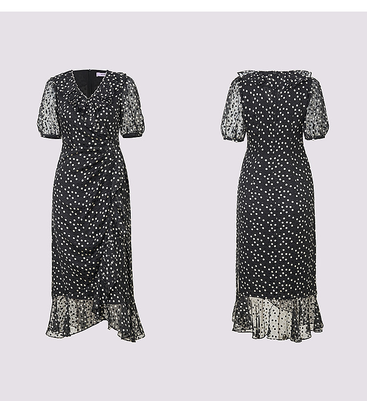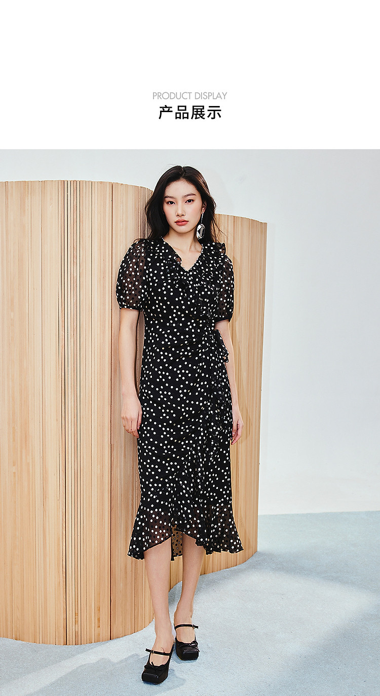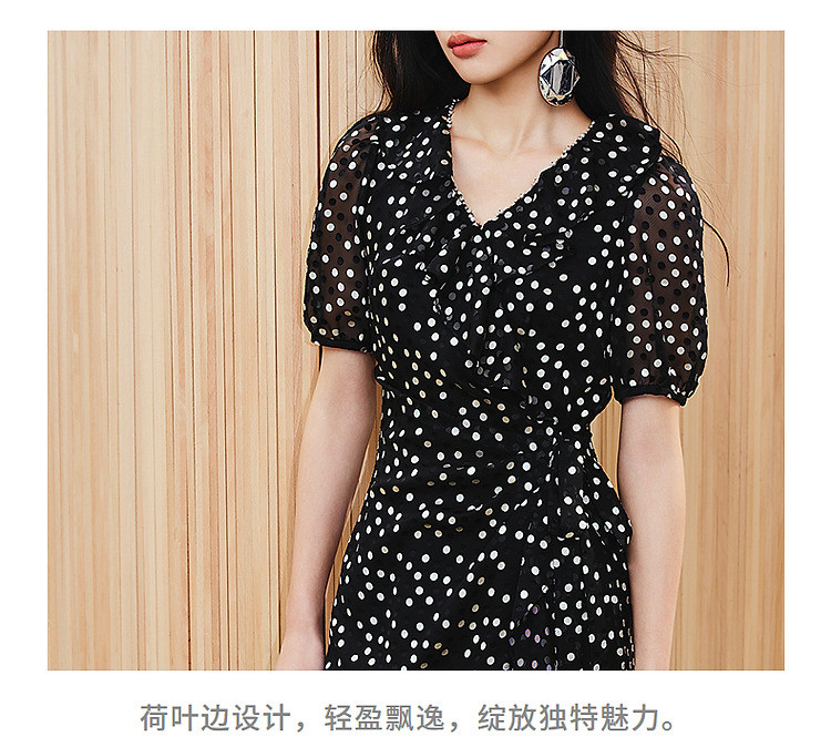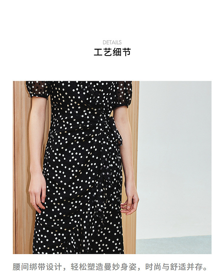 法式复古波点收腰连衣裙25夏浪漫赫本风X型收腰抽褶长裙(货号:MS86DR020D0003)
