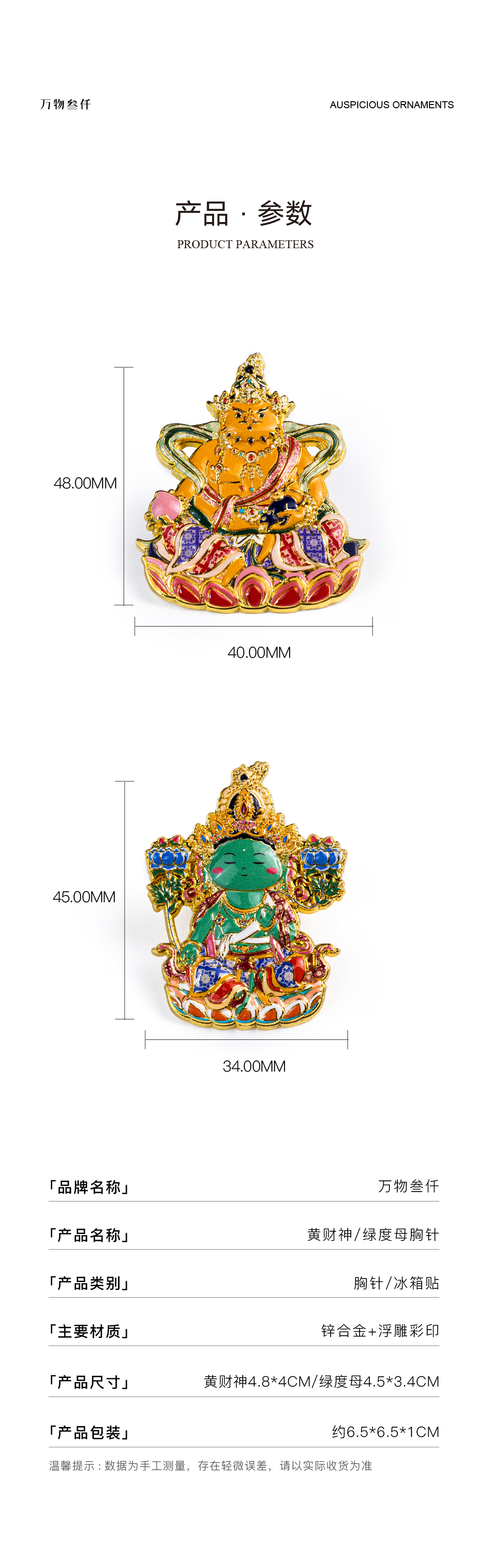 黄财神绿度母胸针冰箱贴两用 | 万物叁仟
