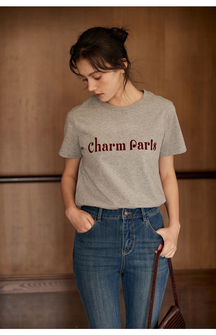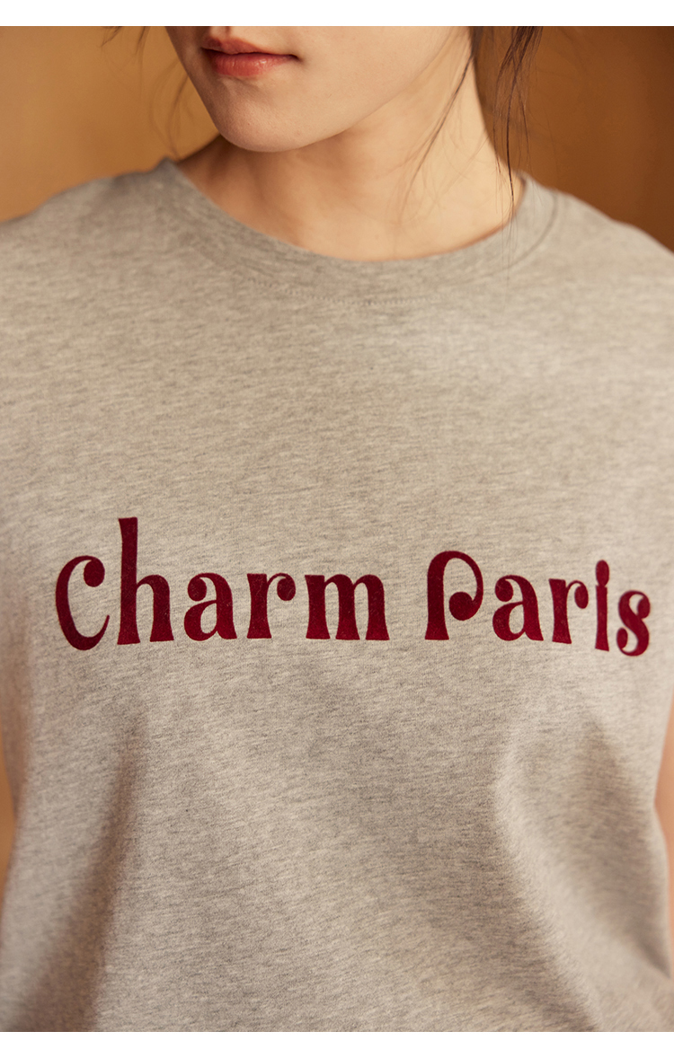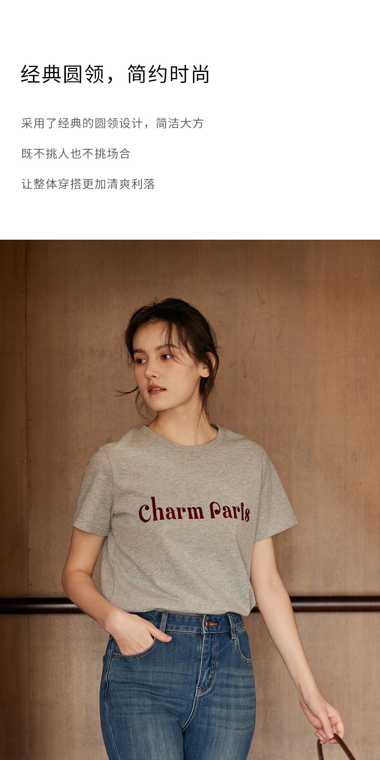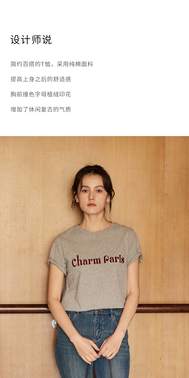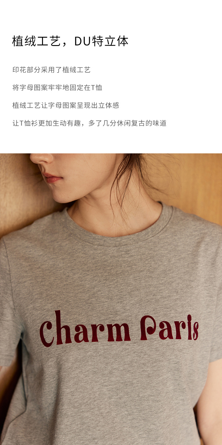 HeyDress植绒字母印花T恤女夏季圆领宽松显瘦短袖百搭休闲上衣