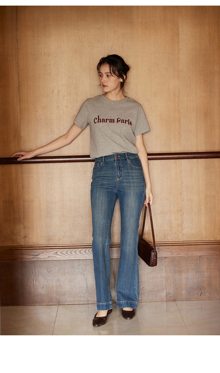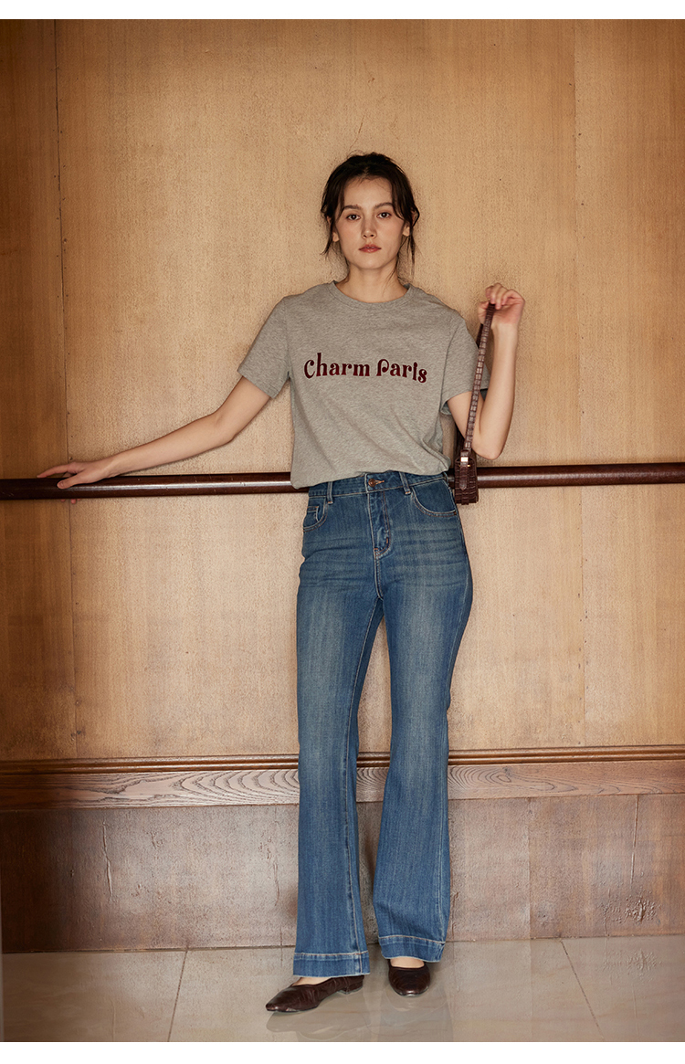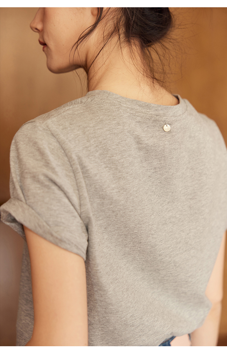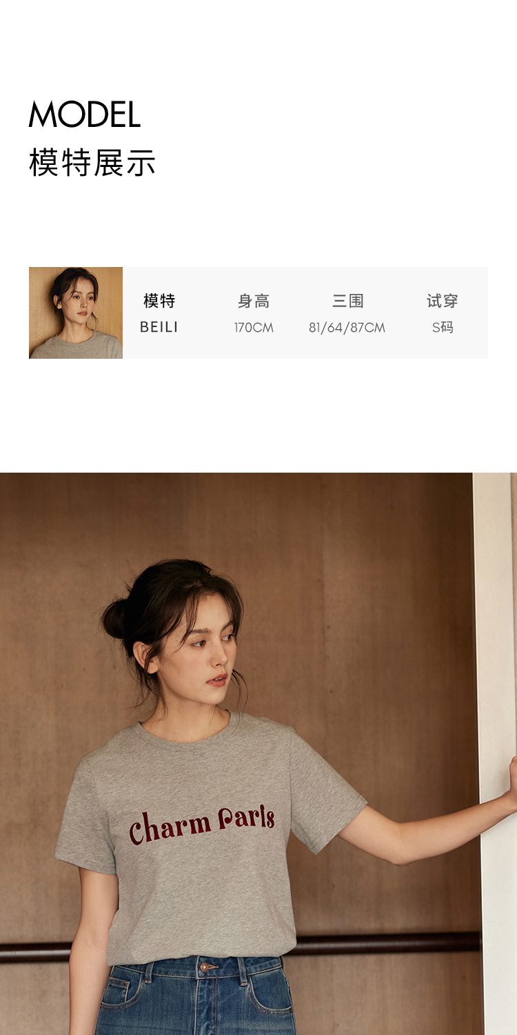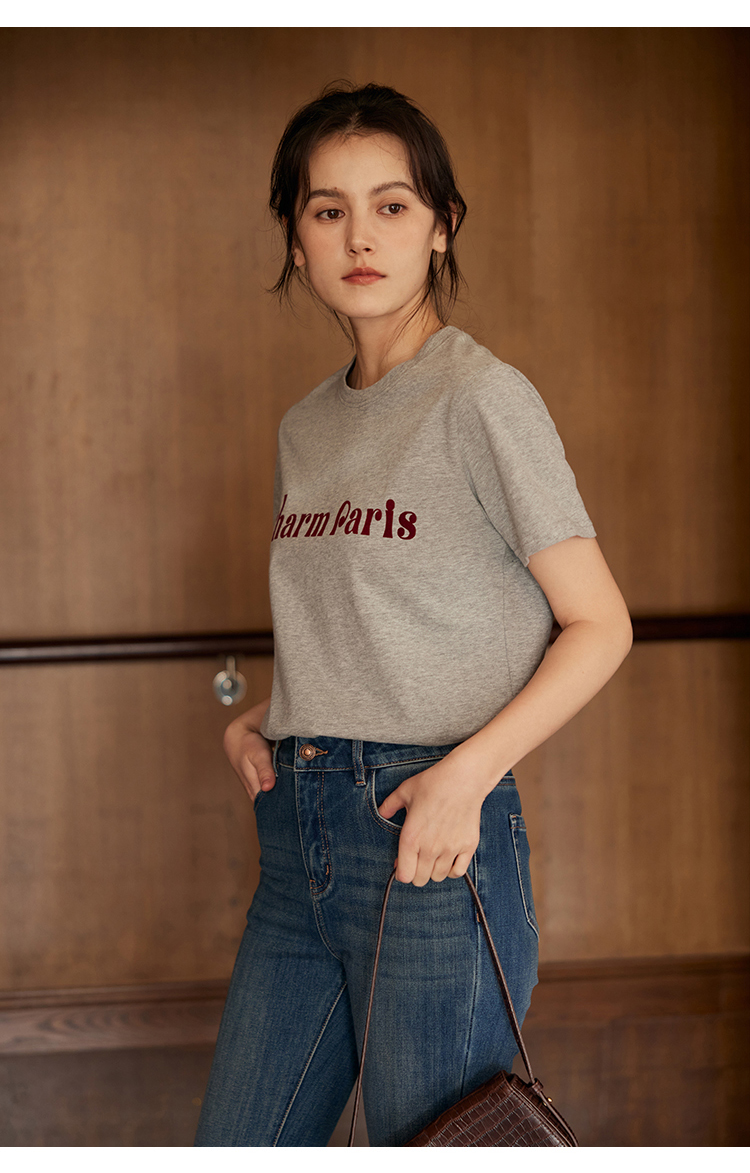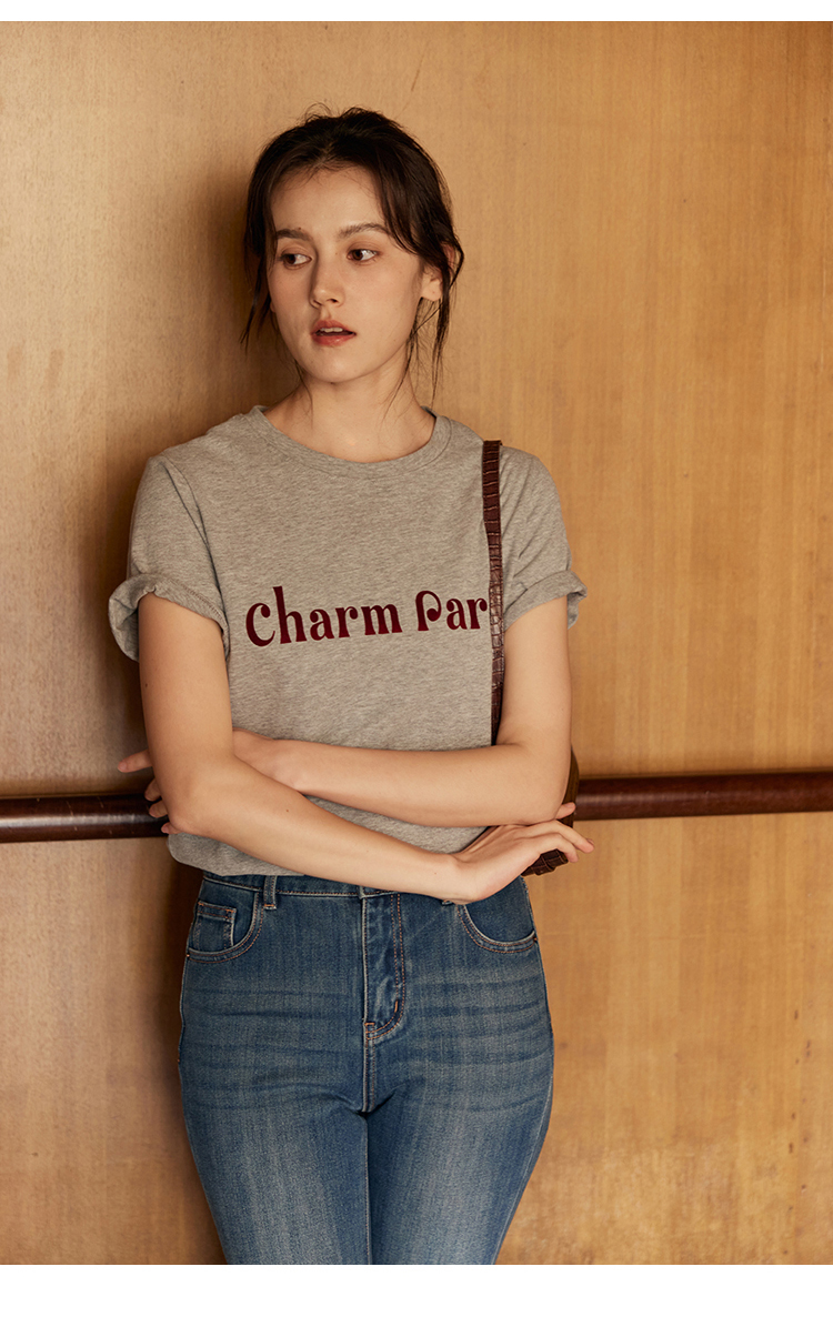 HeyDress植绒字母印花T恤女夏季圆领宽松显瘦短袖百搭休闲上衣