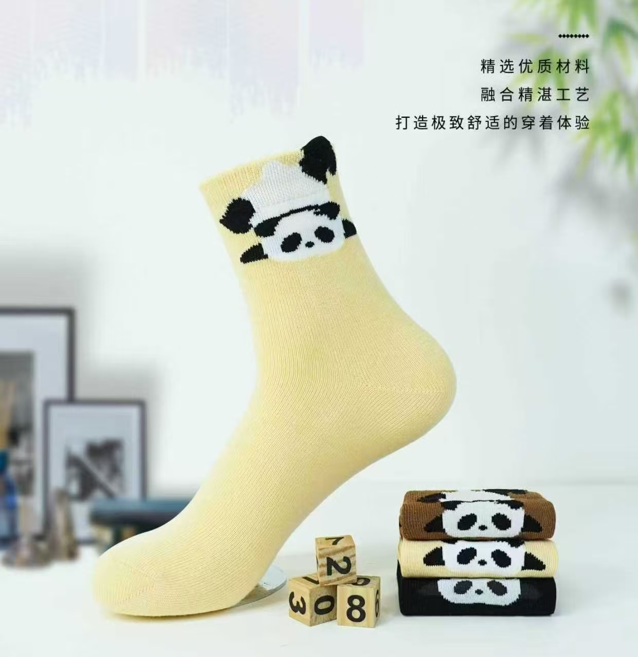 【品名】SL竹纤维时尚倒立熊猫长筒女袜2536