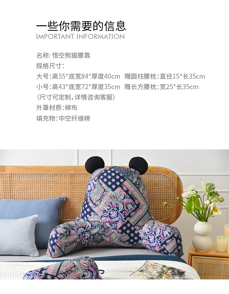悟空熊猫腰靠床头靠垫软包腰靠沙发飘窗可拆洗