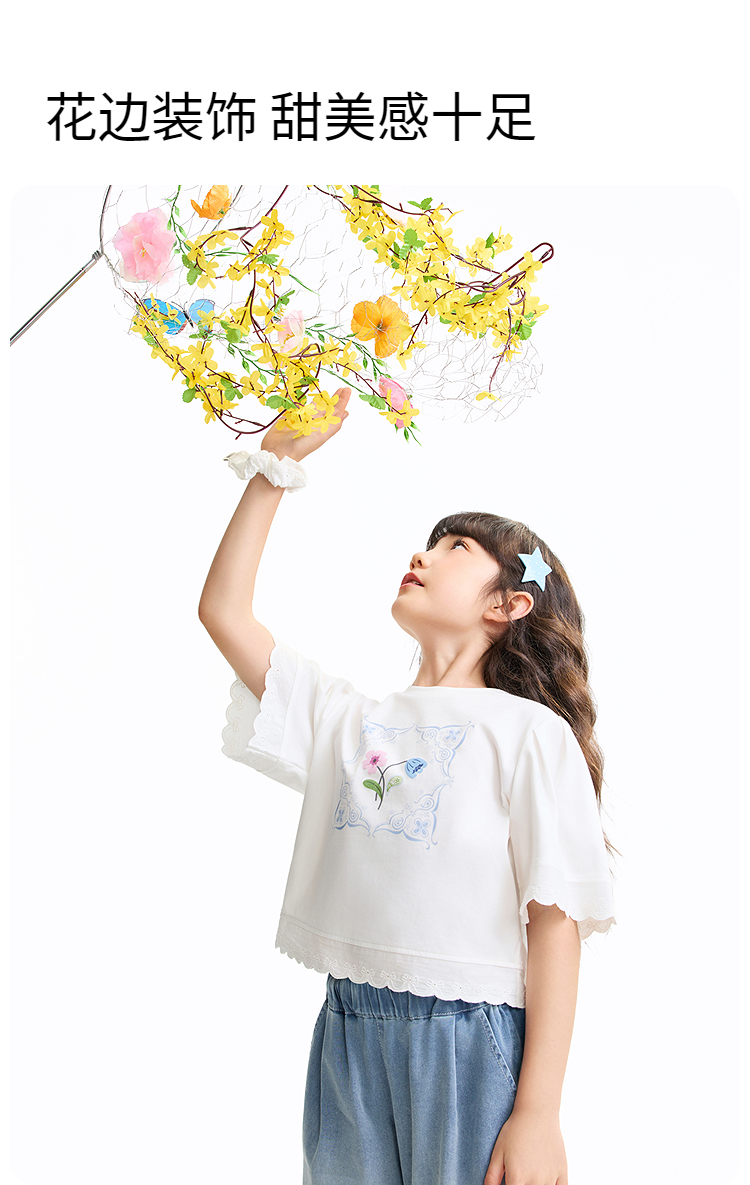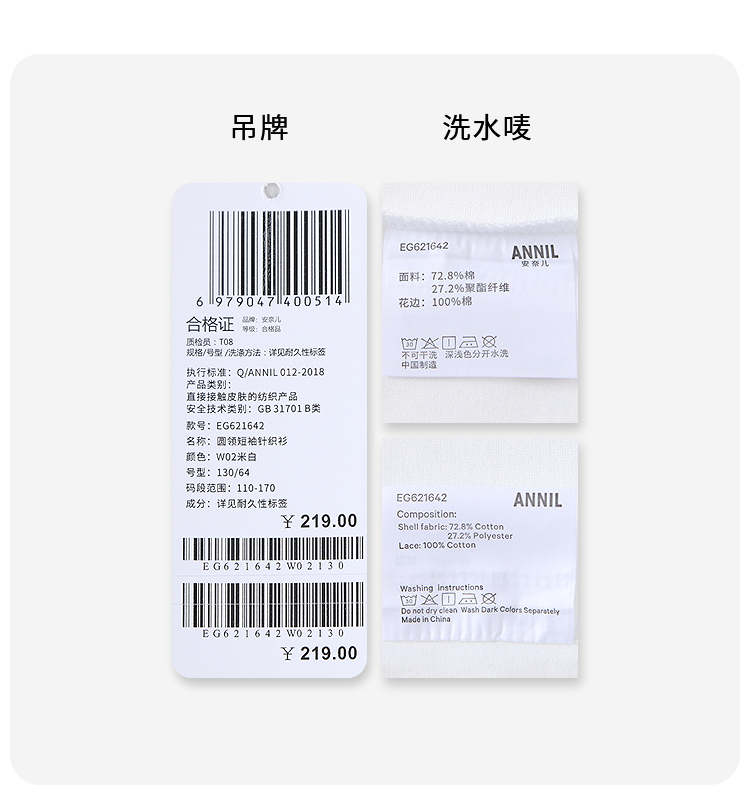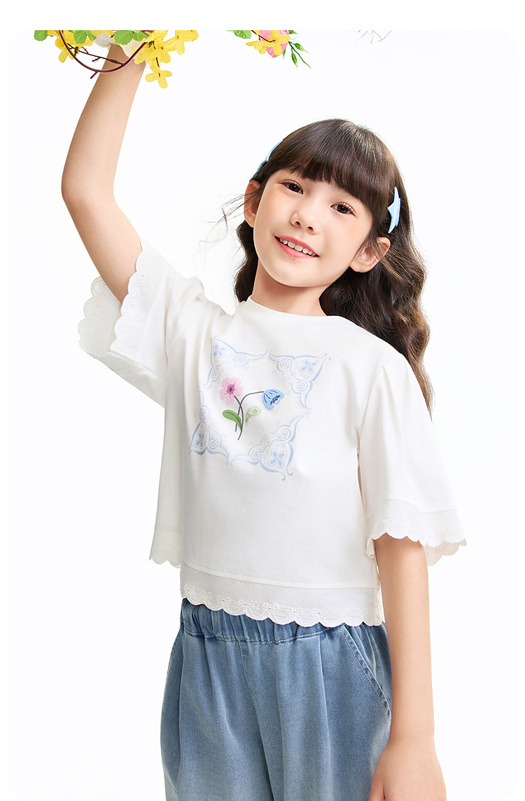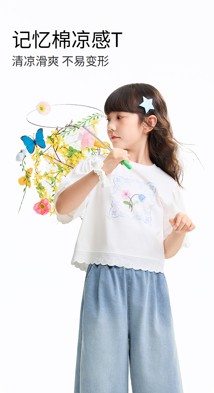 女童圆领短袖针织衫夏季新款安奈儿童装EG621642