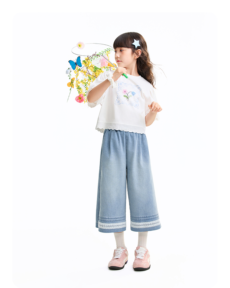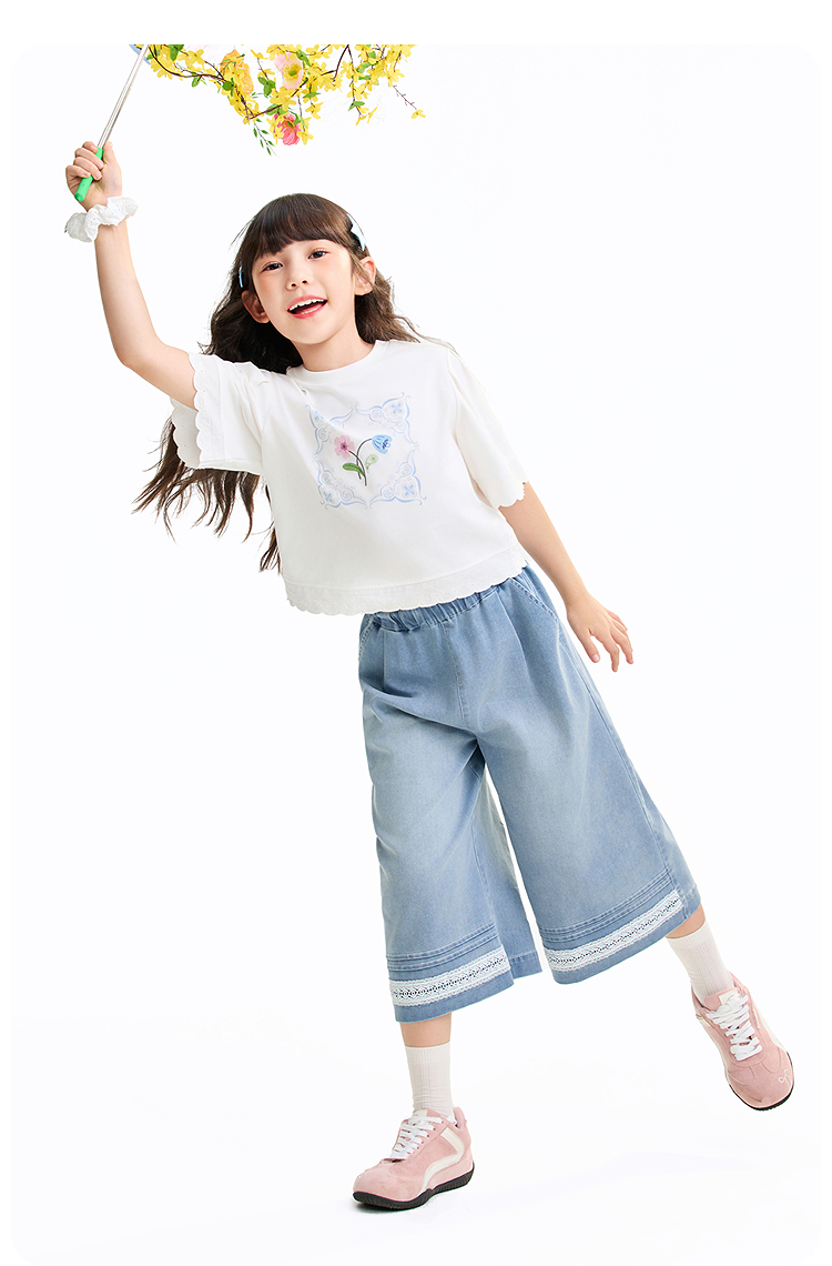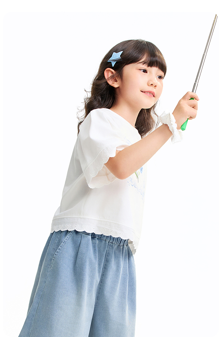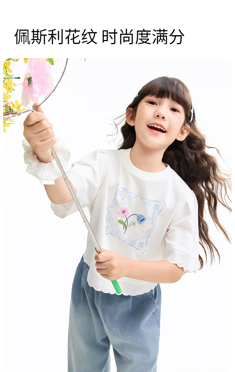 女童圆领短袖针织衫夏季新款安奈儿童装EG621642