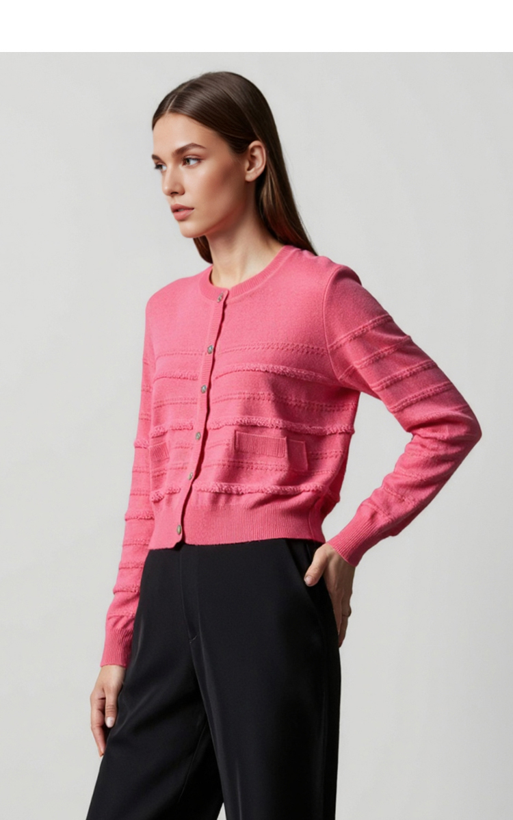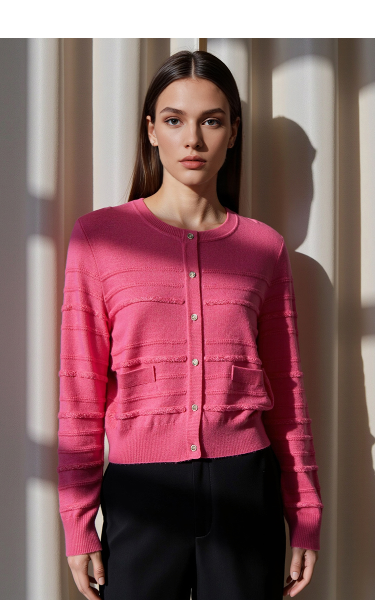 EITIE爱特爱气质圆领舒适透气百搭针织开衫秋季新款7901606