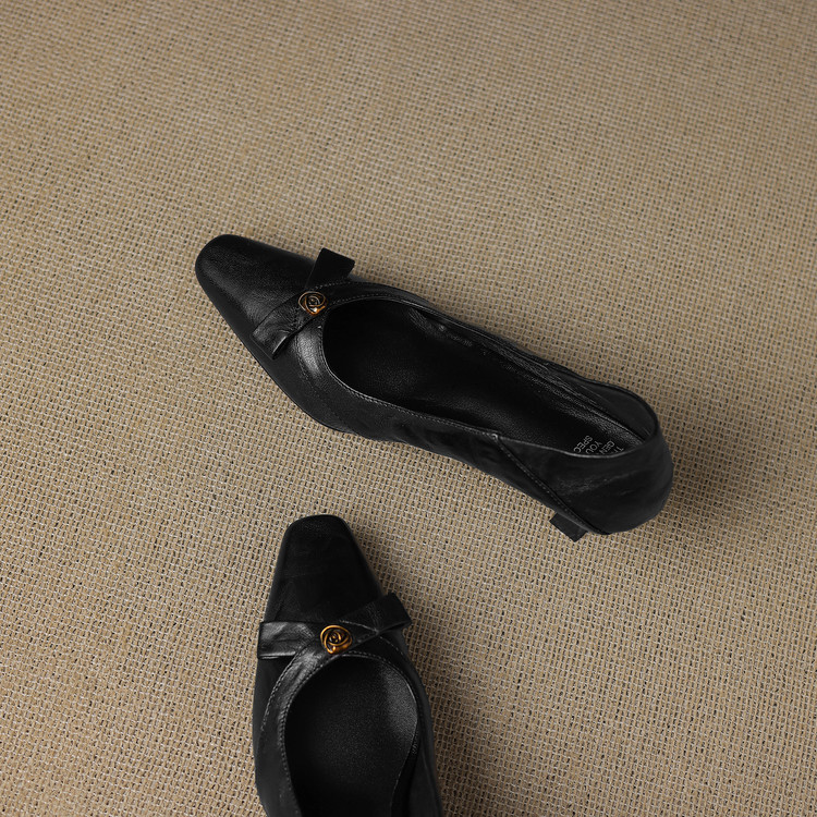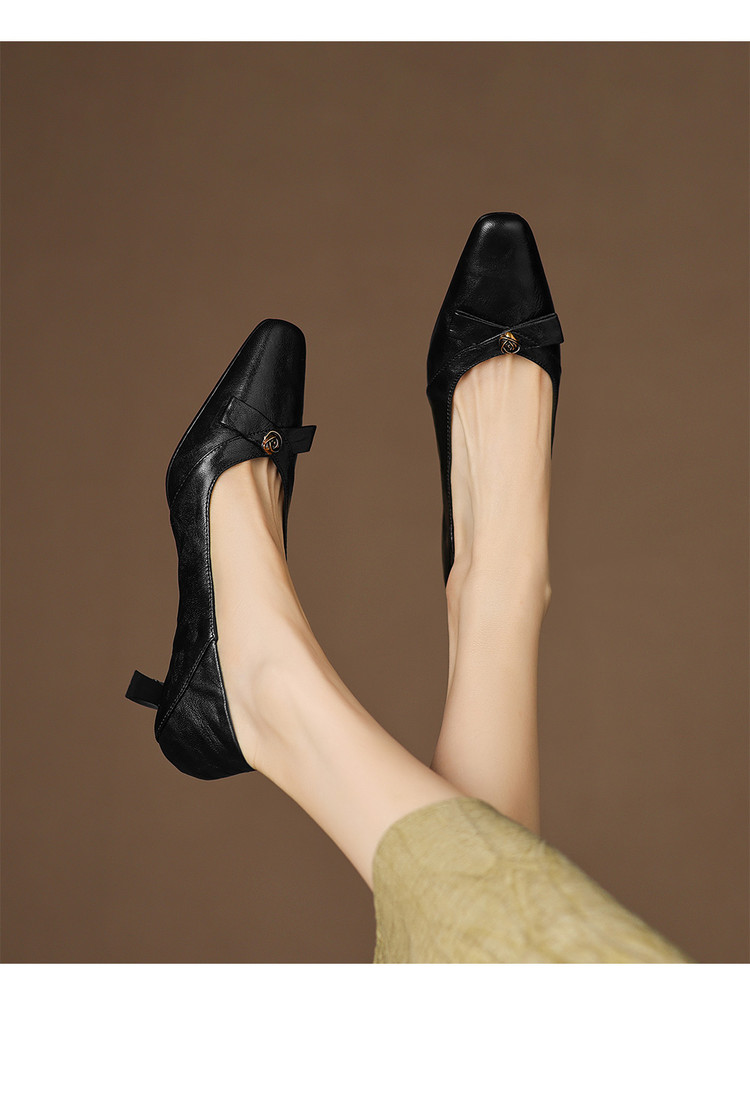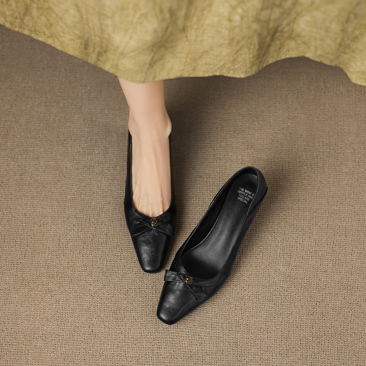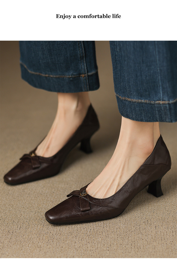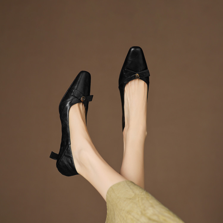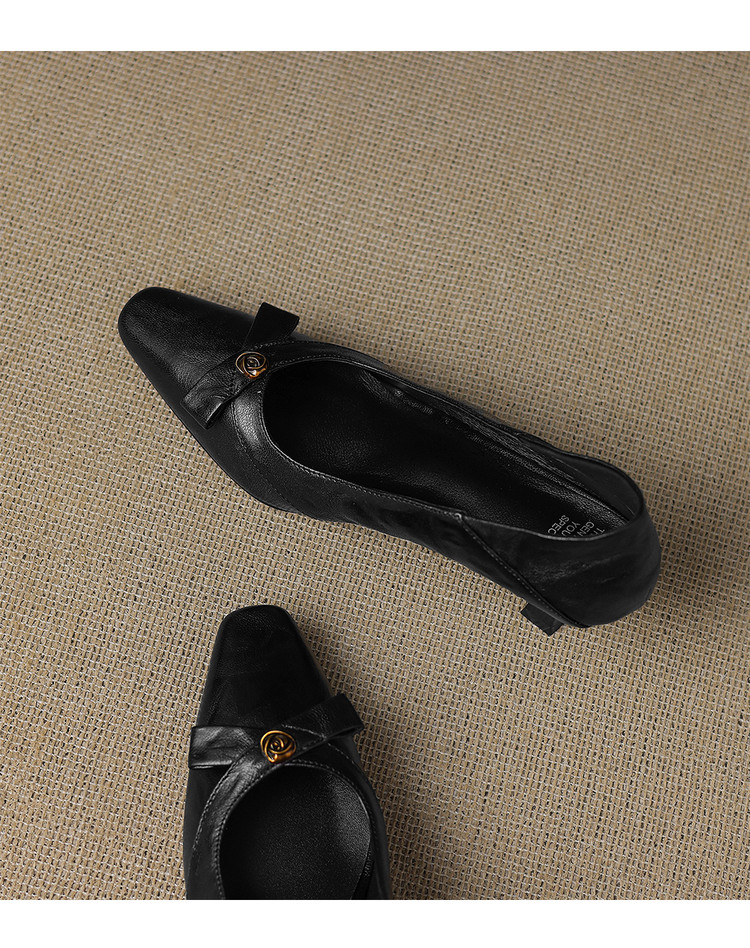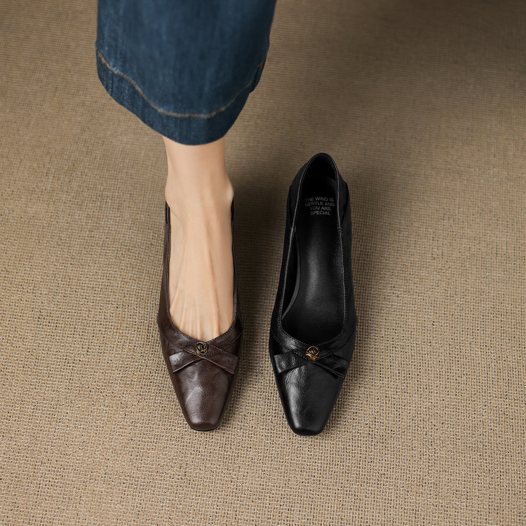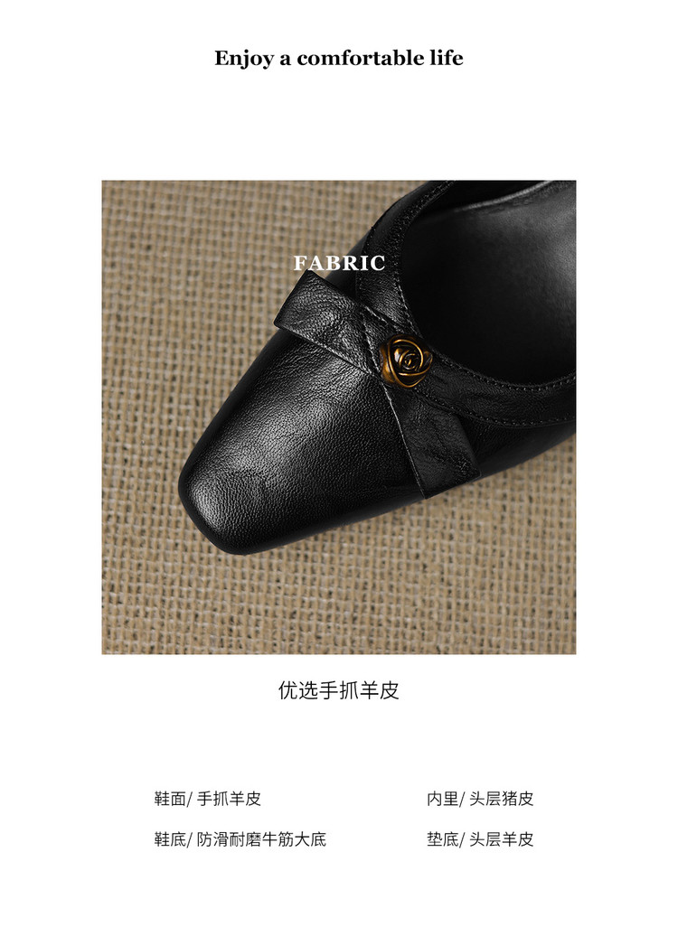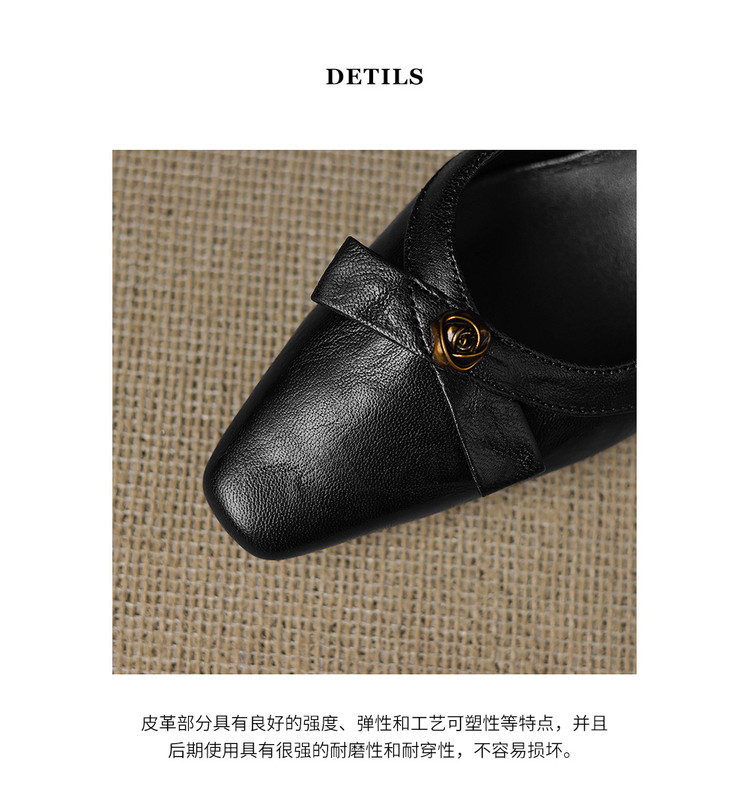 【预售5天】真皮复古蝴蝶结一脚蹬浅口单鞋女英伦风山茶花通勤小皮鞋DJ&GX7600