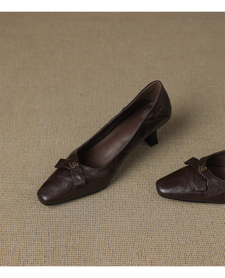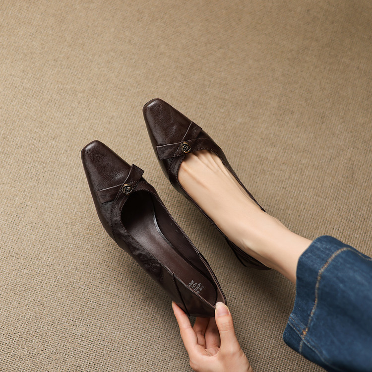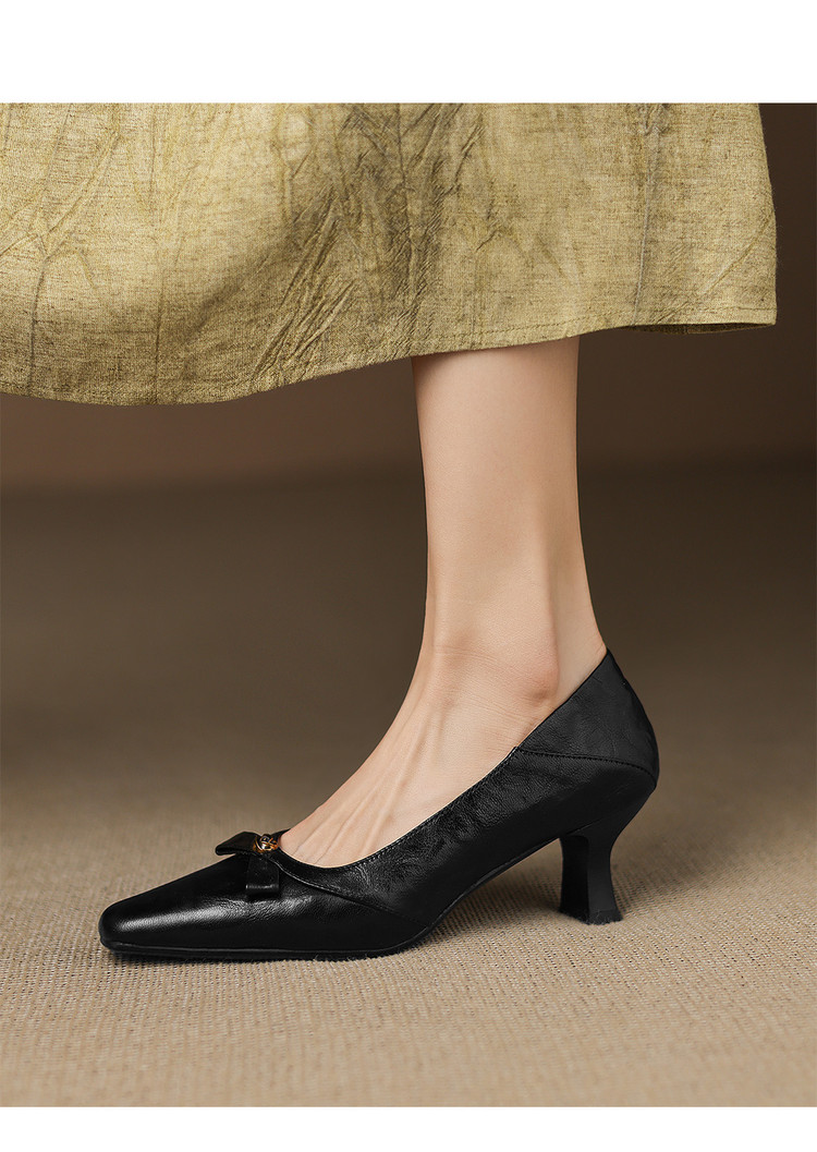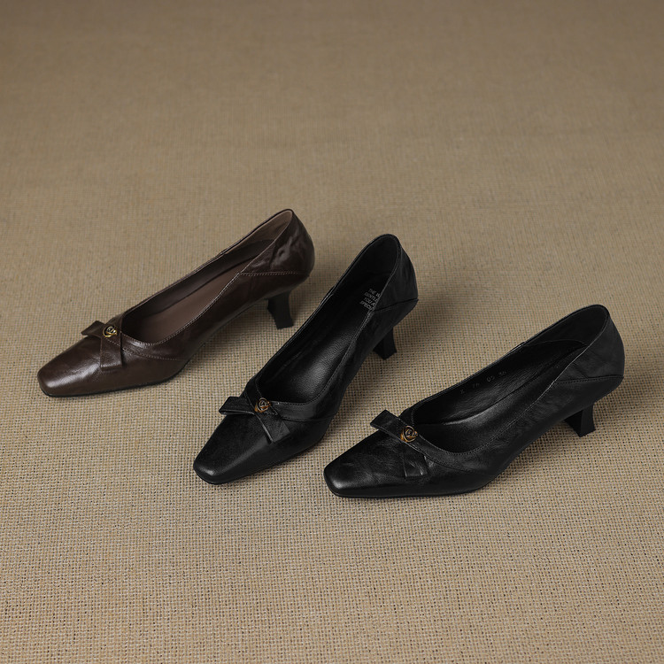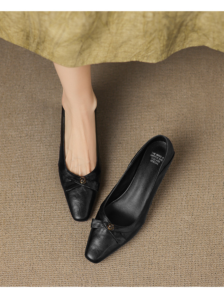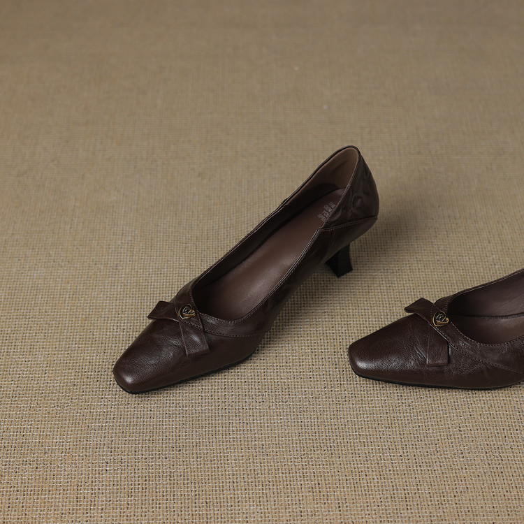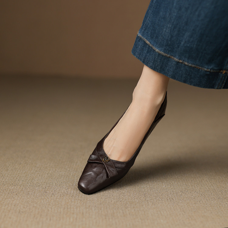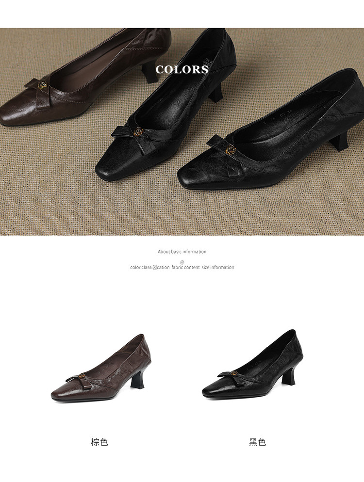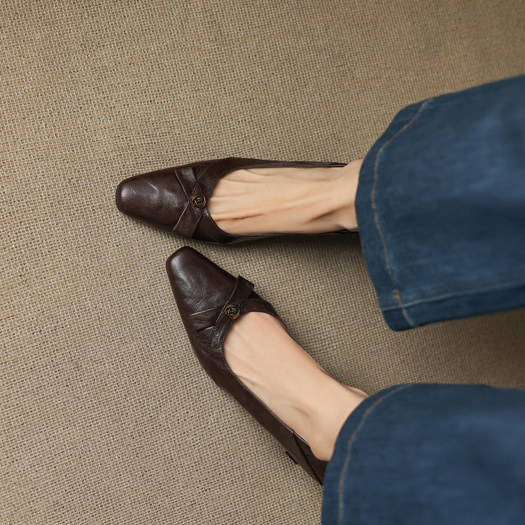 【预售5天】真皮复古蝴蝶结一脚蹬浅口单鞋女英伦风山茶花通勤小皮鞋DJ&GX7600