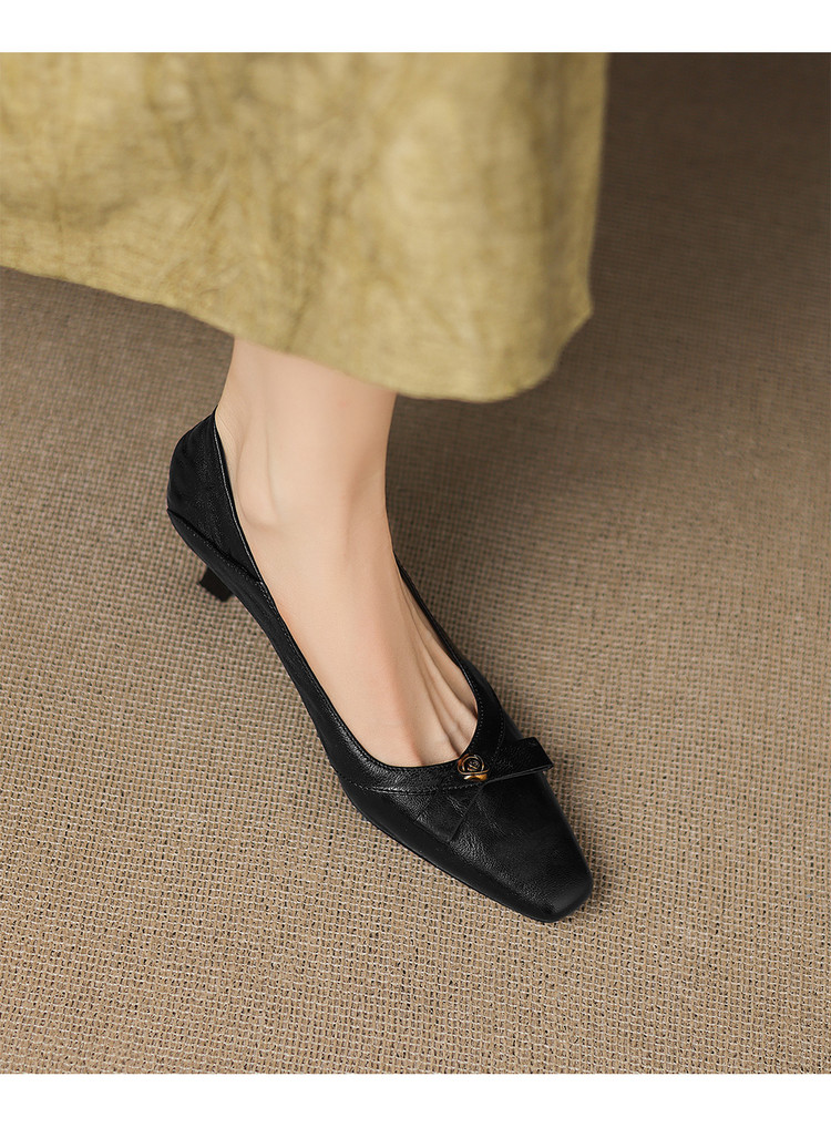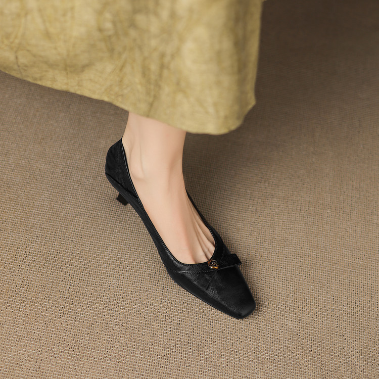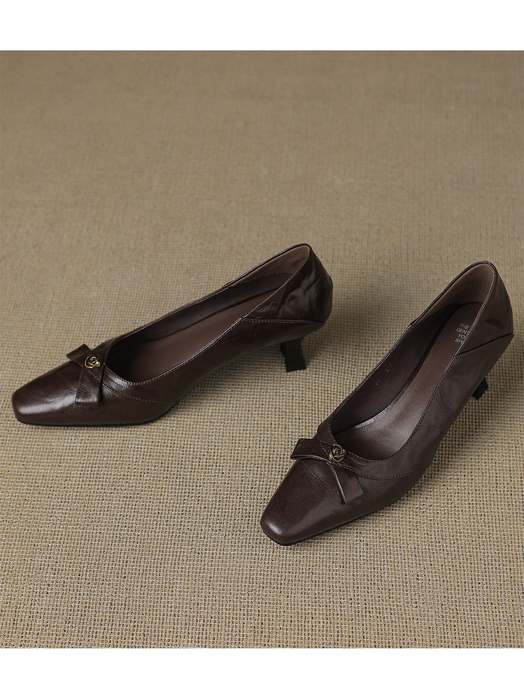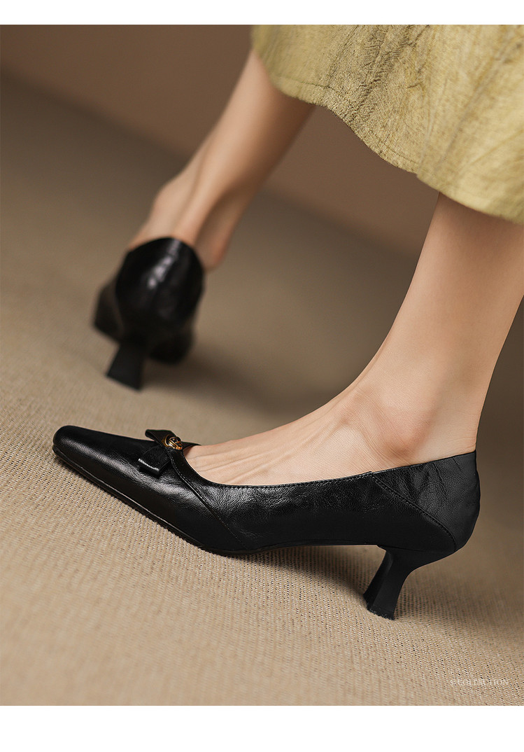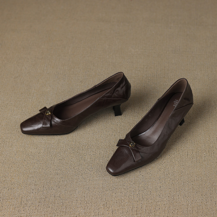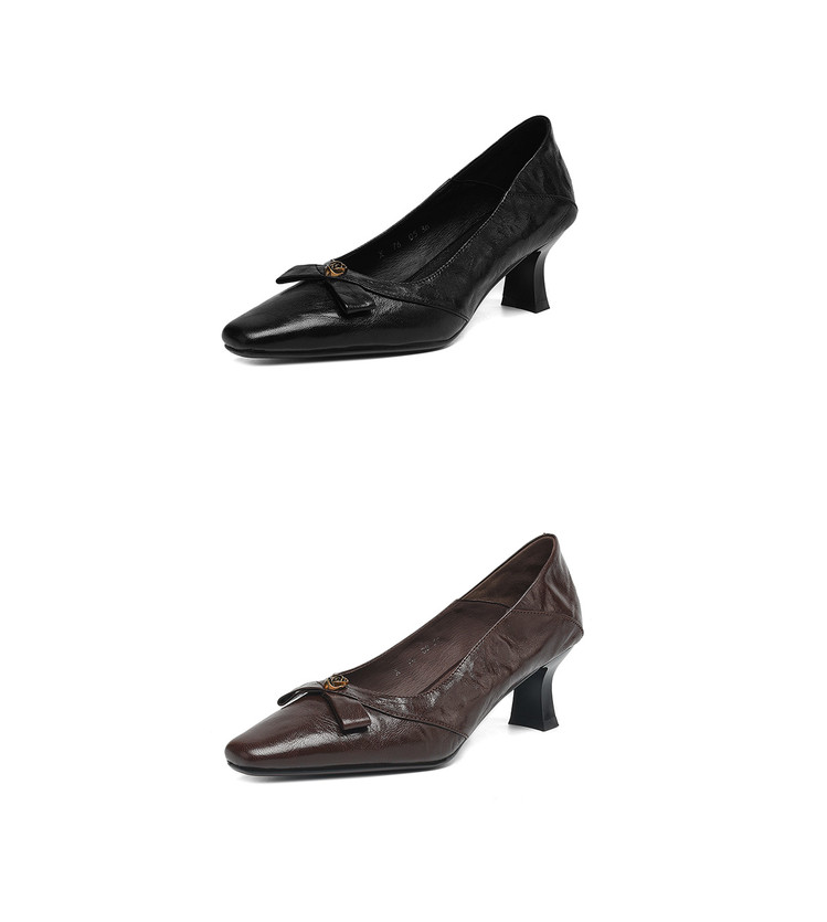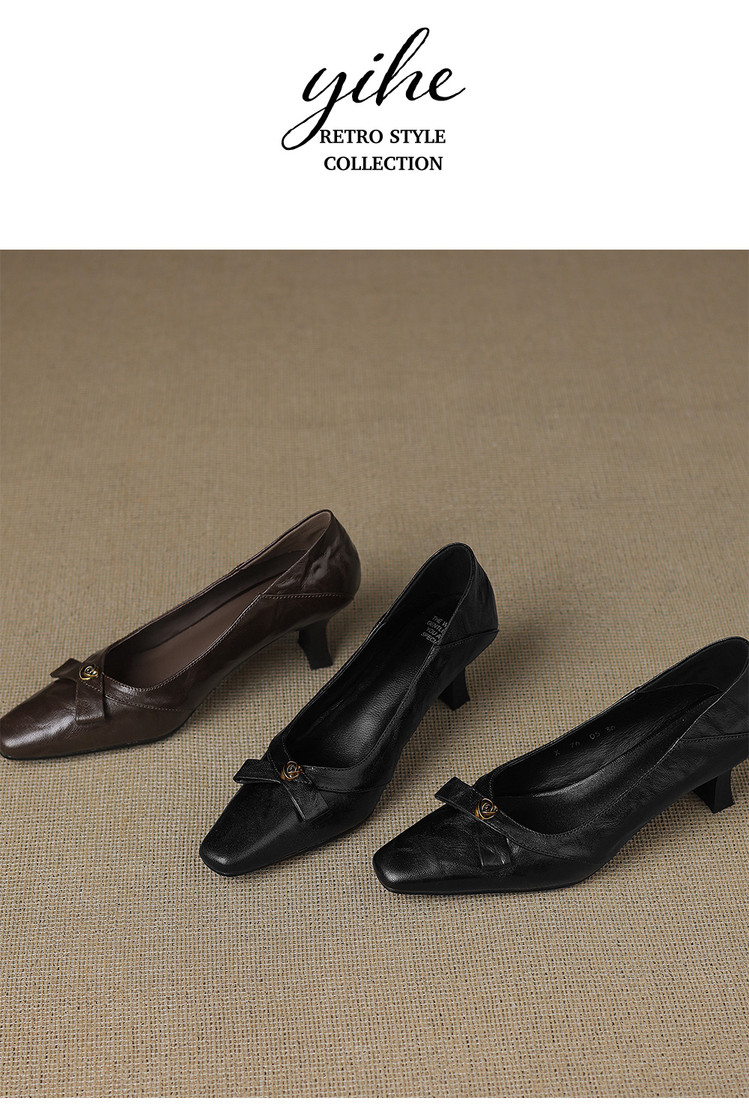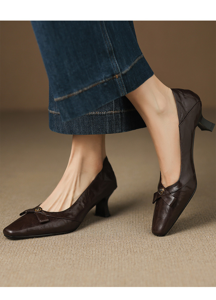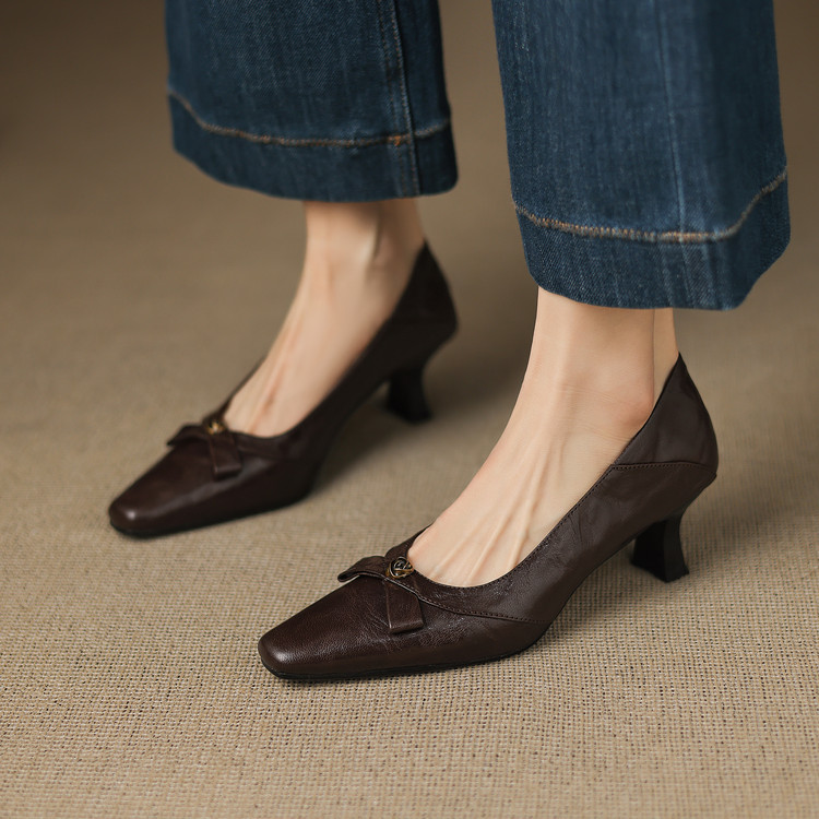 【预售5天】真皮复古蝴蝶结一脚蹬浅口单鞋女英伦风山茶花通勤小皮鞋DJ&GX7600