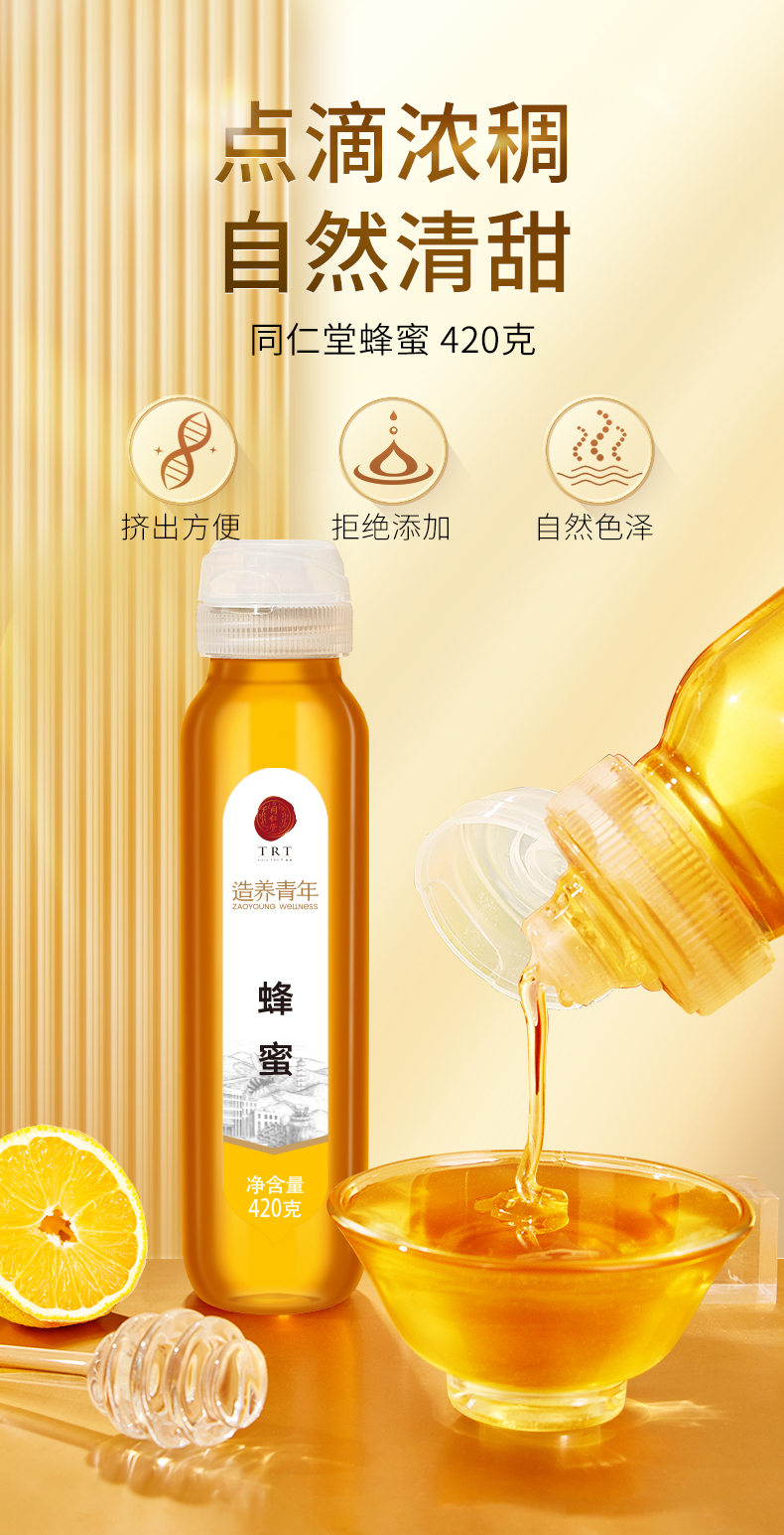 【正宗同仁堂品牌】北京同仁堂 蜂蜜420克 清香怡人 纯蜂蜜拒绝添加掺杂 浓稠滋补 便携小瓶装挤压不沾手SY