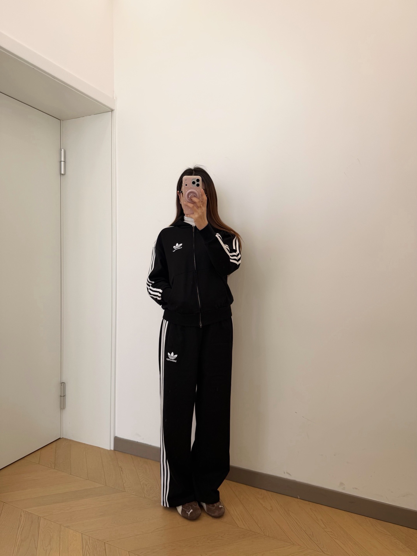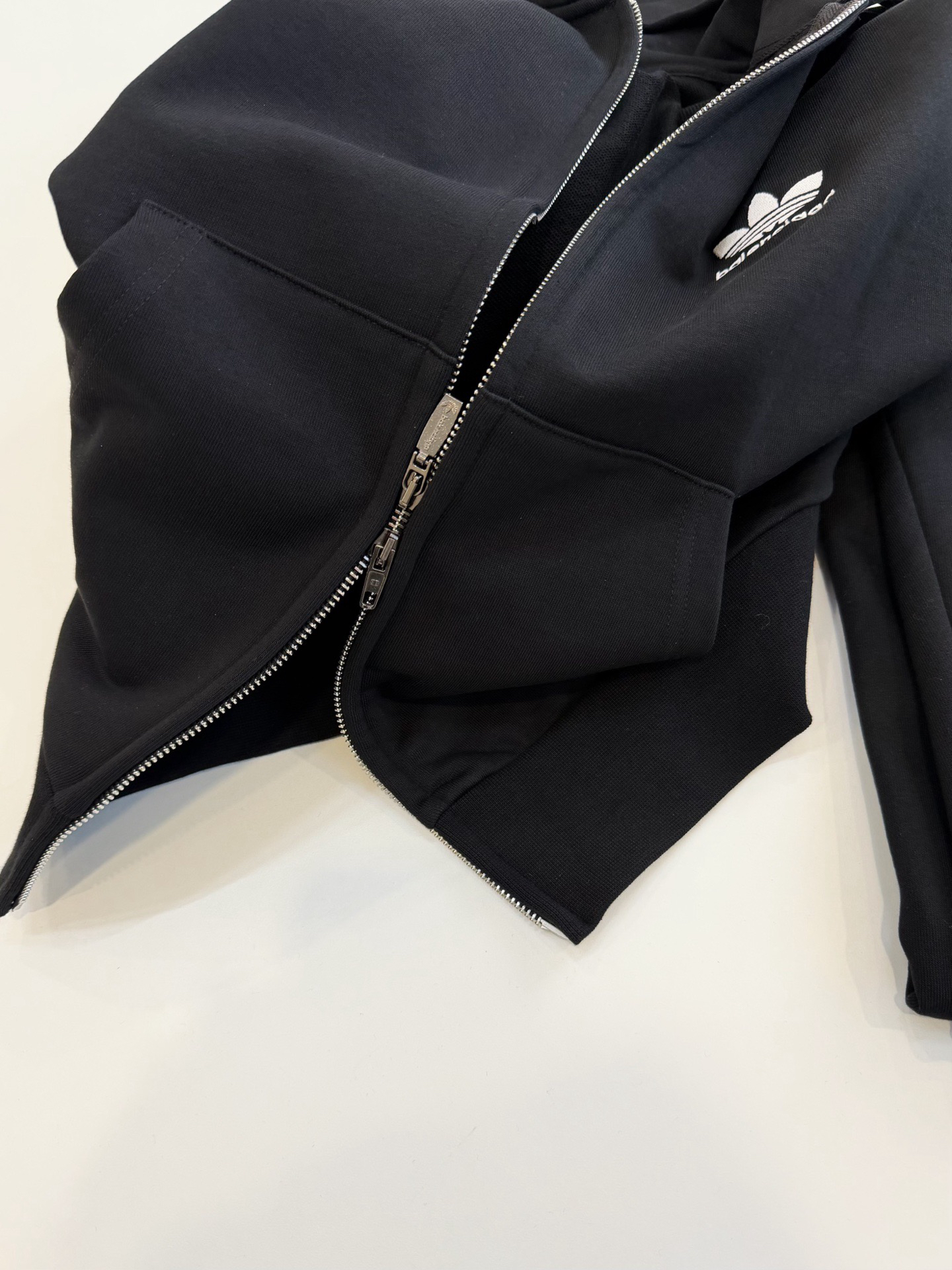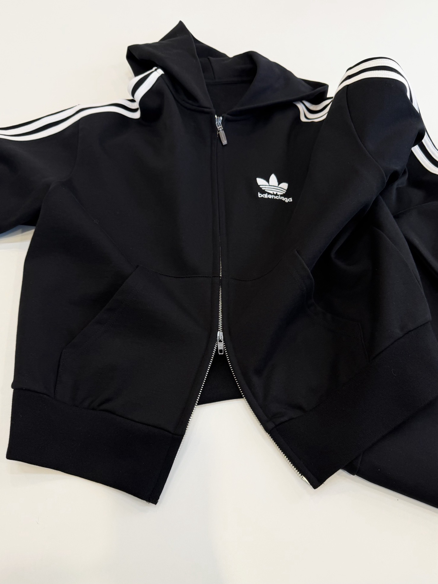 这款我也给你们做了。哈哈哈我太厉害了。这个本来就工费高,上衣更贵,好在没有重版的,这一套原价超级贵这是巴黎世家合作款,所以面料也是高克重,不像三叶草品牌那样的松垮便宜的面料。