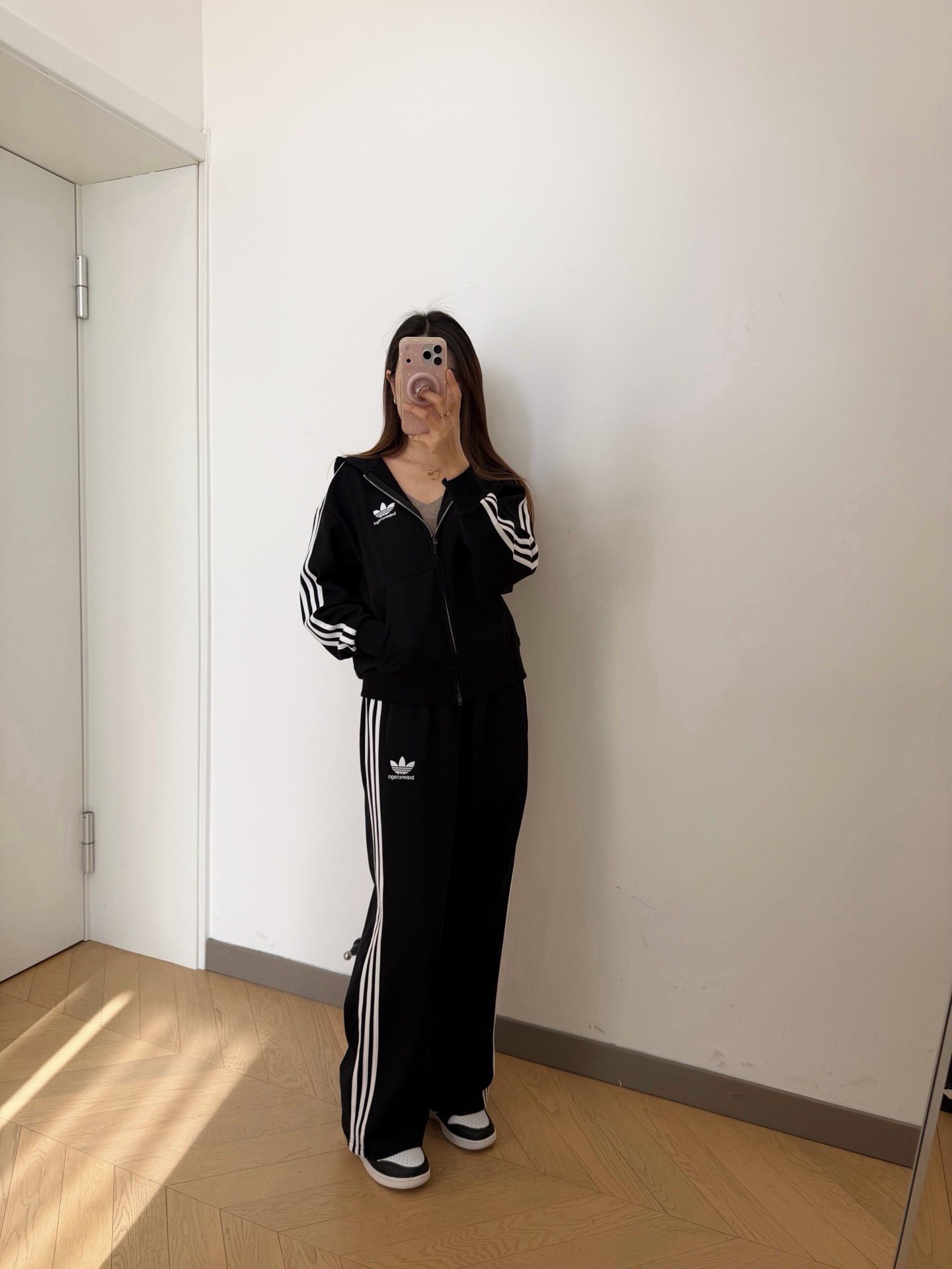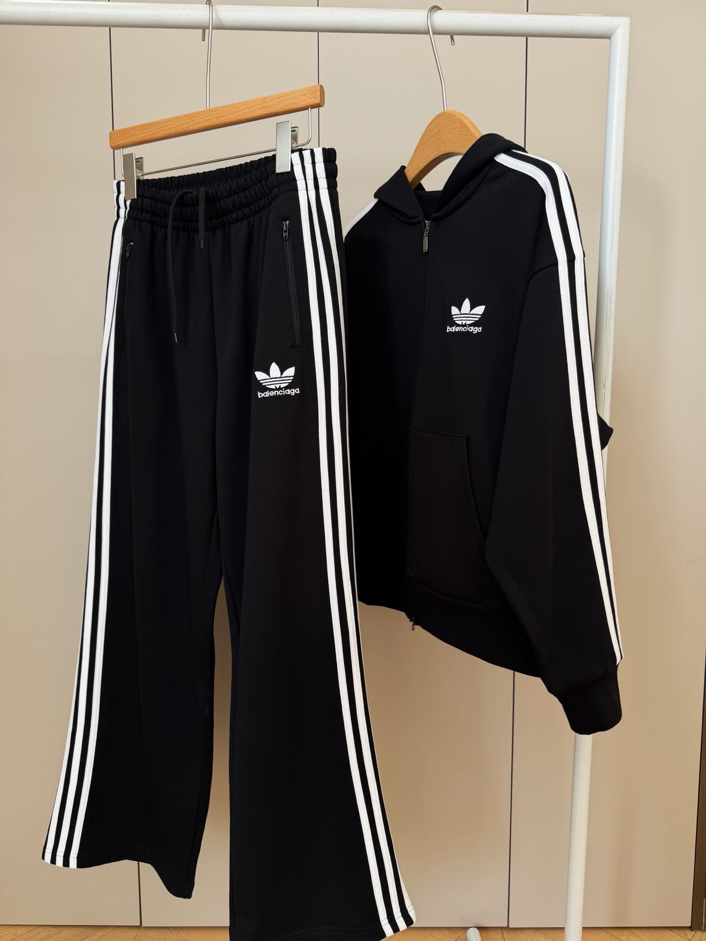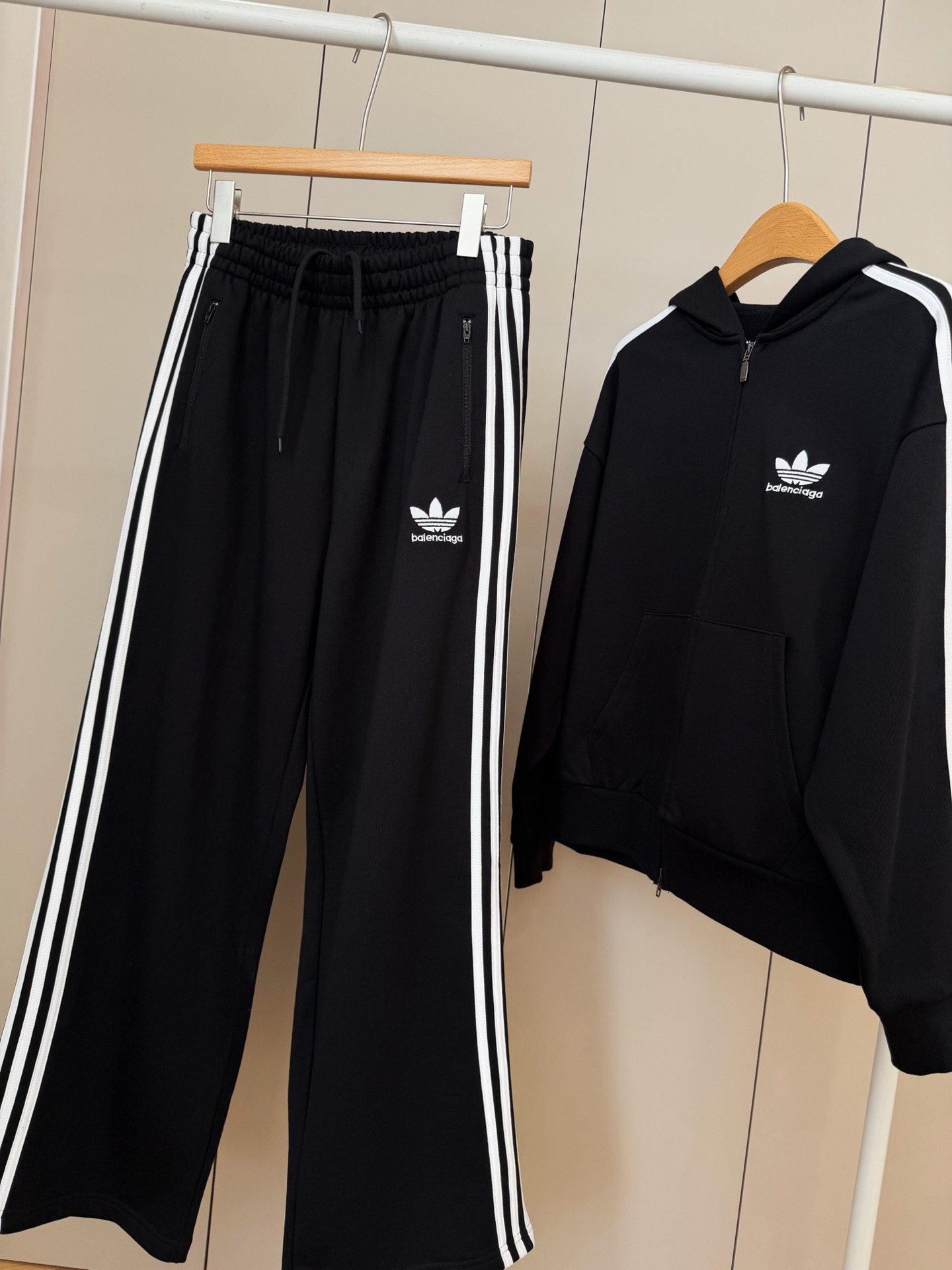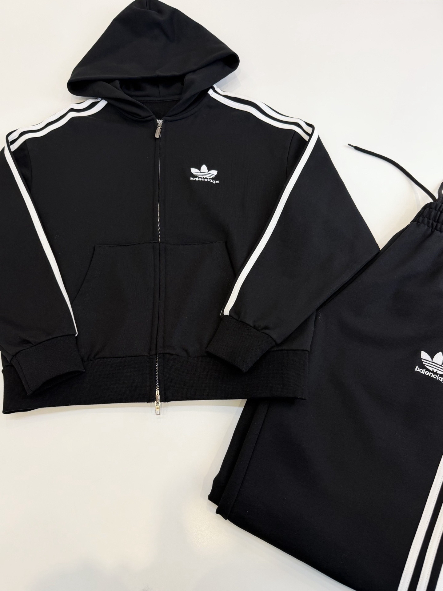 融合巴黎世家的先锋设计与三叶草的经典运动底蕴,无论是日常出街、运动通勤,还是潮流聚会,这套套装都能轻松hold住场面。不夸张又有态度的设计。整体版型宽松有度,不挑身材更显气场。特特特特特价!最低价!这个价格真的我都没利润的,我和客服也说了,就是本钱了,我真的不骗你们的,上衣螺纹裁剪多了所以上衣做了400多件,裤子才150多条,我也没办法。只能组成套装做特价。上衣的成本就160➕
