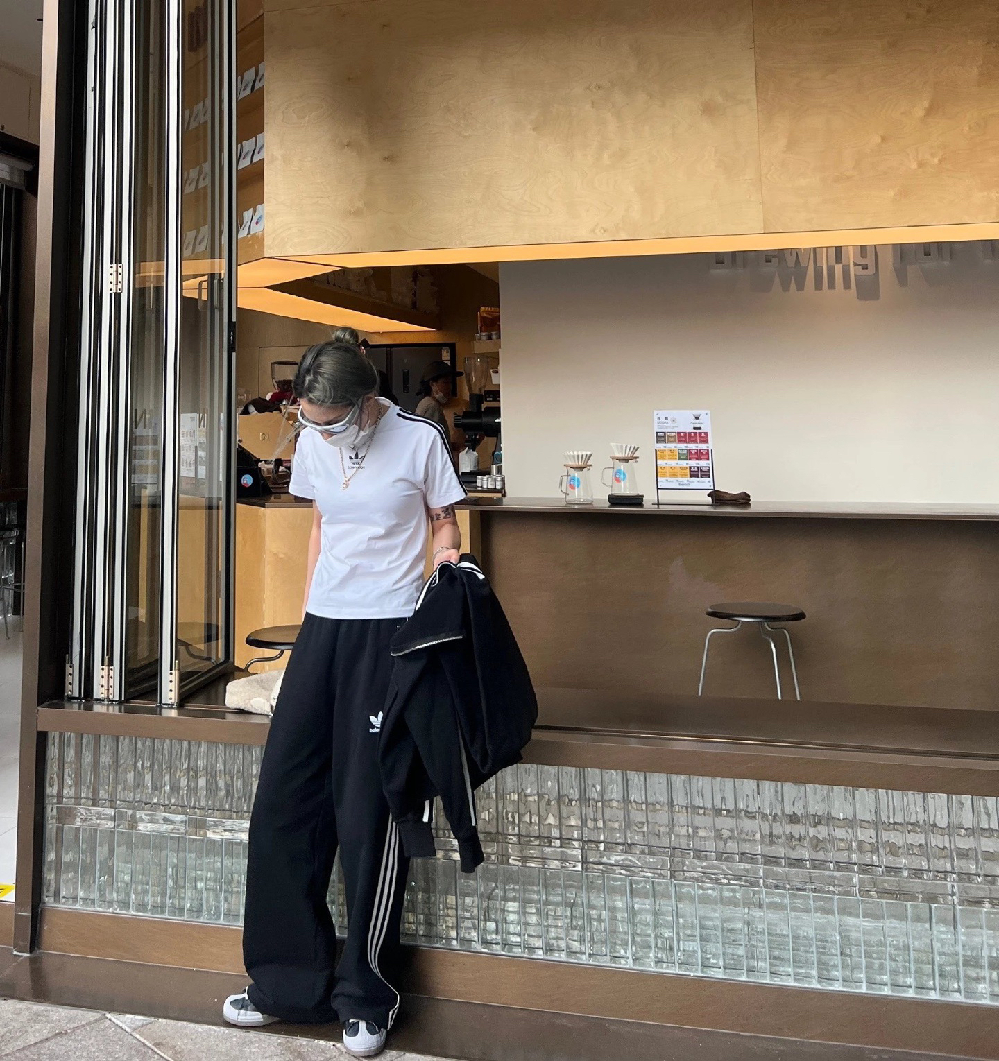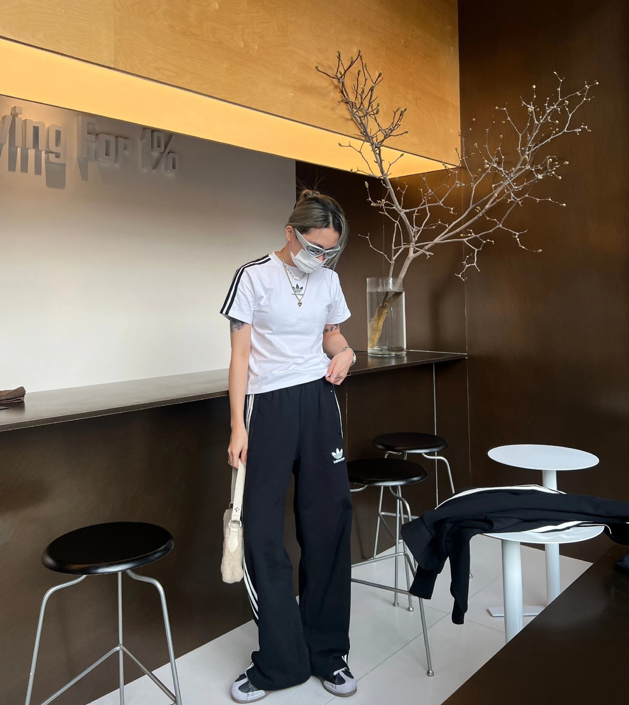 • 裤子:宽松垂坠裤型,纵向拉长腿部线条,对腿粗、胯宽友好,慵懒又显瘦
