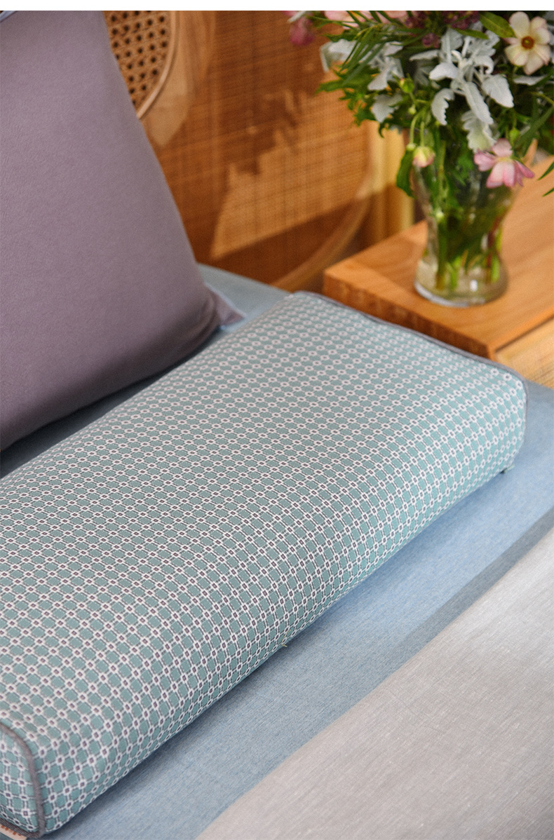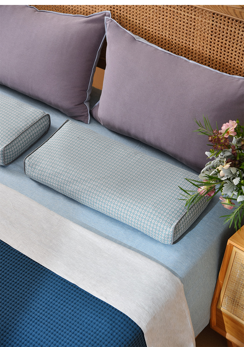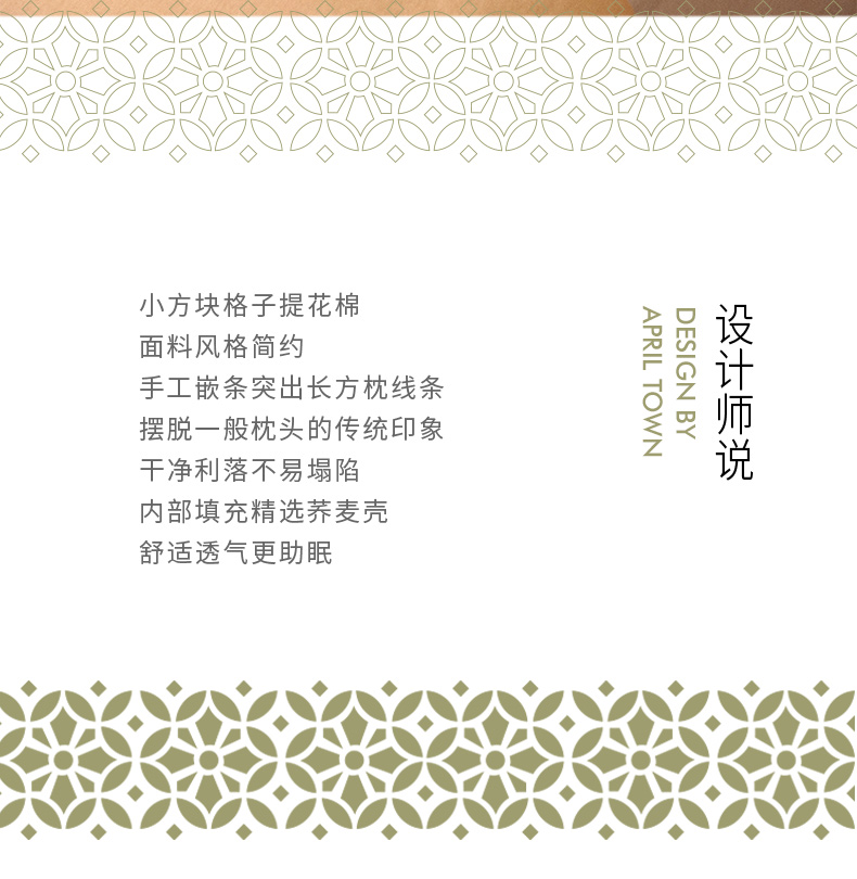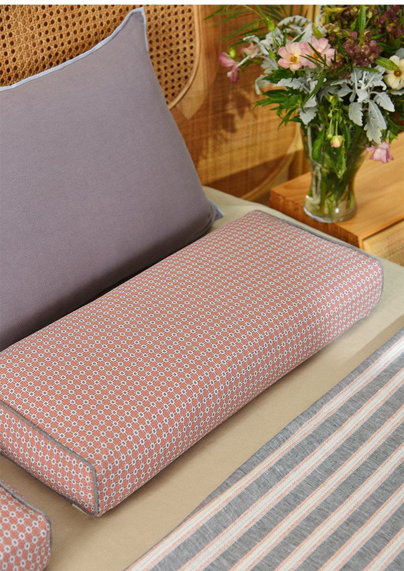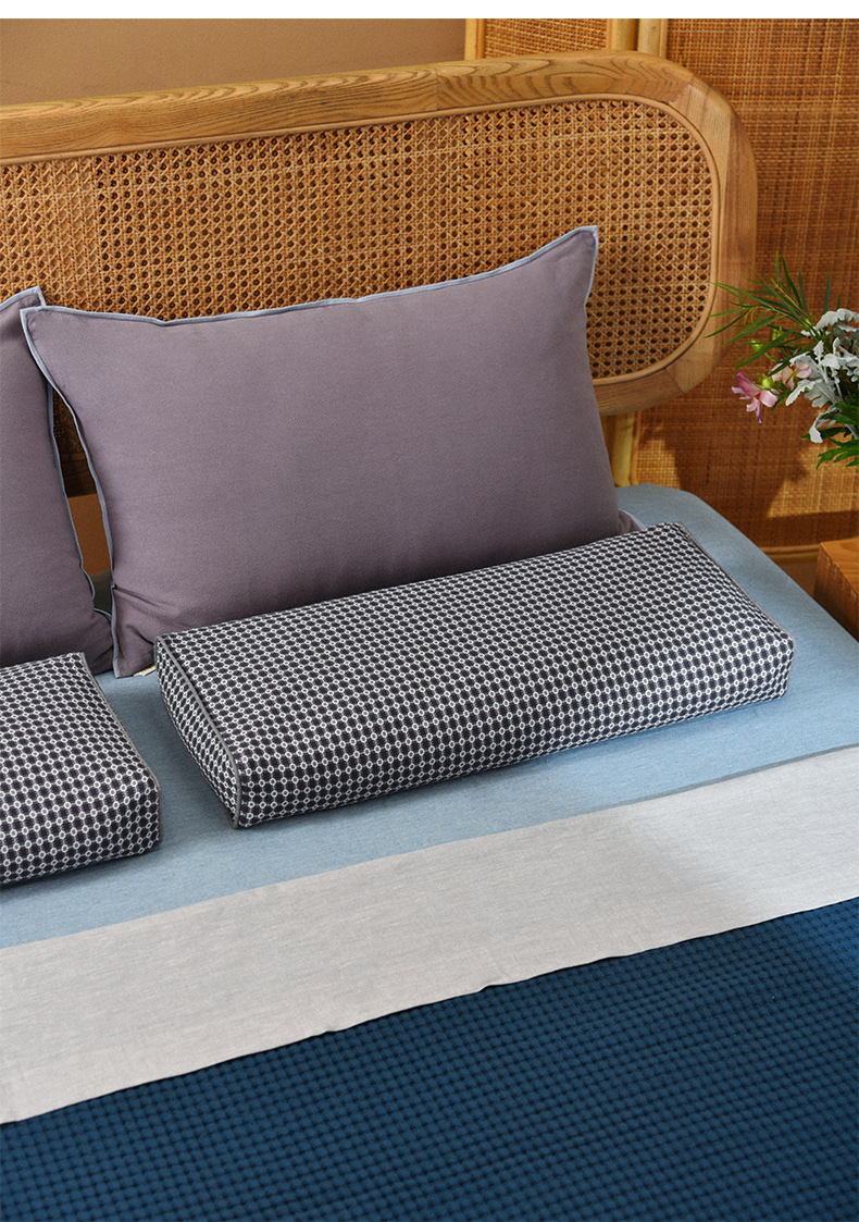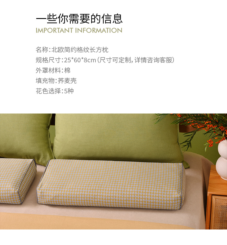 北欧简约格纹长方枕全荞麦壳纯棉护颈枕