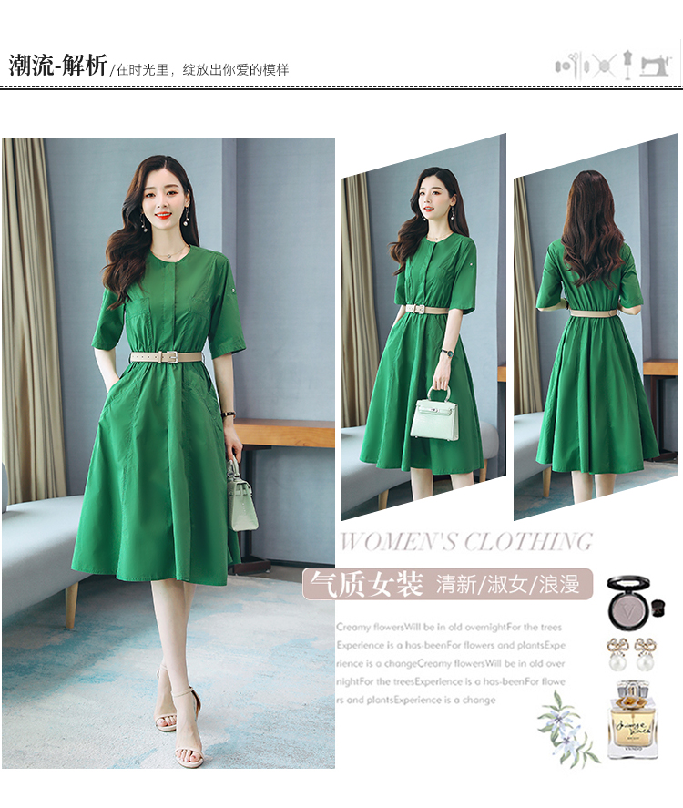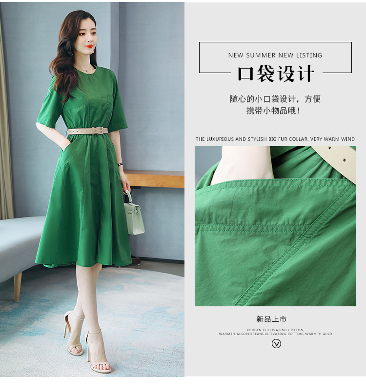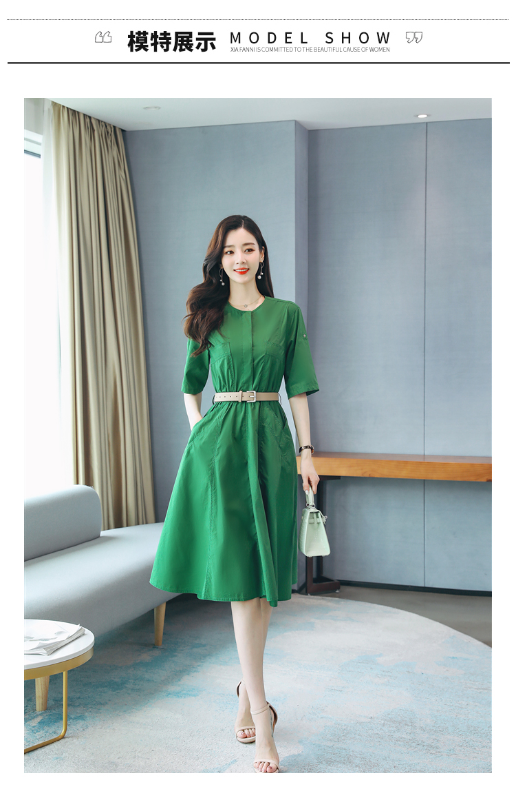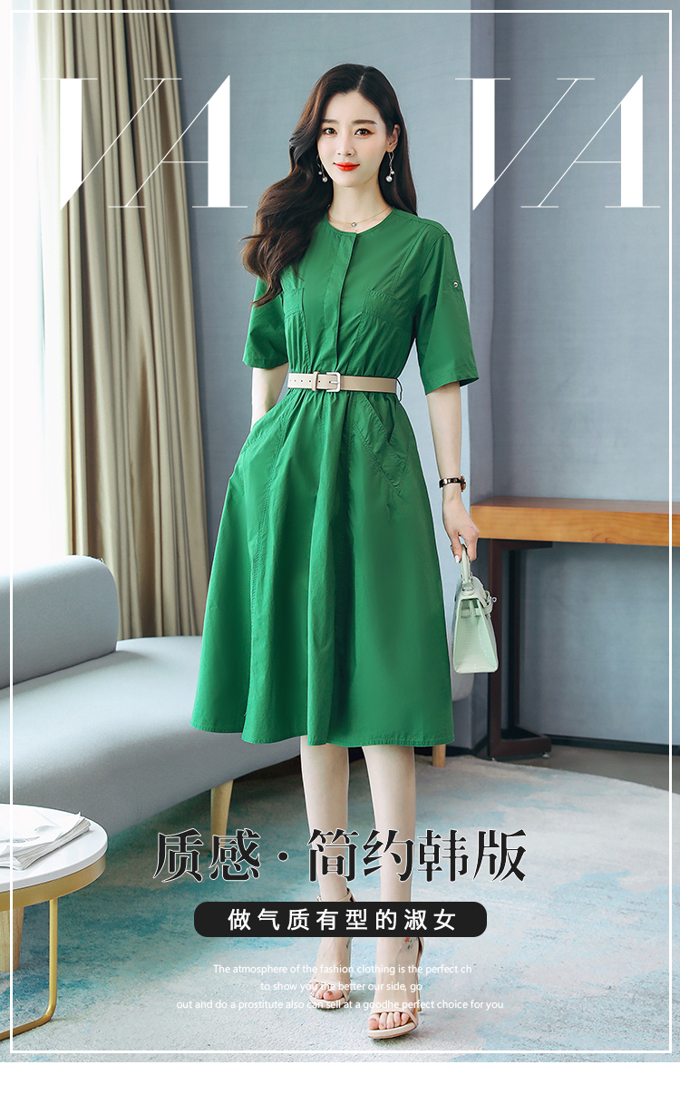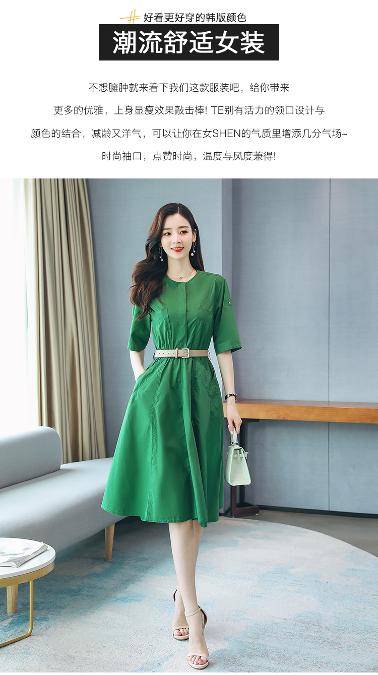 WZNH-BBL9960圆领套头宽松纯色清新森系可爱时尚连衣裙