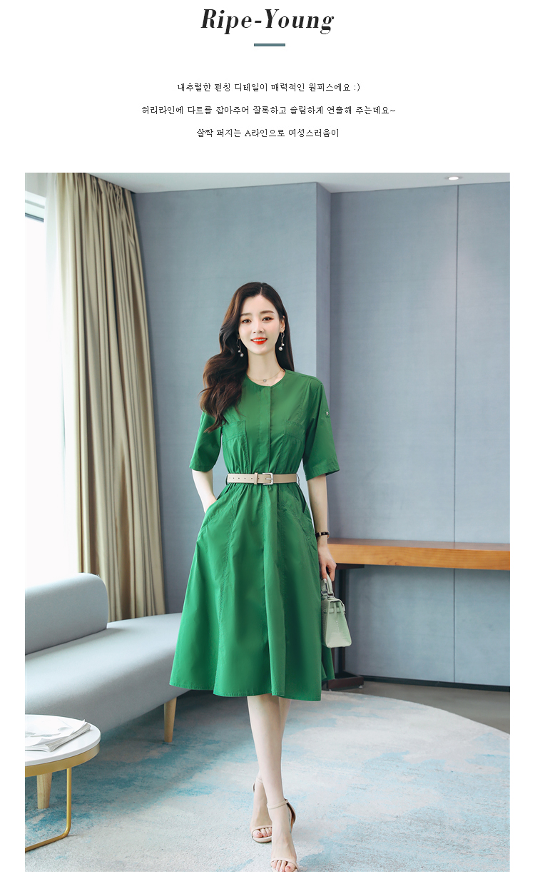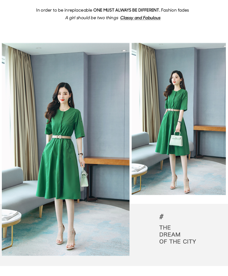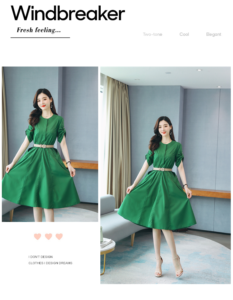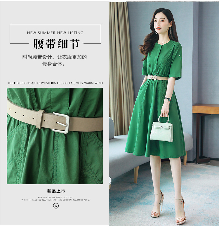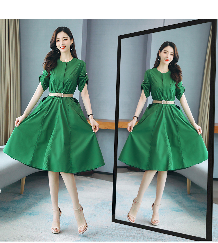 WZNH-BBL9960圆领套头宽松纯色清新森系可爱时尚连衣裙