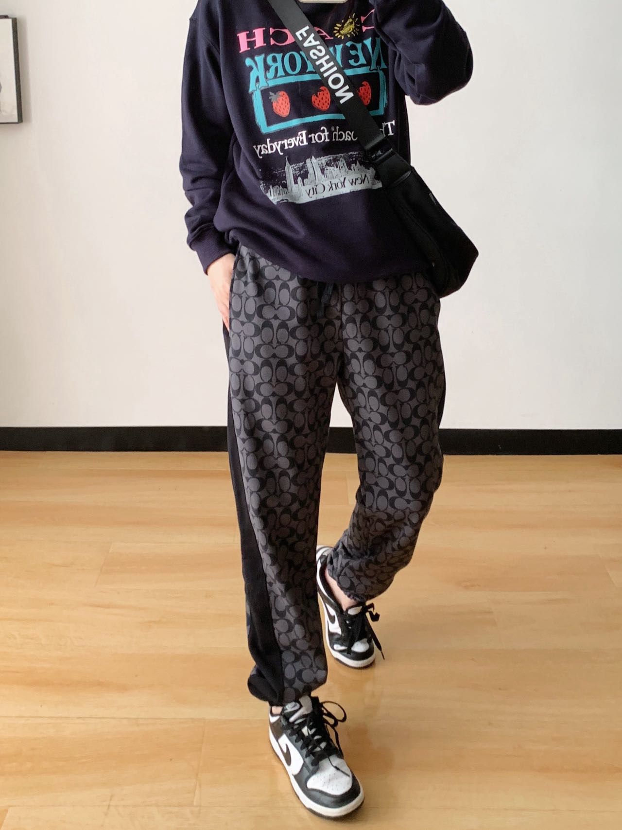 关键是基础老花+裤腿黑色撞色拼接的设计,穿上瞬间显腿直、显腿细