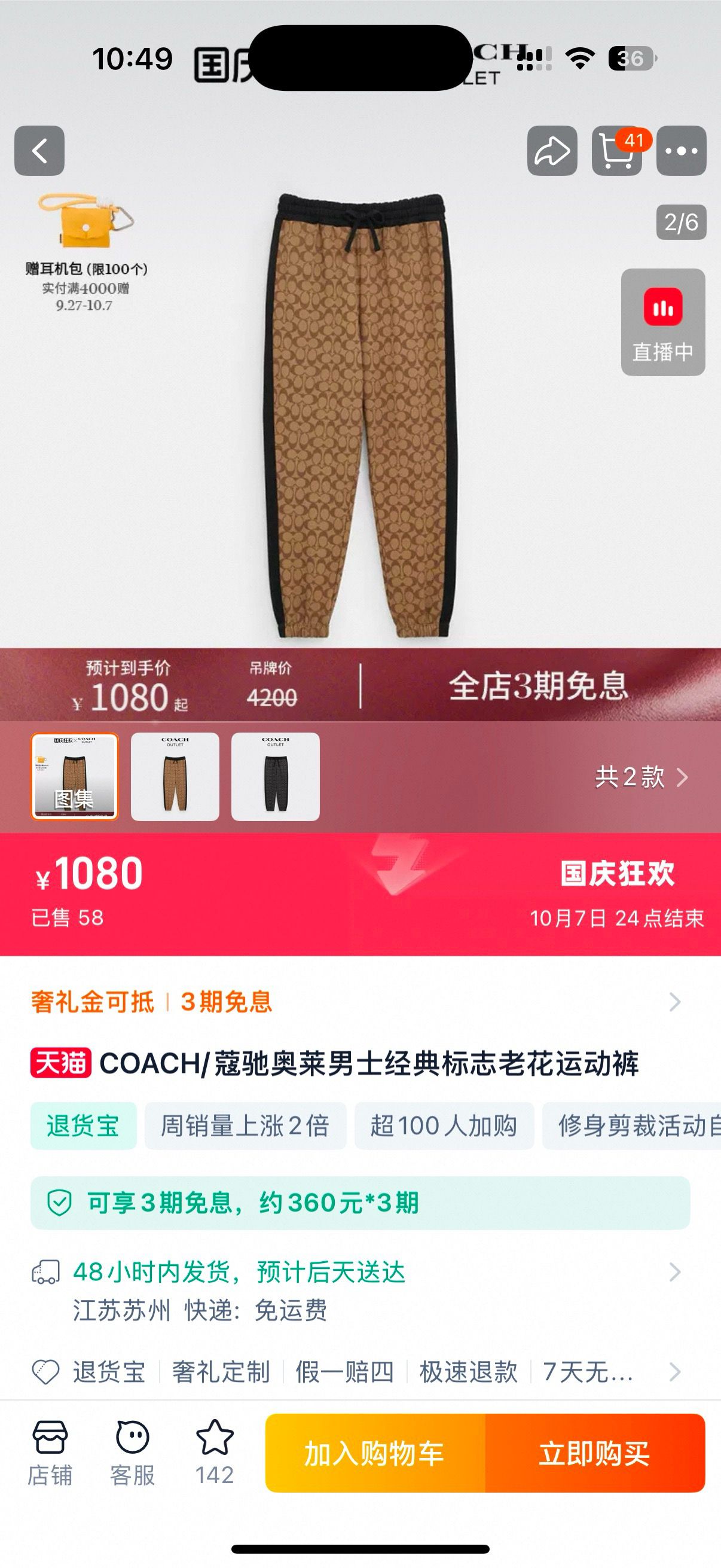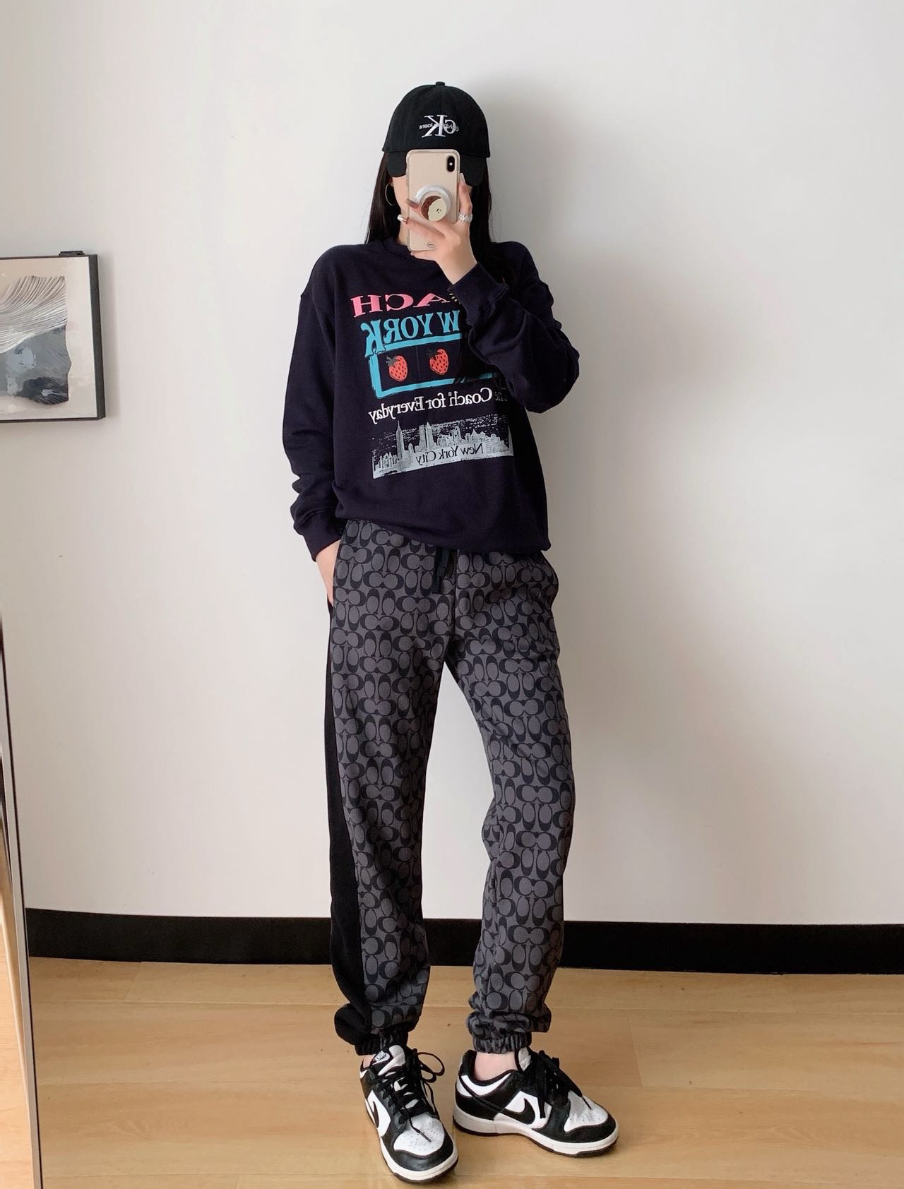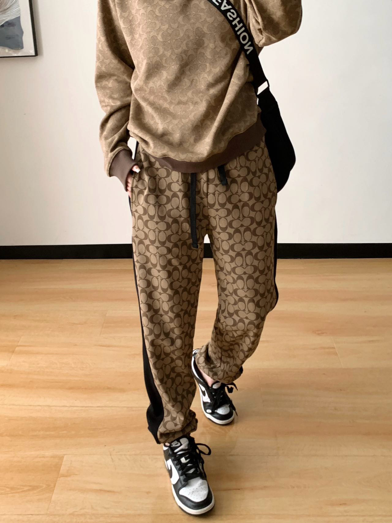 💰139𝐂𝐇男女同款老花棉质束脚长裤