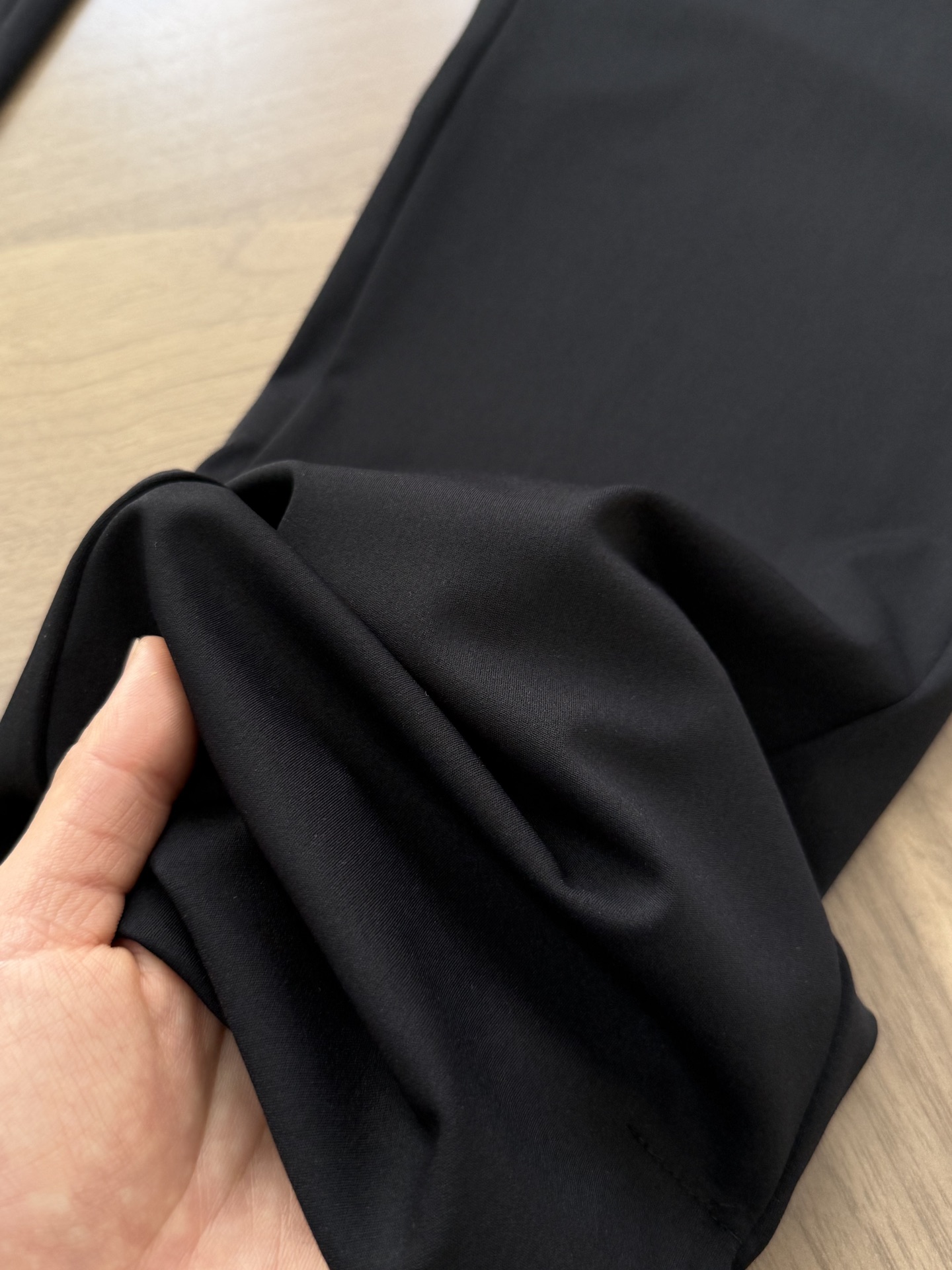 高端定制锦纶速干面 料纹路清晰,超有质感。质地相当细腻舒适,手感超级柔软细腻,拿到手第一感觉就是面料真心的是好面料!克重高从面料到品质无可挑剔!版型又显瘦这条裤子谁穿谁好看!上身无敌显瘦!
